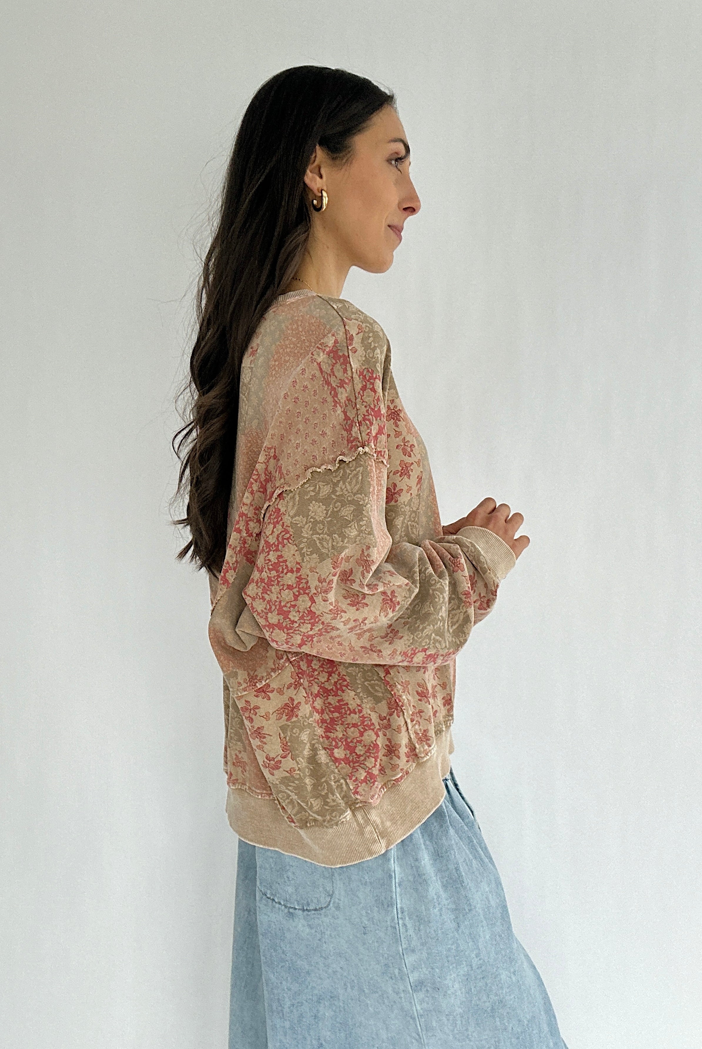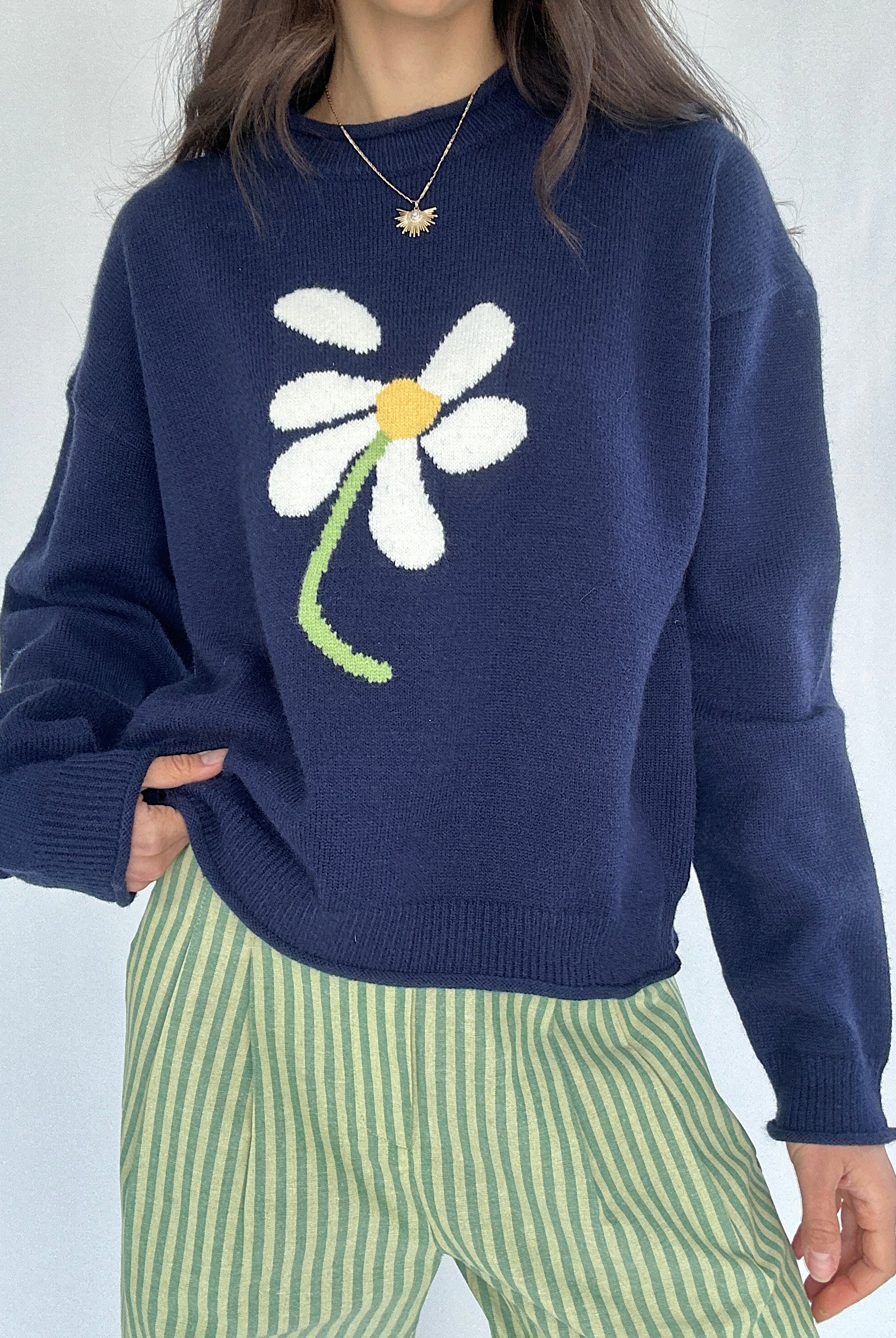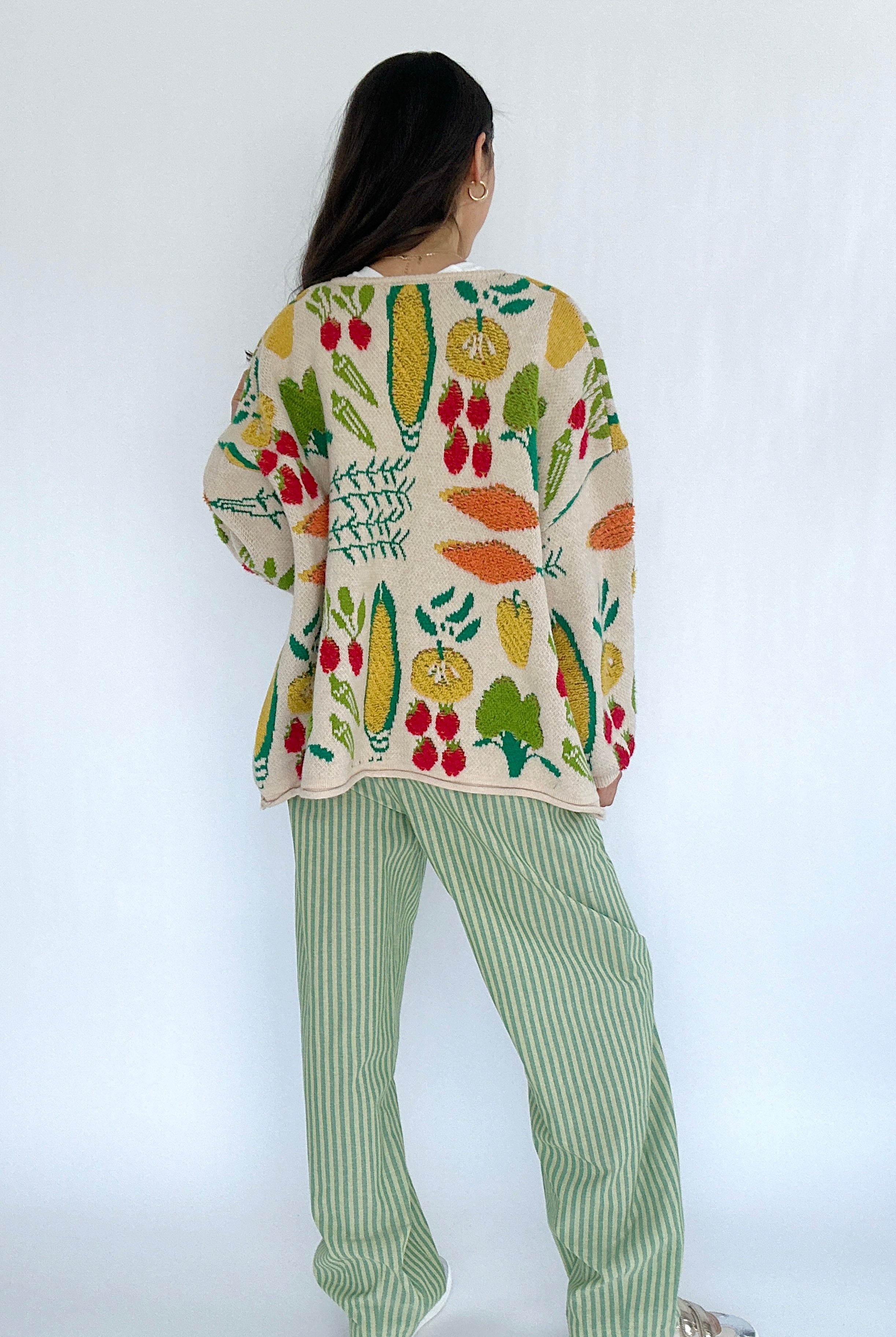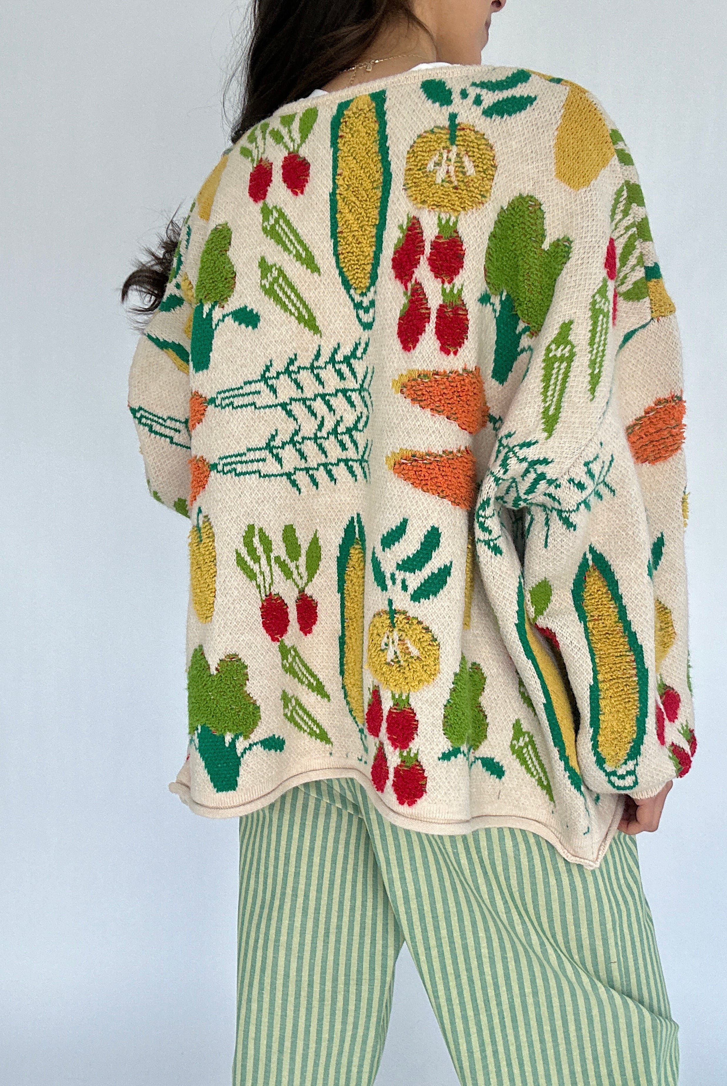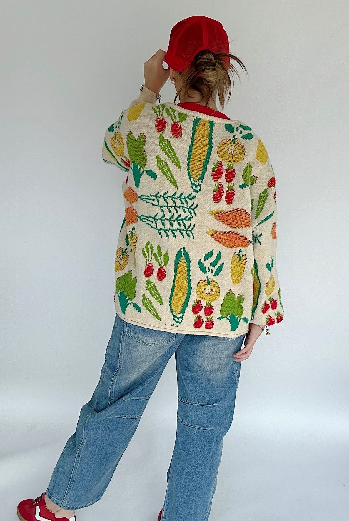 ✶ Soft cream jacquard knit with multicolor fruit + veggie pattern