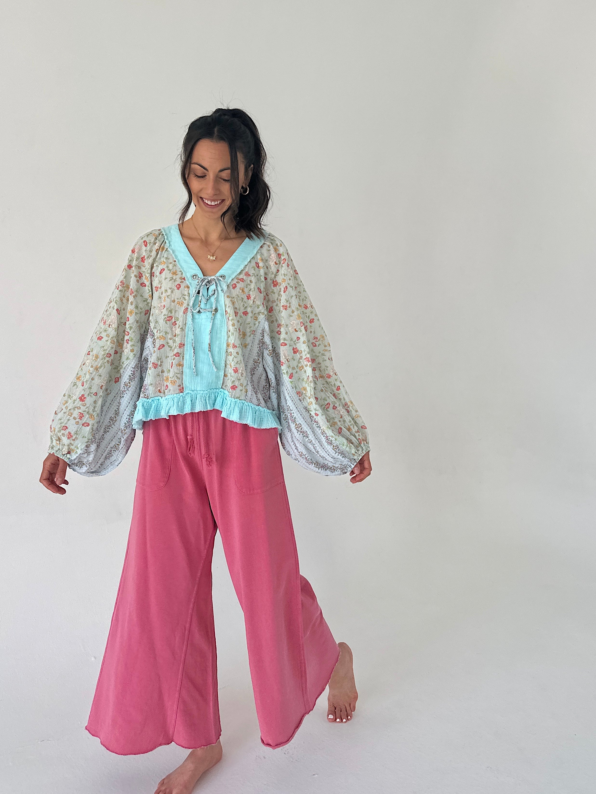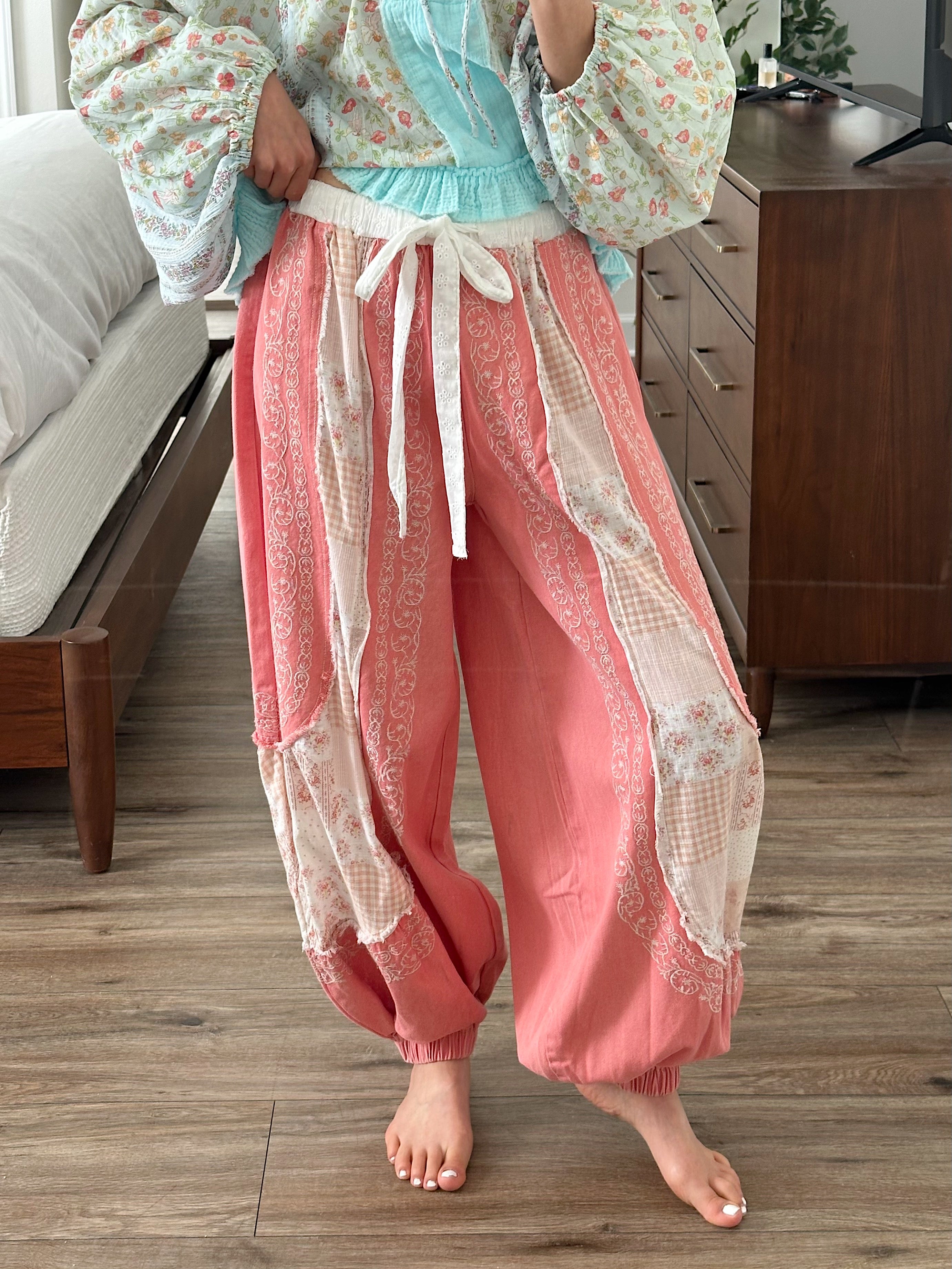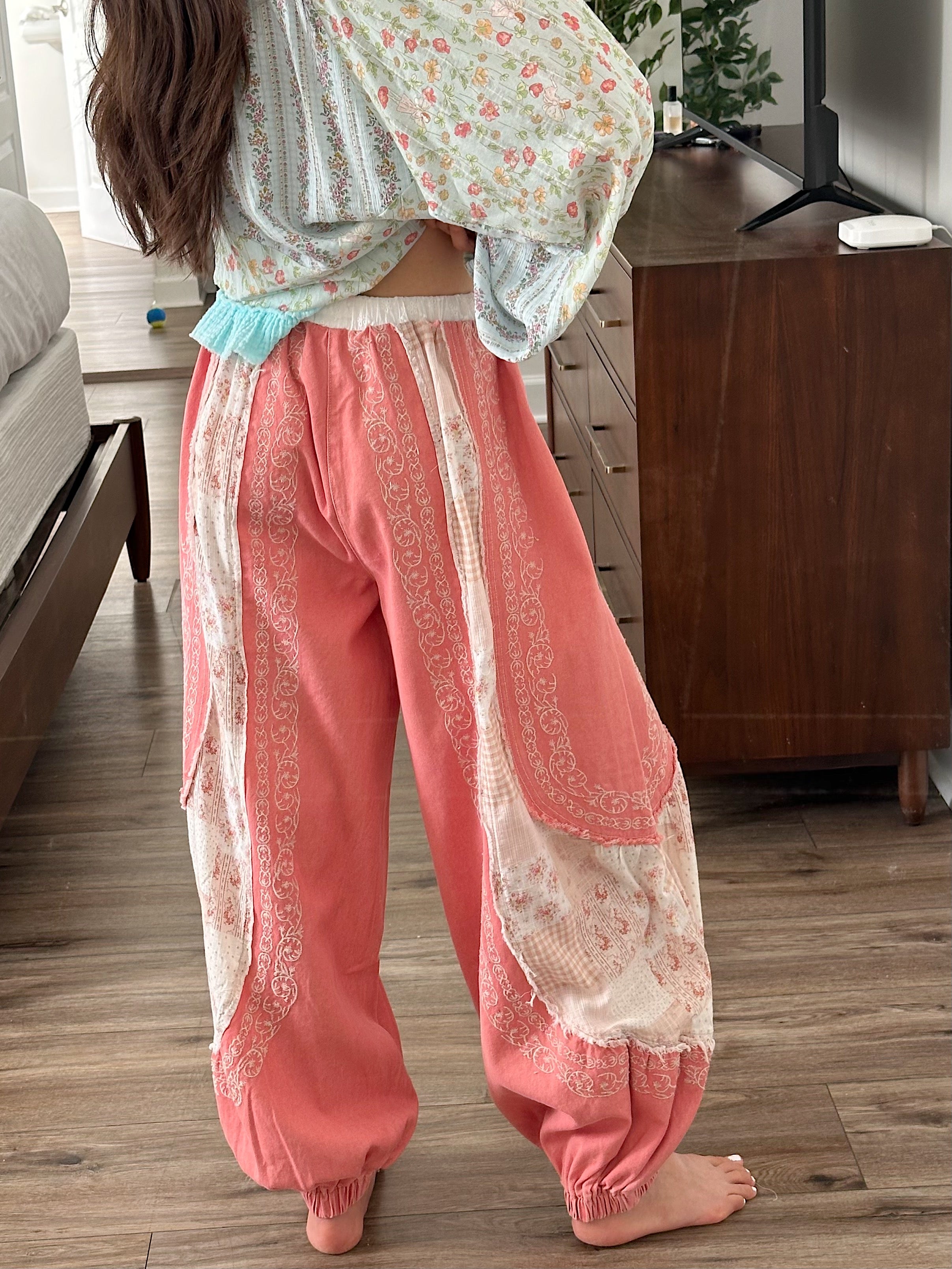 These overalls have that perfectly relaxed, lived-in fit that moves with you. The patchwork detail is what sets them apart—mixed florals and lace panels layered across the bodice and legs give them a handcrafted, one-of-a-kind feel you won't see on everyone else. The wide leg silhouette keeps things breezy, and the adjustable snap straps mean you can dial in the fit exactly how you like it. Pair with a simple white tee and sneakers, or swap in a tank and sandals... whatever the day calls for these overalls are here for it.