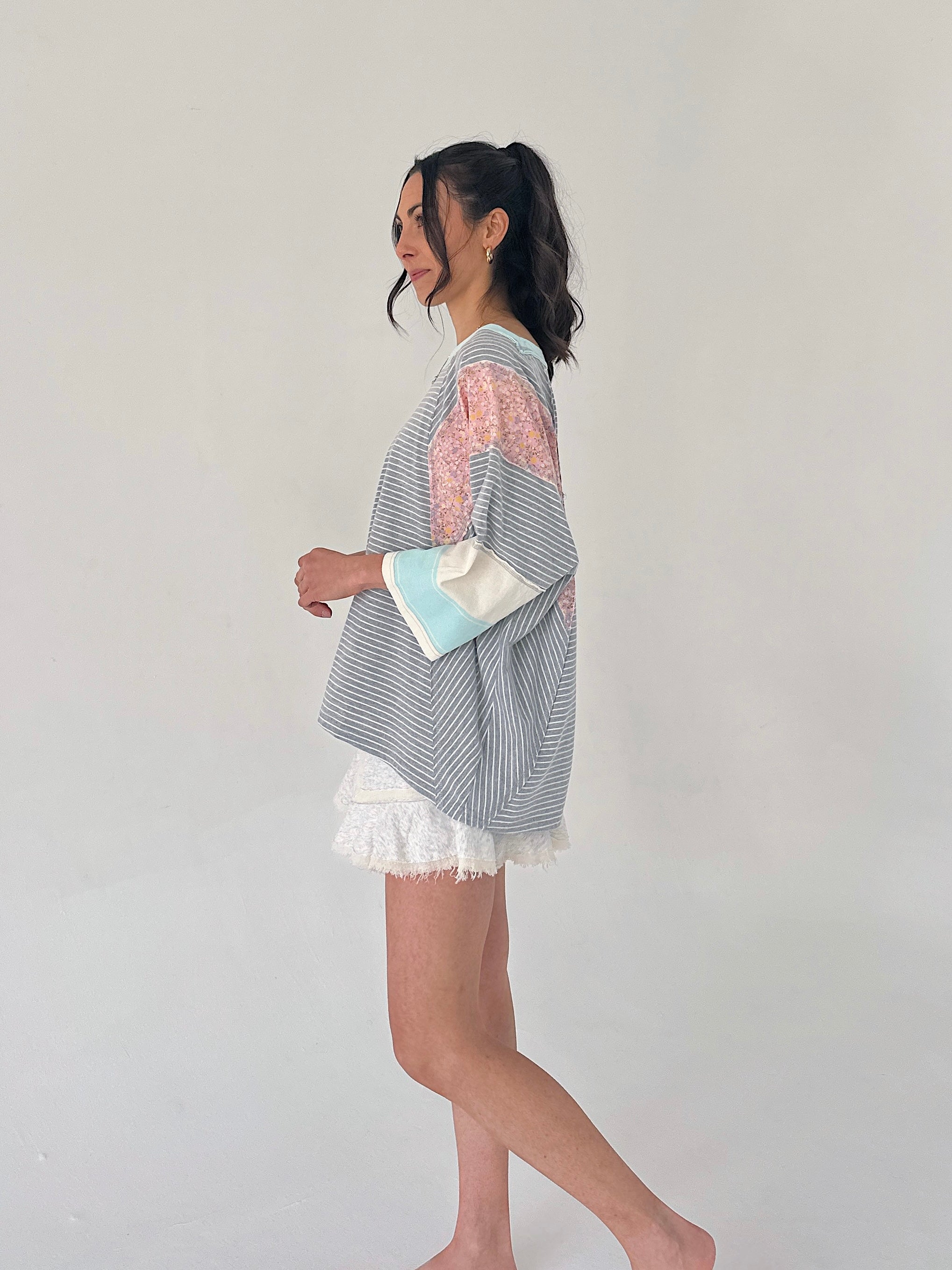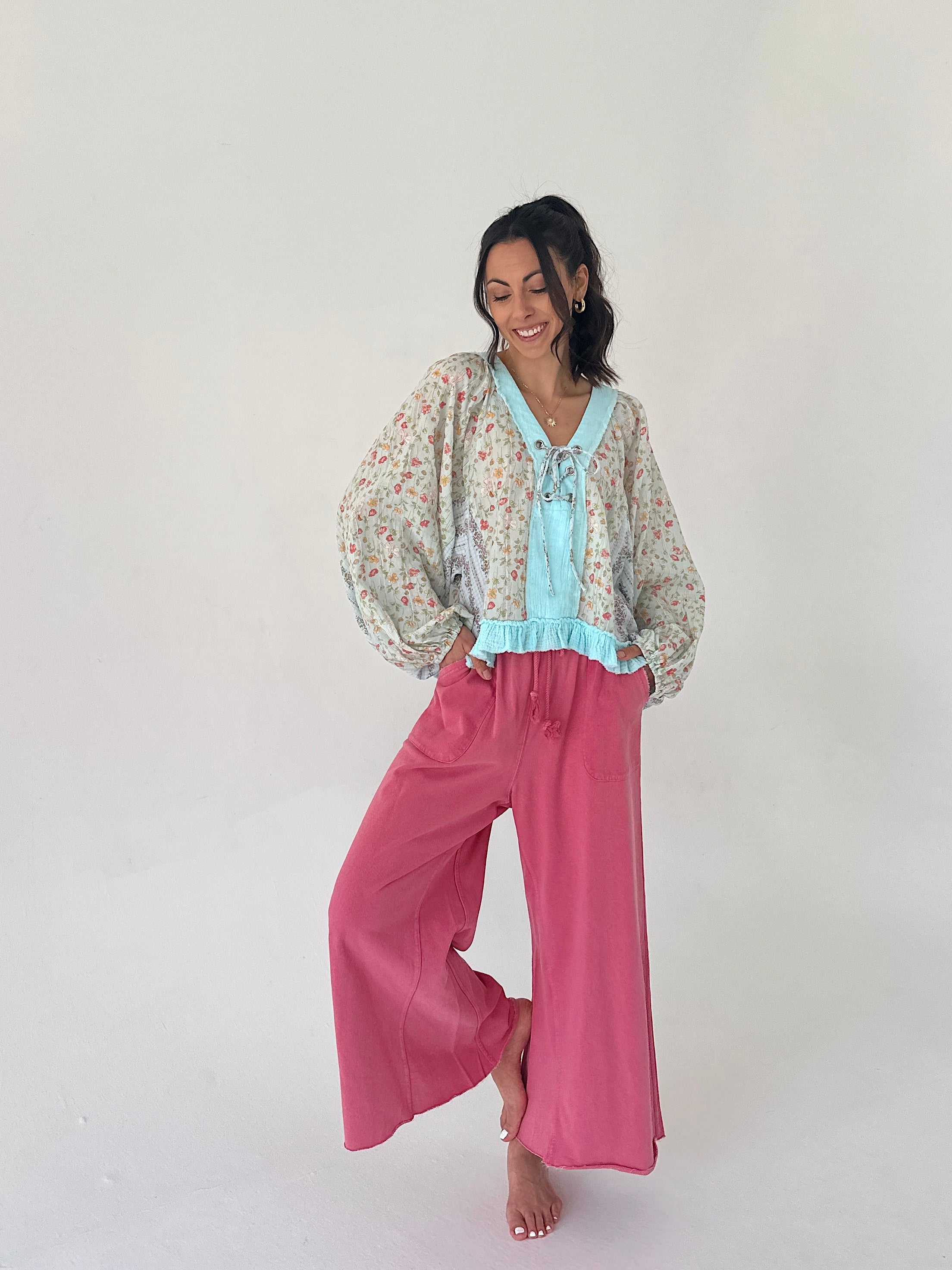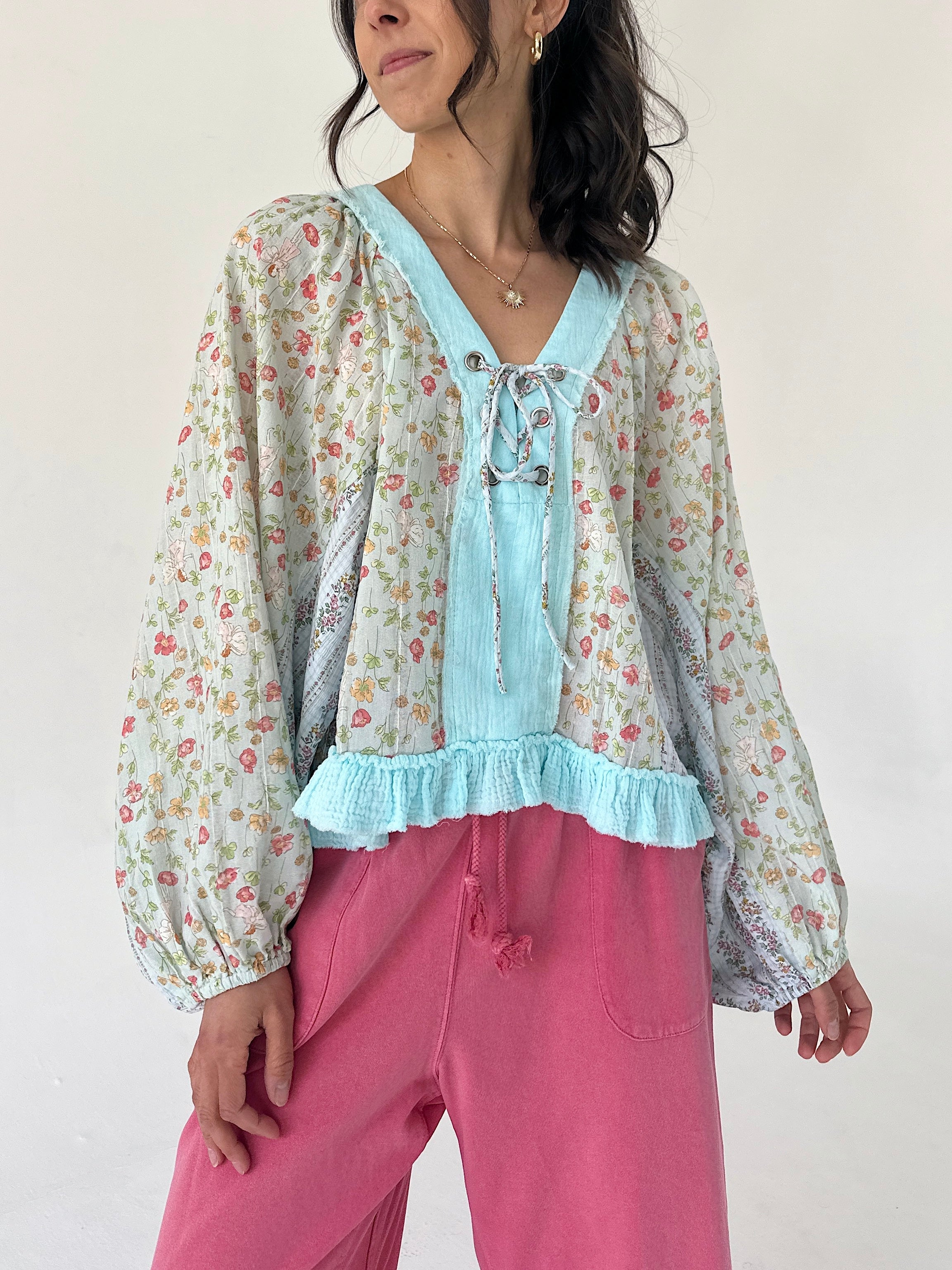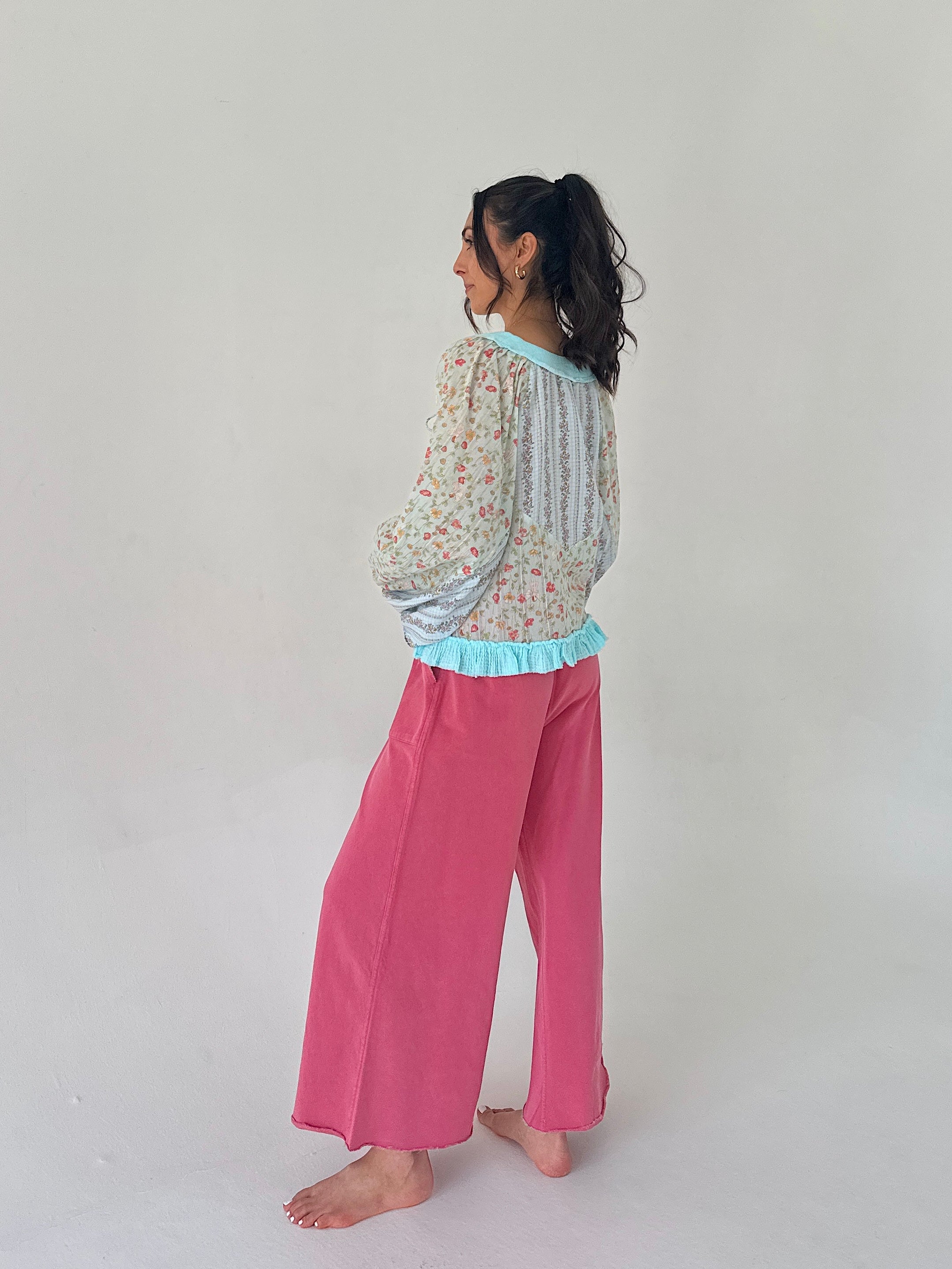 These overalls have that perfectly relaxed, lived-in fit that moves with you. The patchwork detail is what sets them apart—mixed florals and lace panels layered across the bodice and legs give them a handcrafted, one-of-a-kind feel you won't see on everyone else. The wide leg silhouette keeps things breezy, and the adjustable snap straps mean you can dial in the fit exactly how you like it. Pair with a simple white tee and sneakers, or swap in a tank and sandals... whatever the day calls for these overalls are here for it.