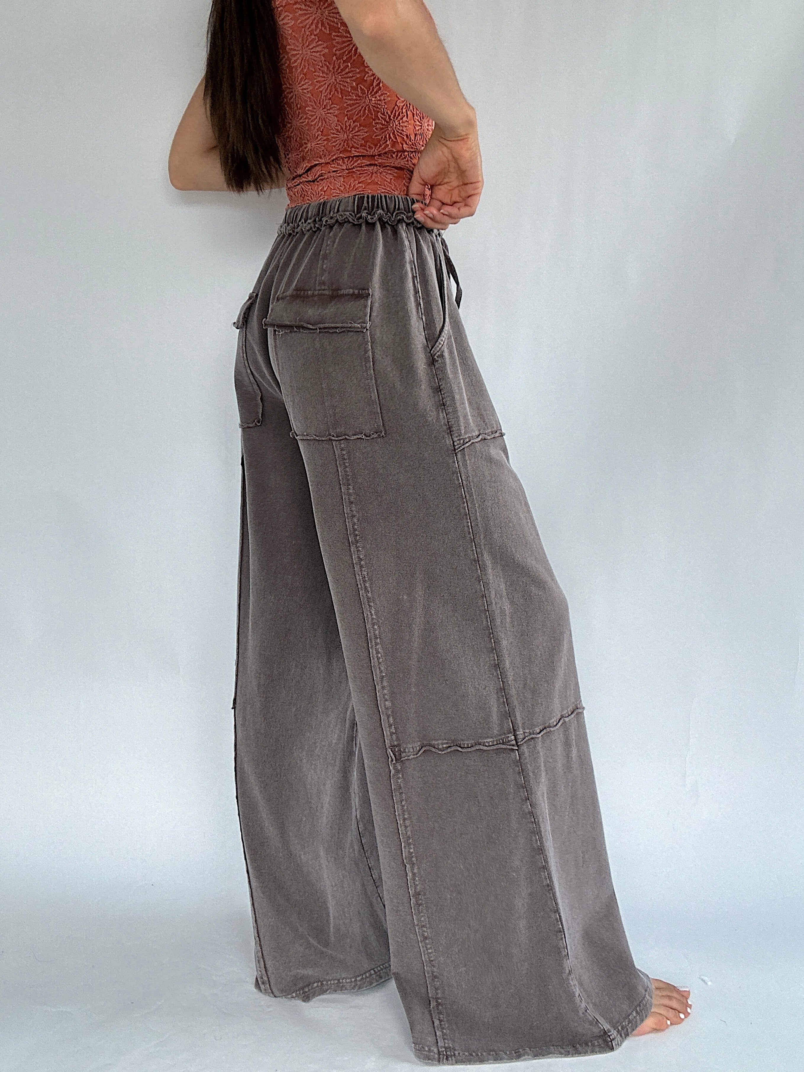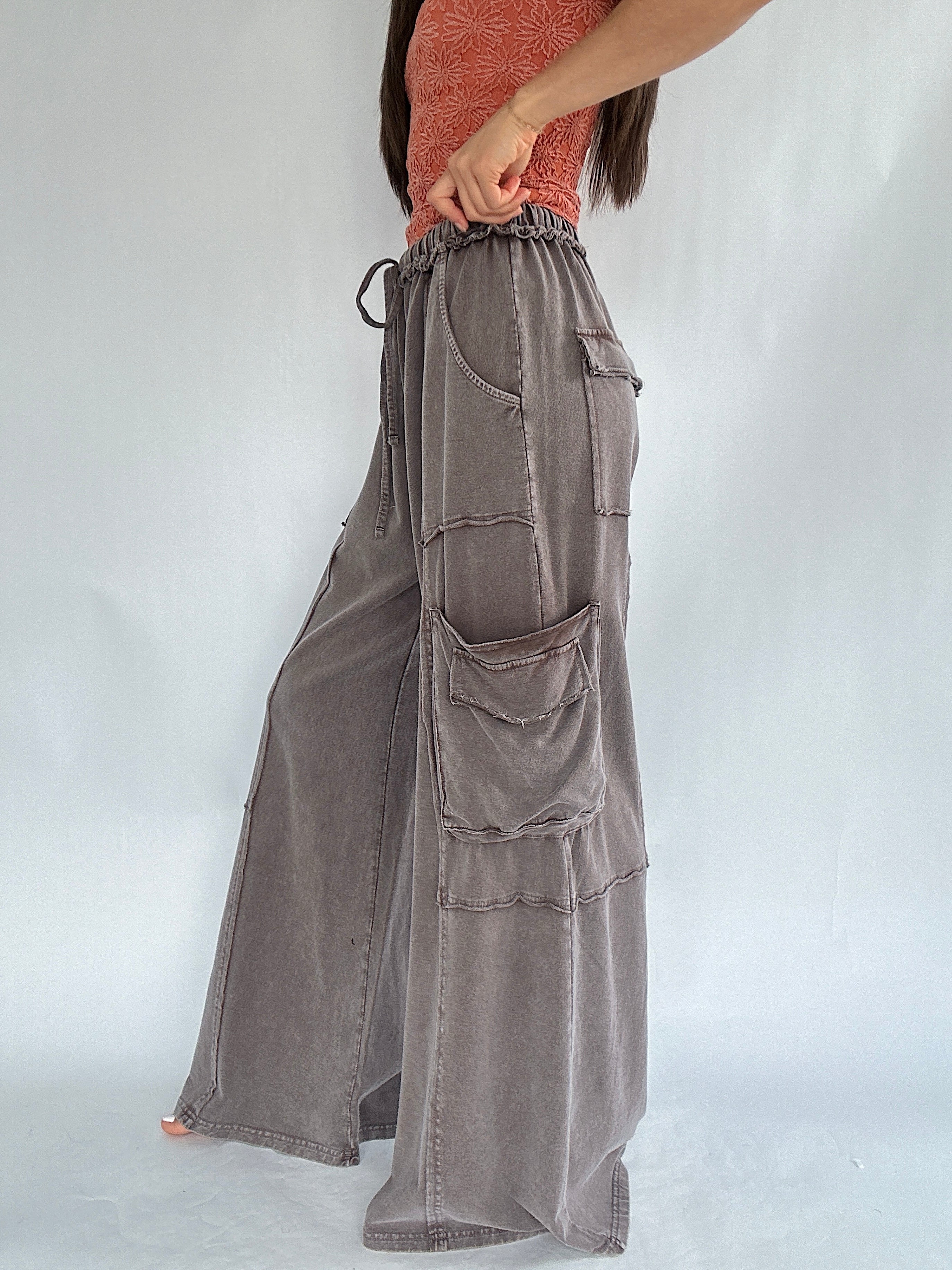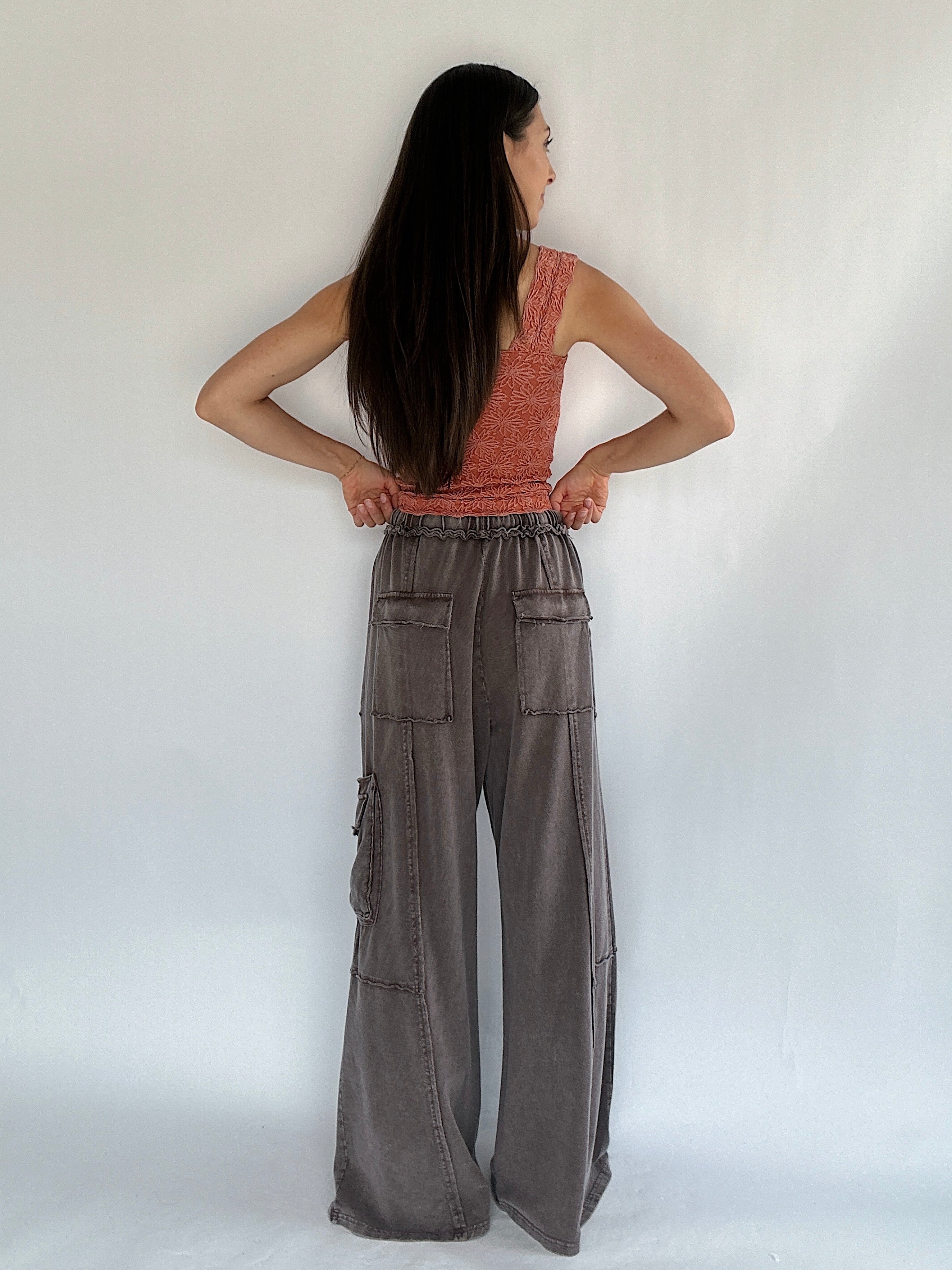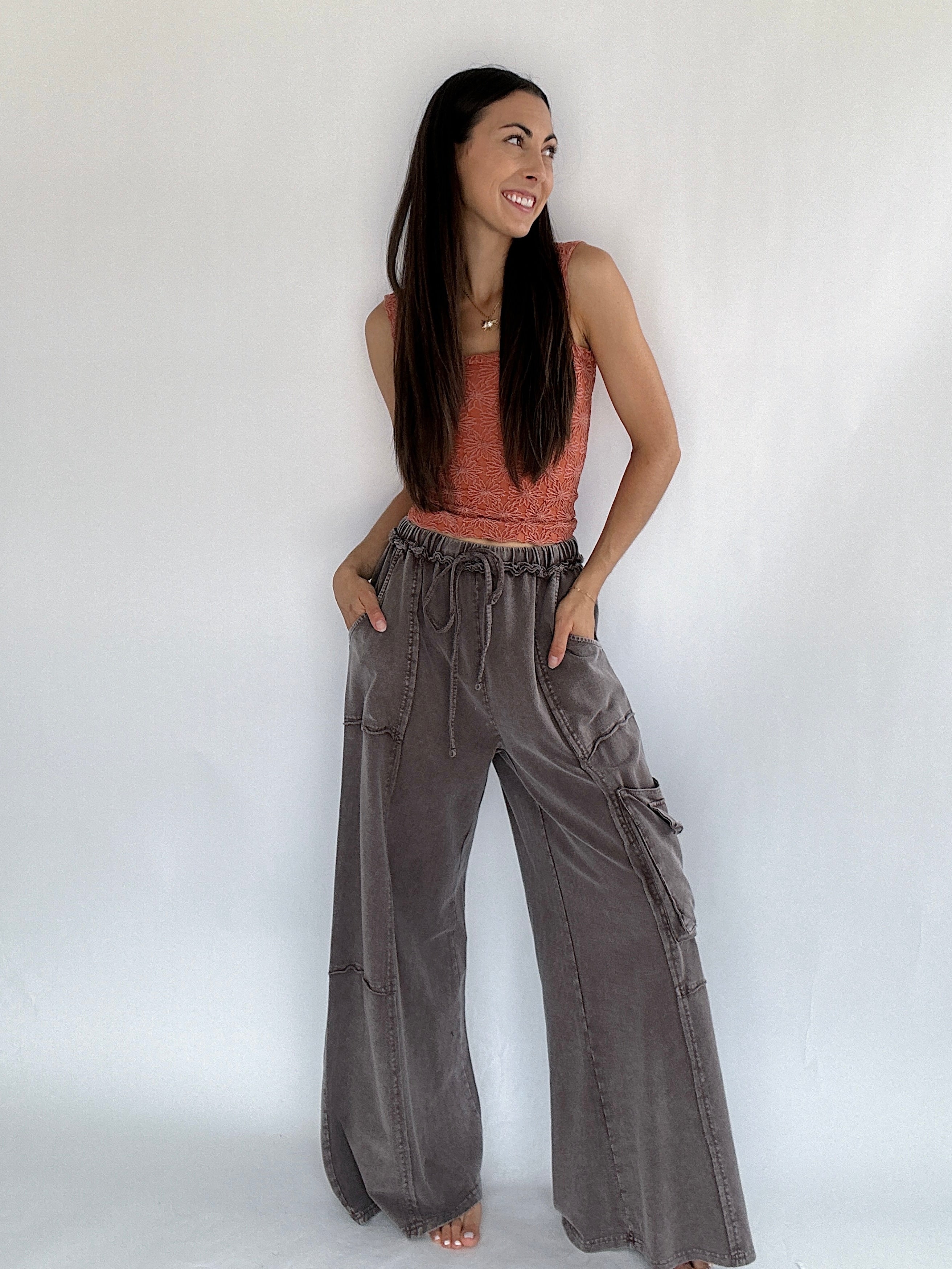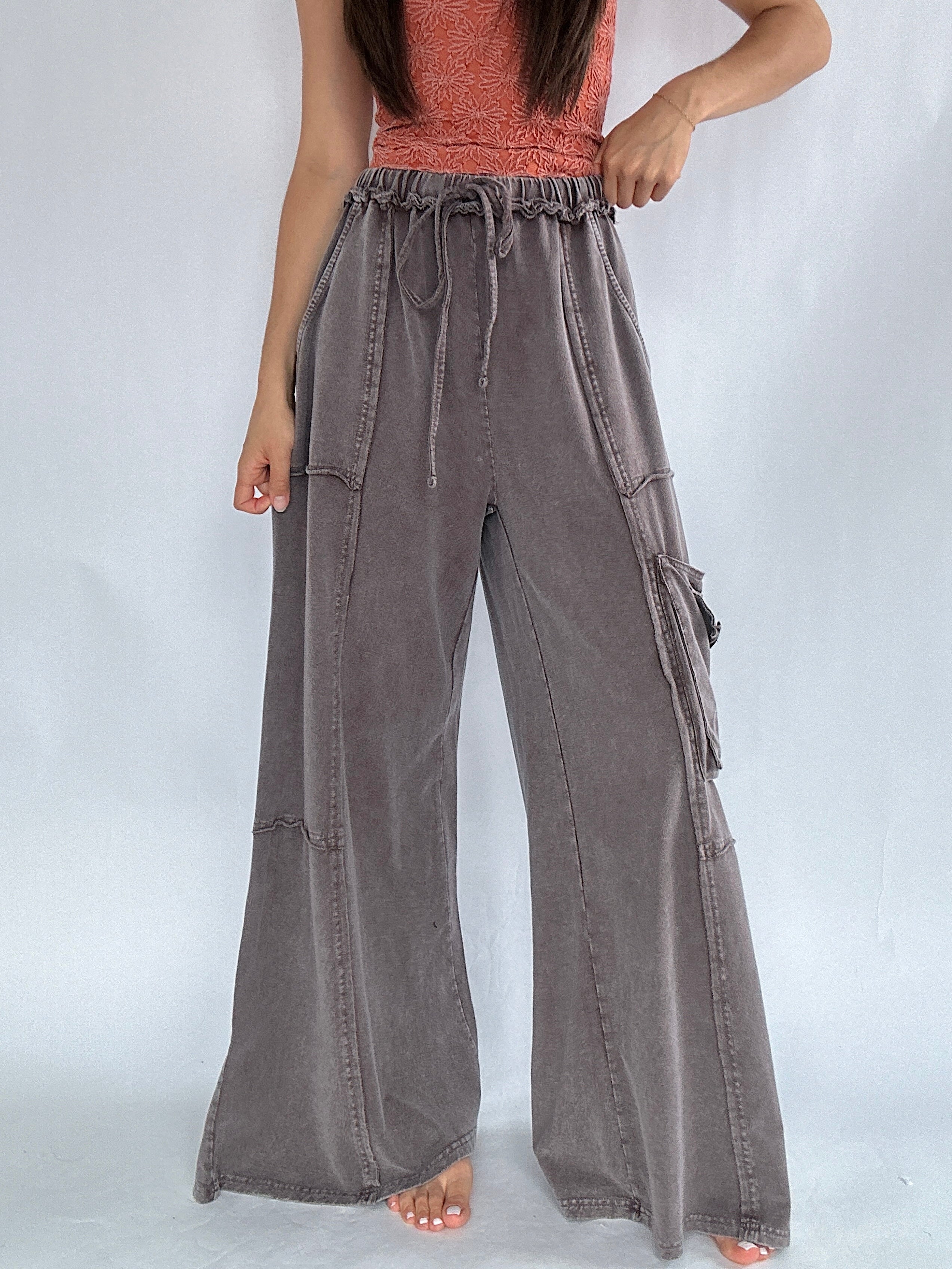 Made for slow mornings, busy weekends, and everything in between—the Miles Ahead Wide Leg Pants are the kind you’ll throw on and end up living in. The mineral wash, relaxed fit and lightweight terry knit make them feel like loungewear, but the raw seams and cargo pockets add just the right amount of style.