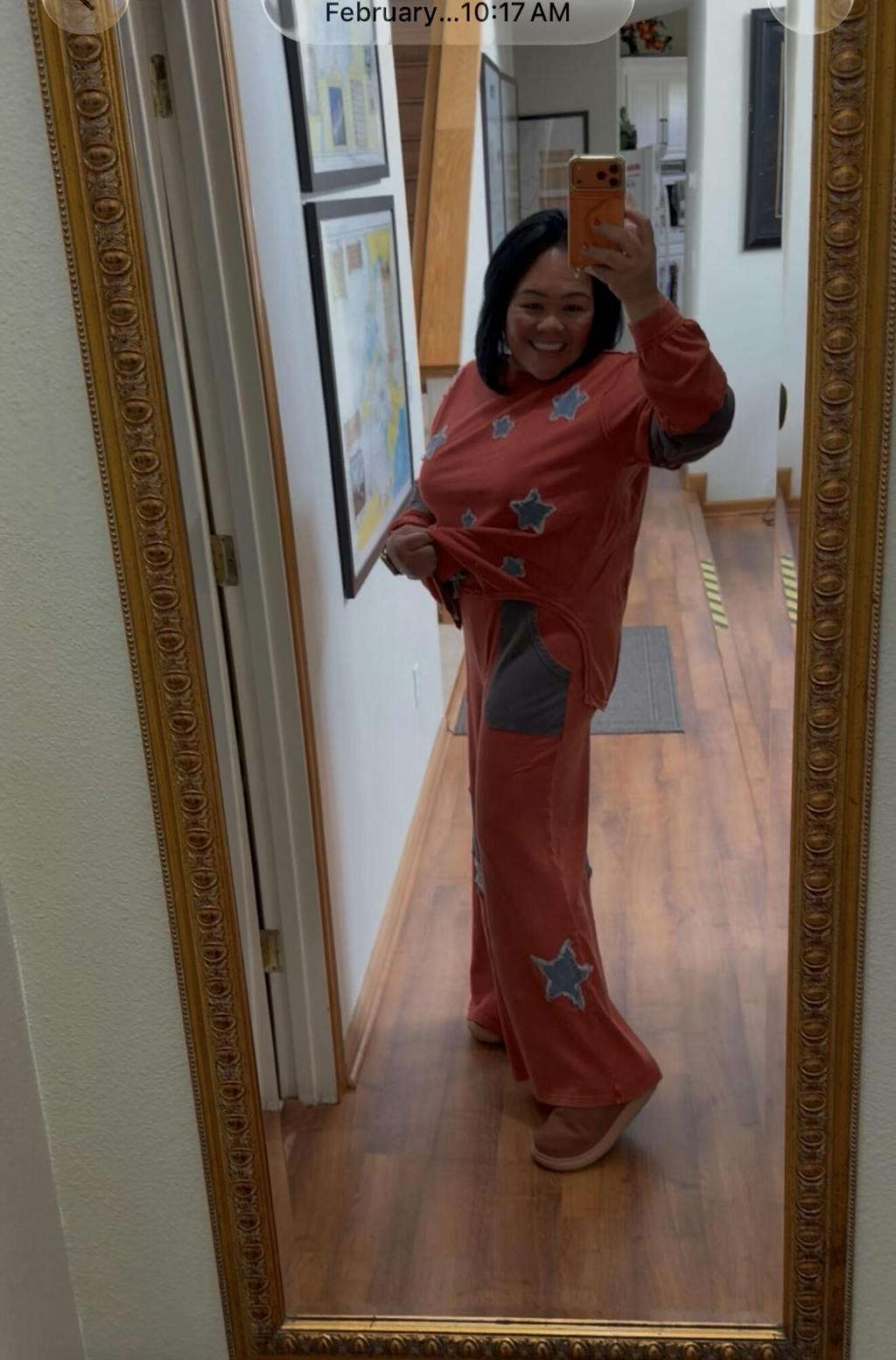 The oversized fit drapes just right, hitting at the hip with a relaxed ease that flatters without clinging. Those distressed denim star patches? They're the detail that makes people ask where you got it. The mineral wash gives it that perfectly worn-in vibe from day one, and the charcoal color-blocked sleeves add just enough edge to keep it interesting. Pair it with the matching bottoms for full set energy, or throw it over leggings with sneakers and a baseball cap—either way, you look effortlessly cool.