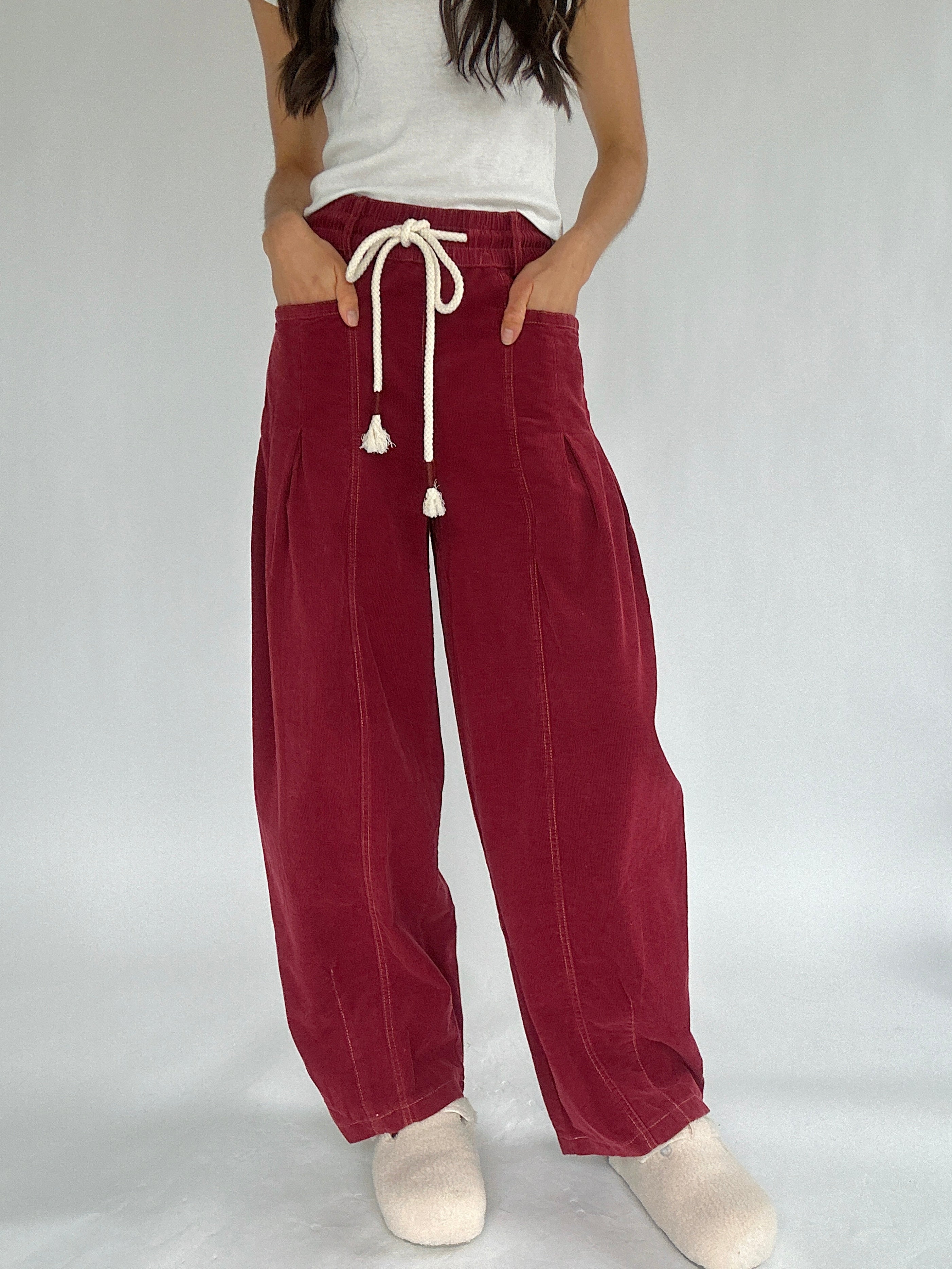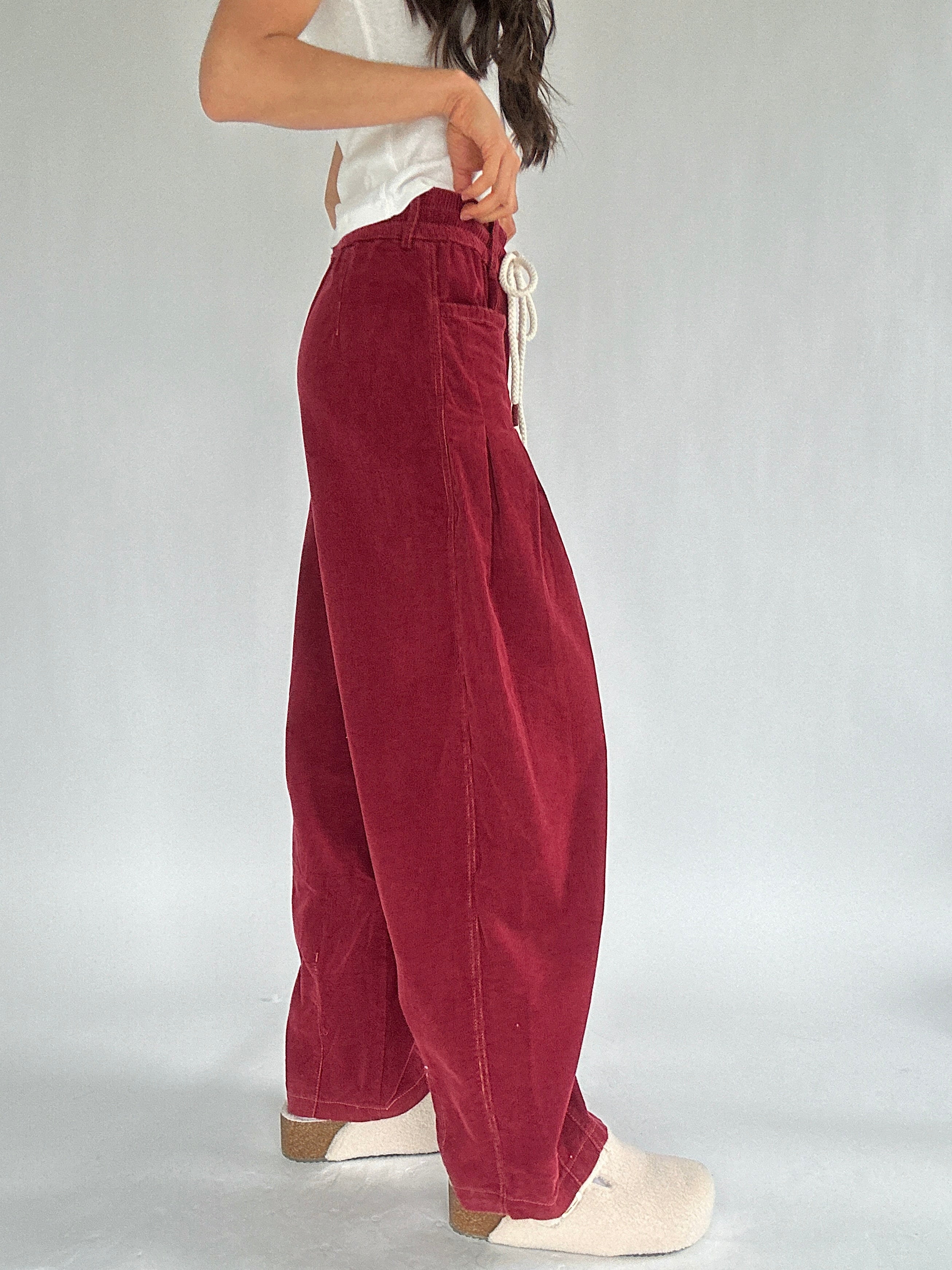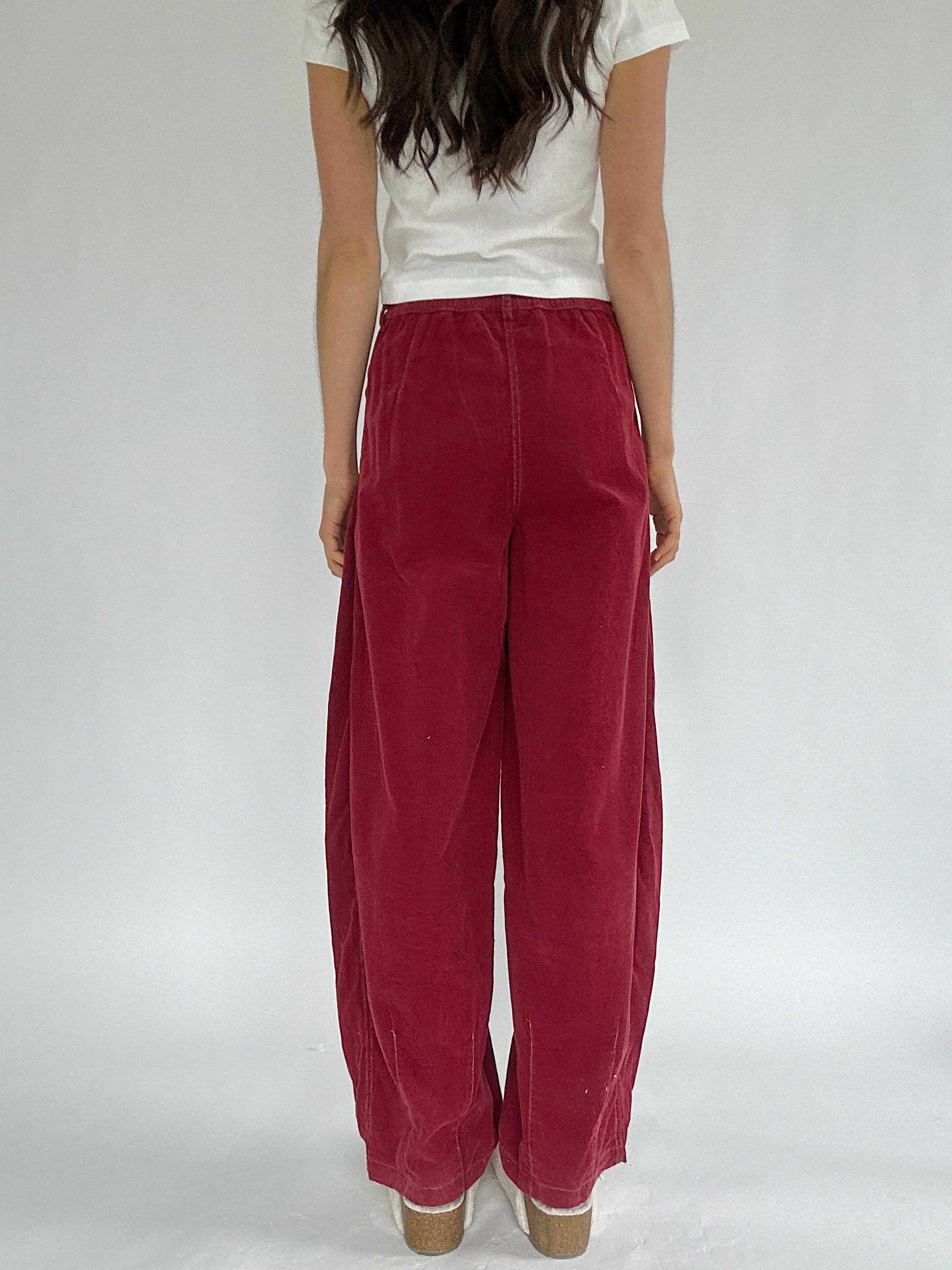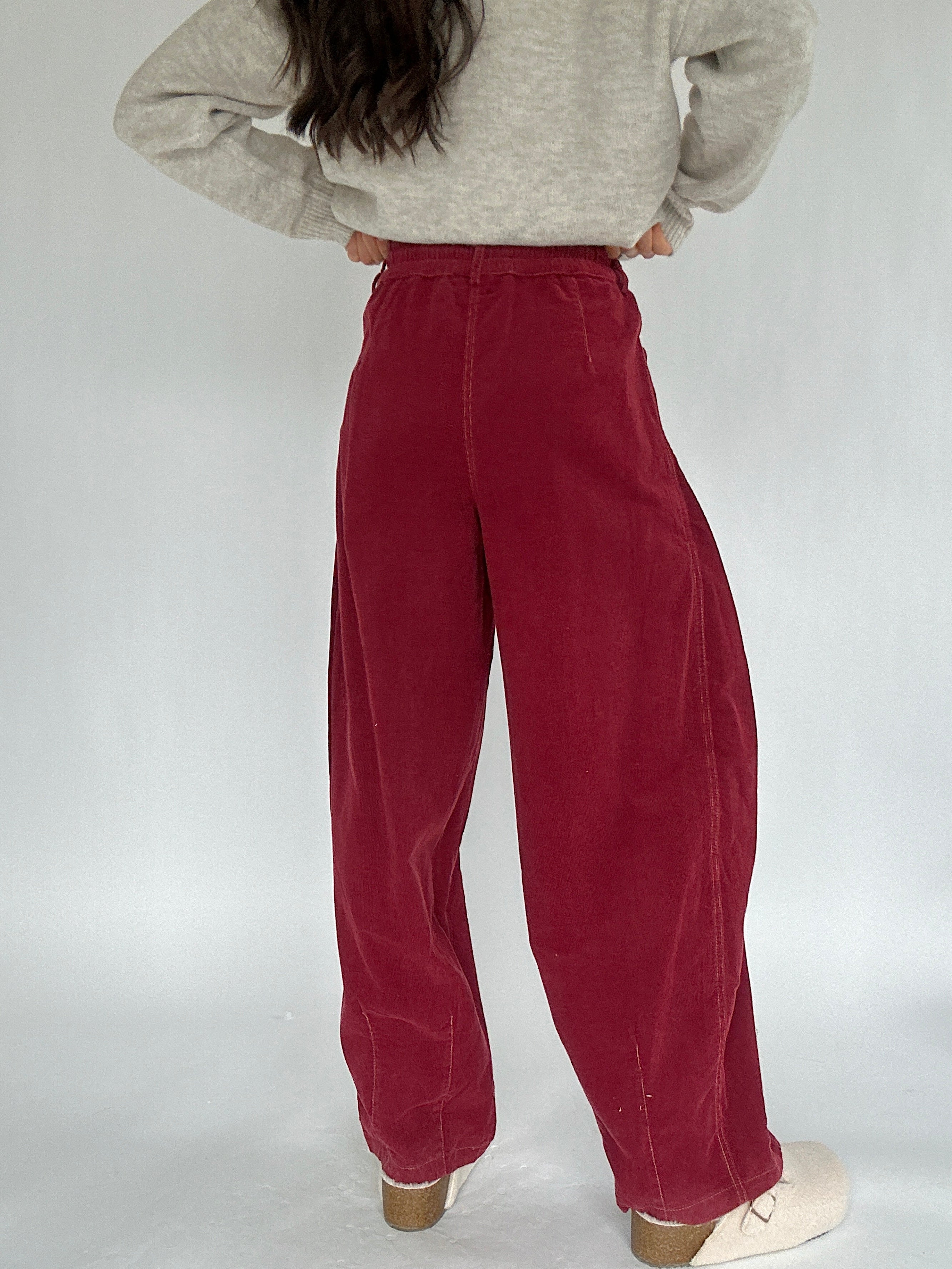 Carver Corduroy Velvet Barrel Pants - Burgundy