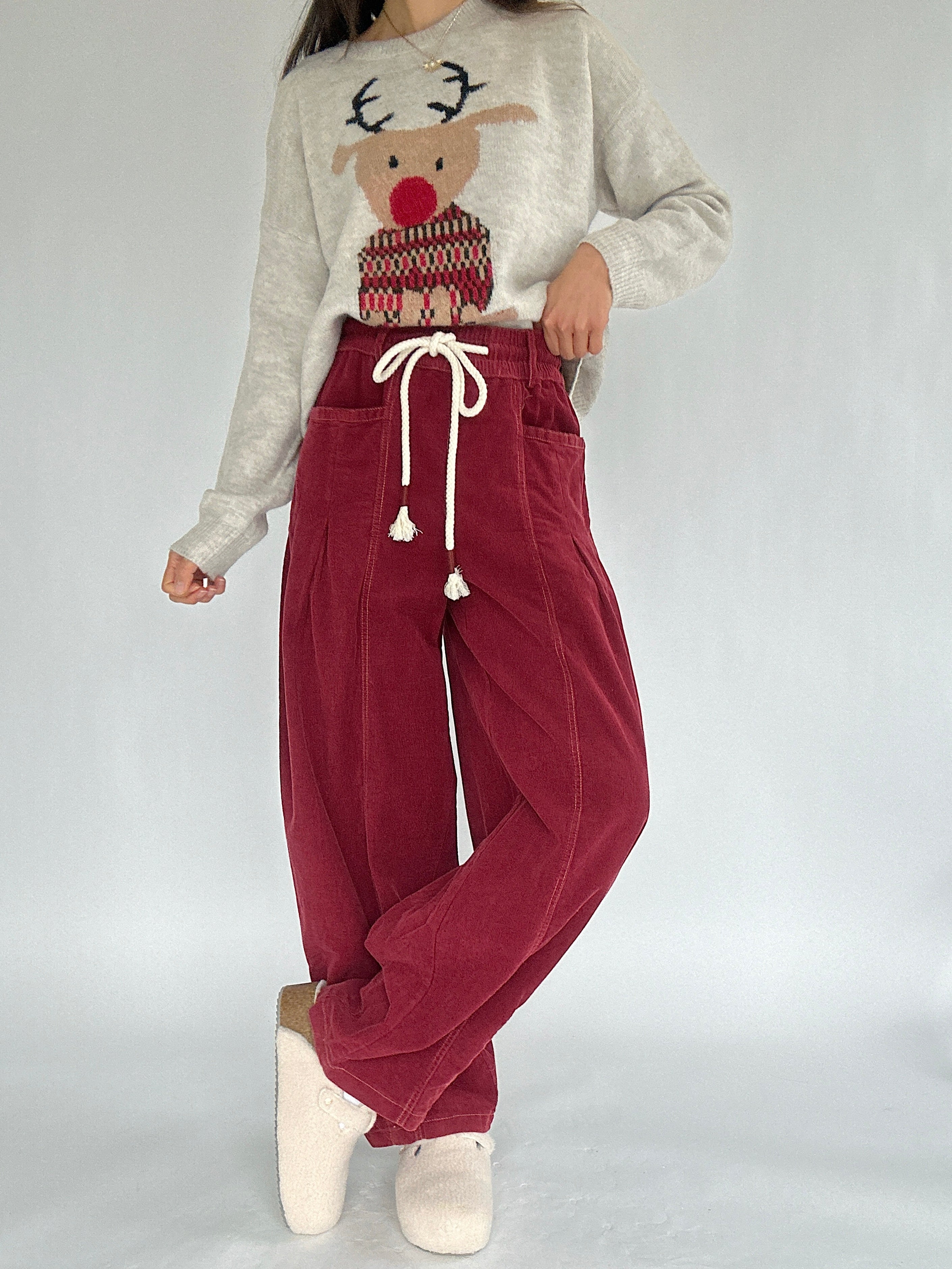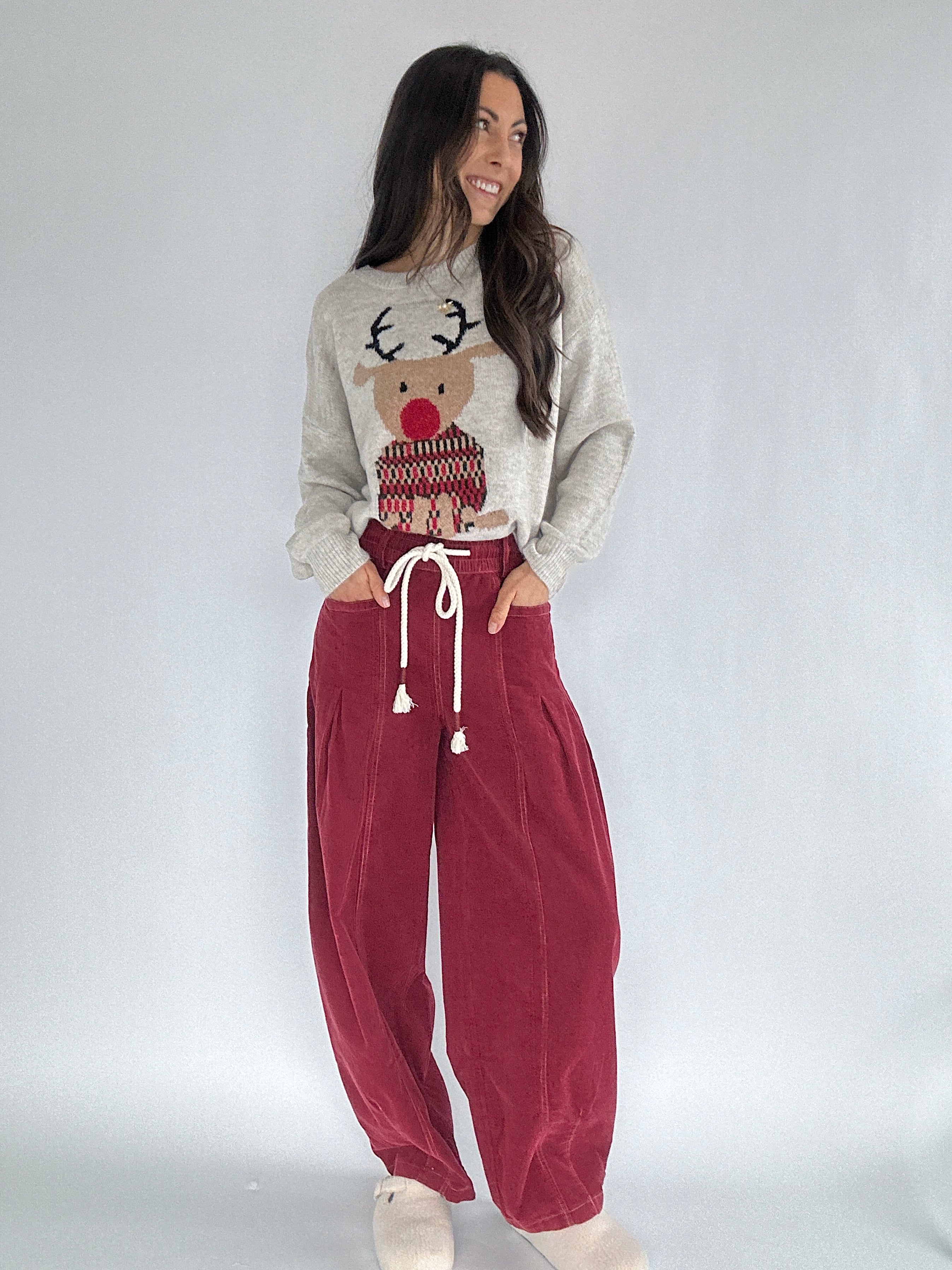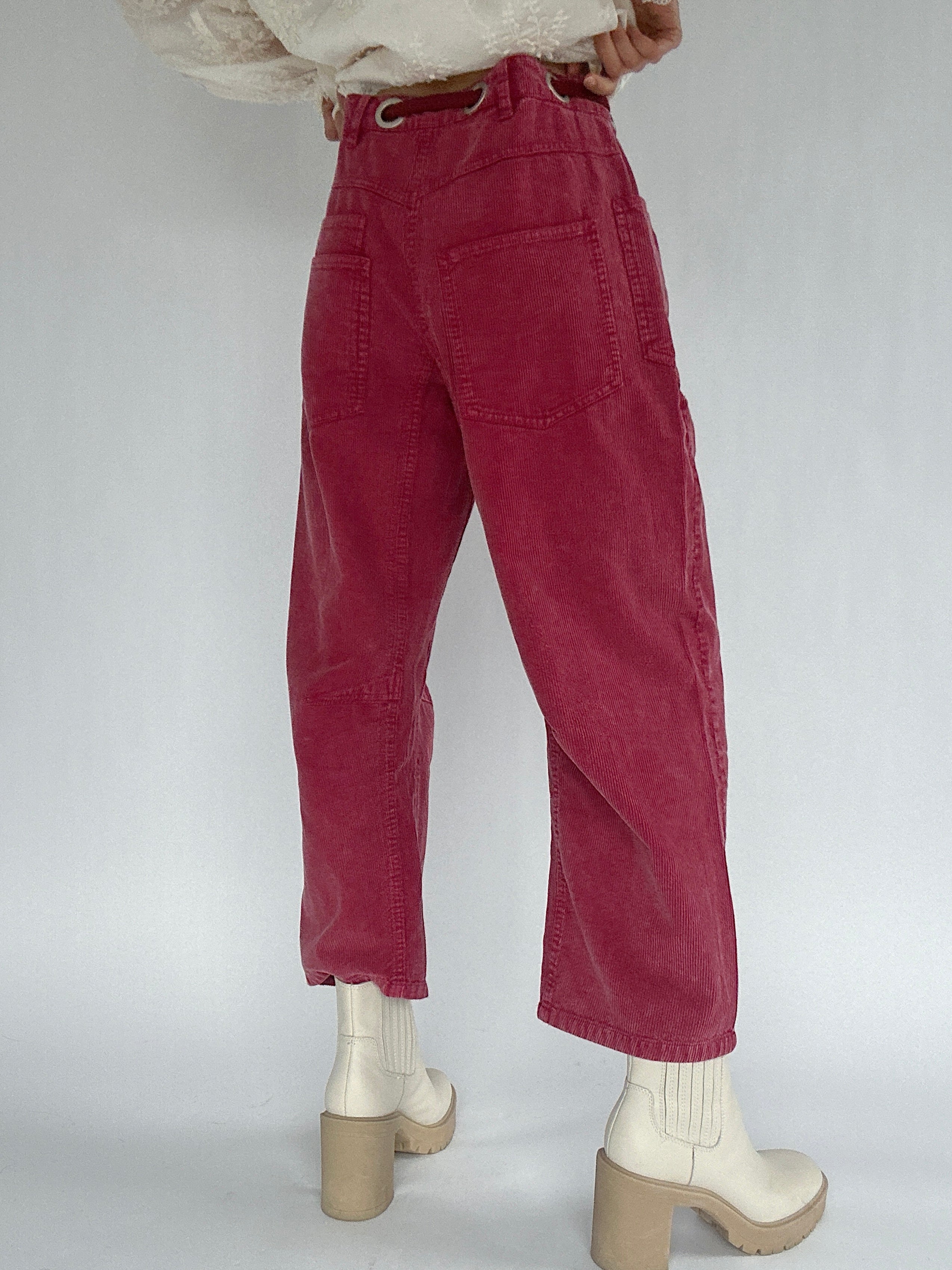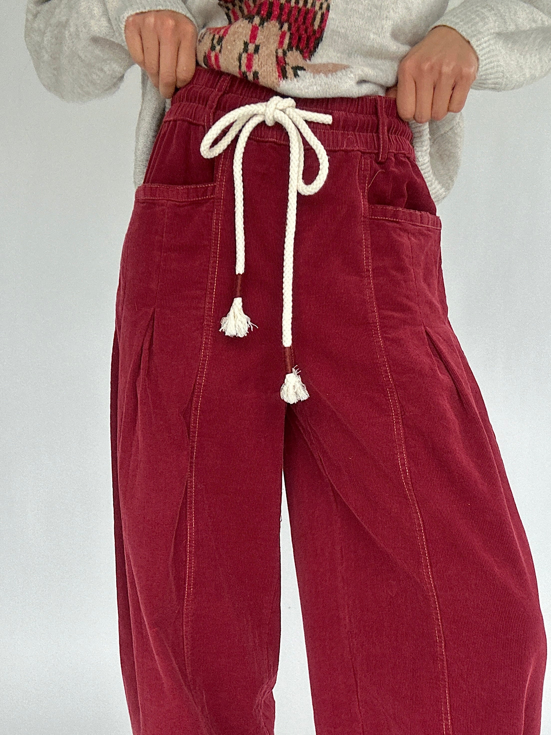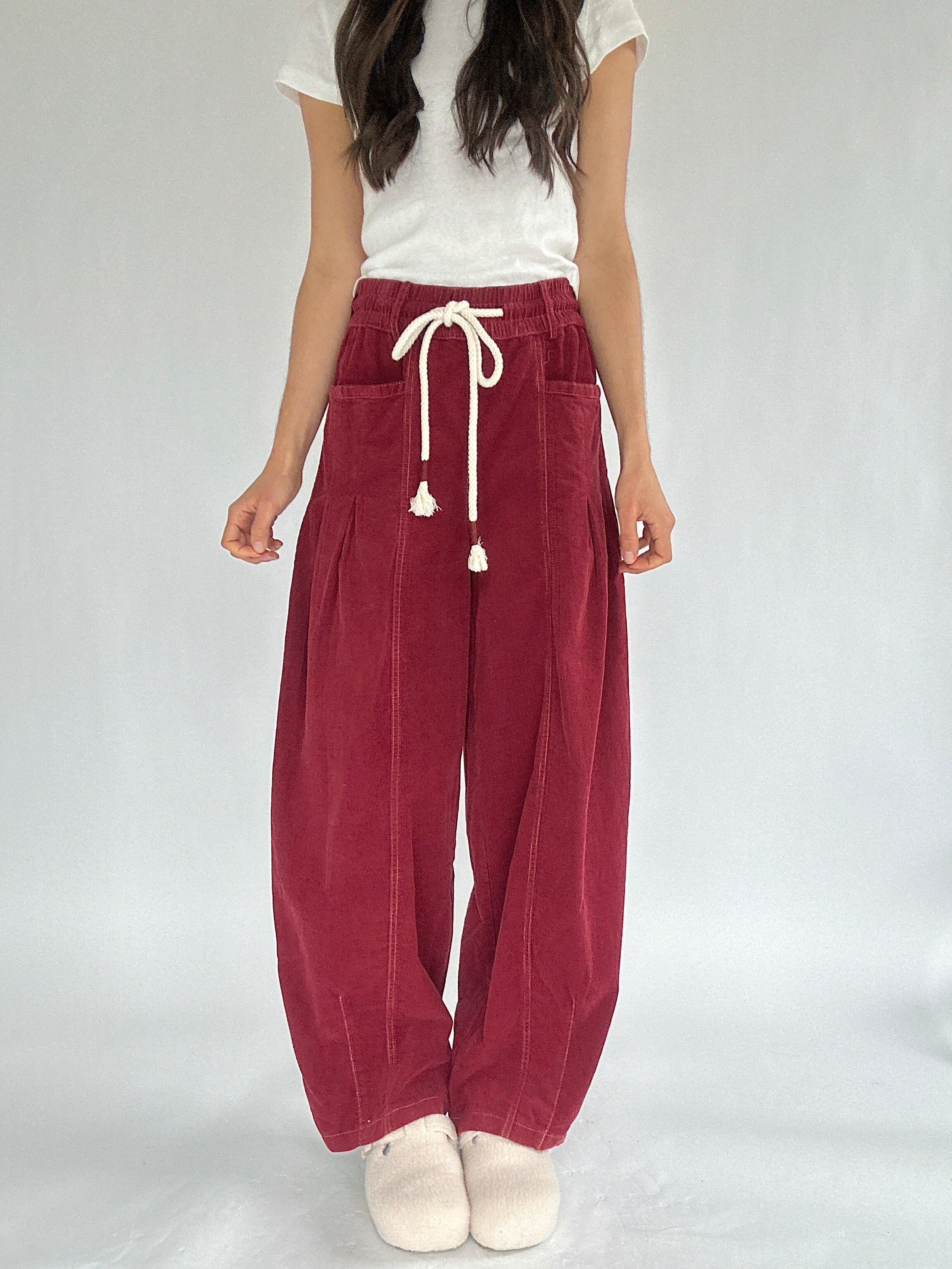 Carver Corduroy Velvet Barrel Pants - Burgundy