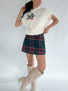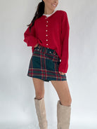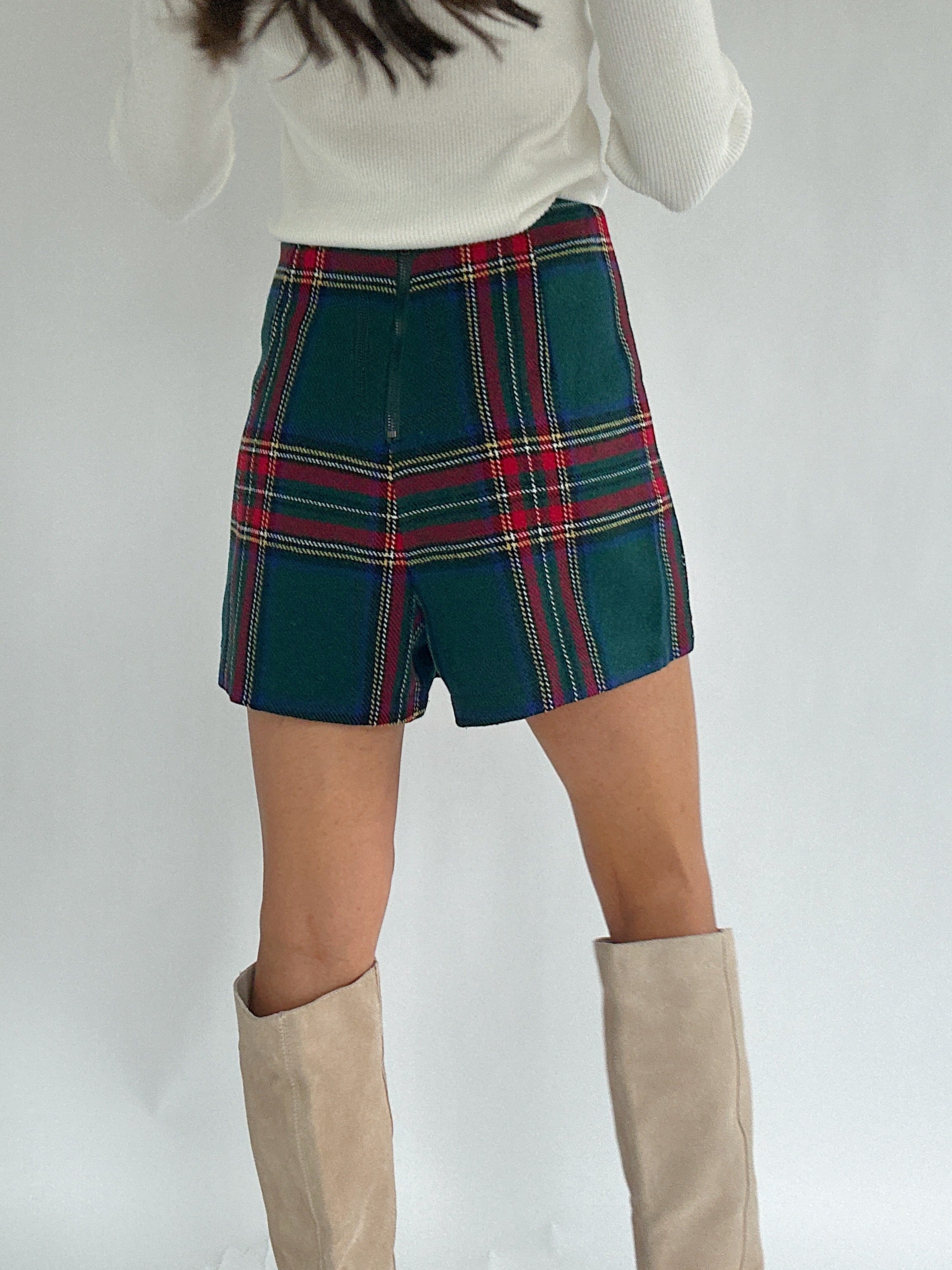 Festive and fun with a classic twist—the Home For The Holiday Skort is made for all your December plans. With a skirt in the front and shorts in the back, it gives you the best of both worlds: the look of a mini with the comfort (and coverage) of shorts. The hunter green checkered plaid keeps it perfectly holiday-ready, while the belt loops and back zipper add a polished finish. Style it playful with a themed sweater or keep it timeless with a chunky knit and boots—either way, it’s picture-perfect for family gatherings and parties alike.