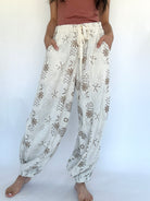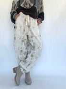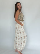 Cute, comfy and SO trendy - these jogger pants are a must have! The natural Obviously Embroidered Jogger Pants have brown floral embroidery with quilted vibes throughout that make them totally eye-catching! The fit is a wide leg silhouette with cinched bottom hem to give them a jogger style that's super comfortable for an all day wear! Plus the elastic waistband with drawstring makes them an easy fit, too. AND they have pockets!