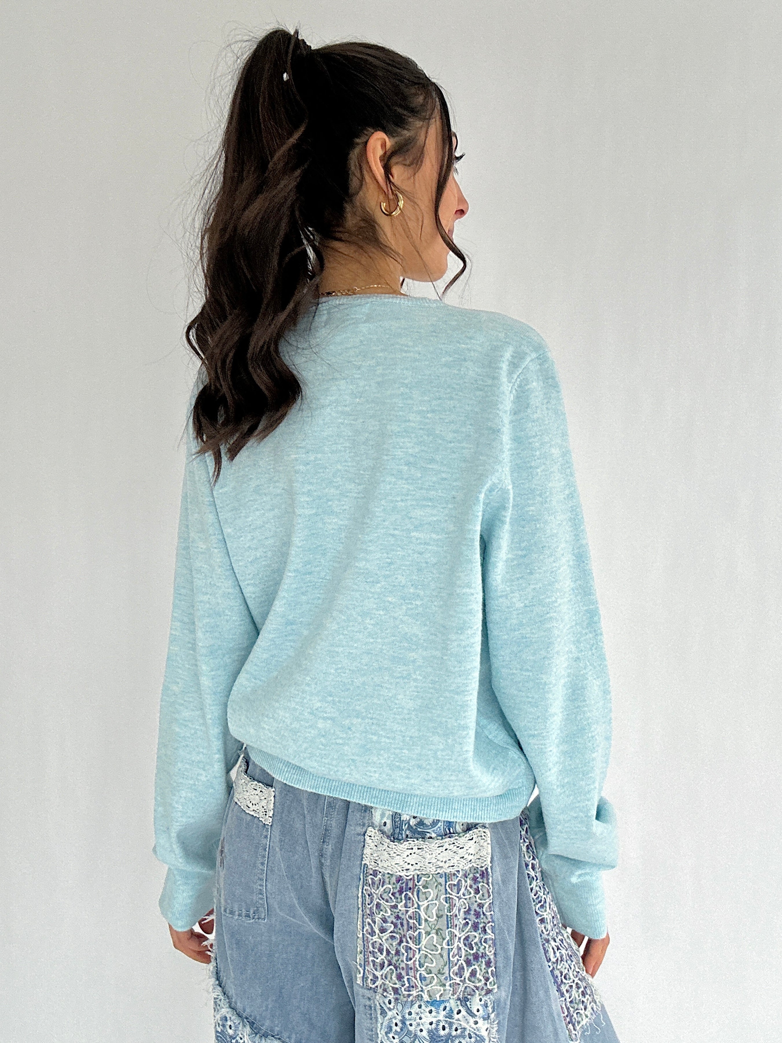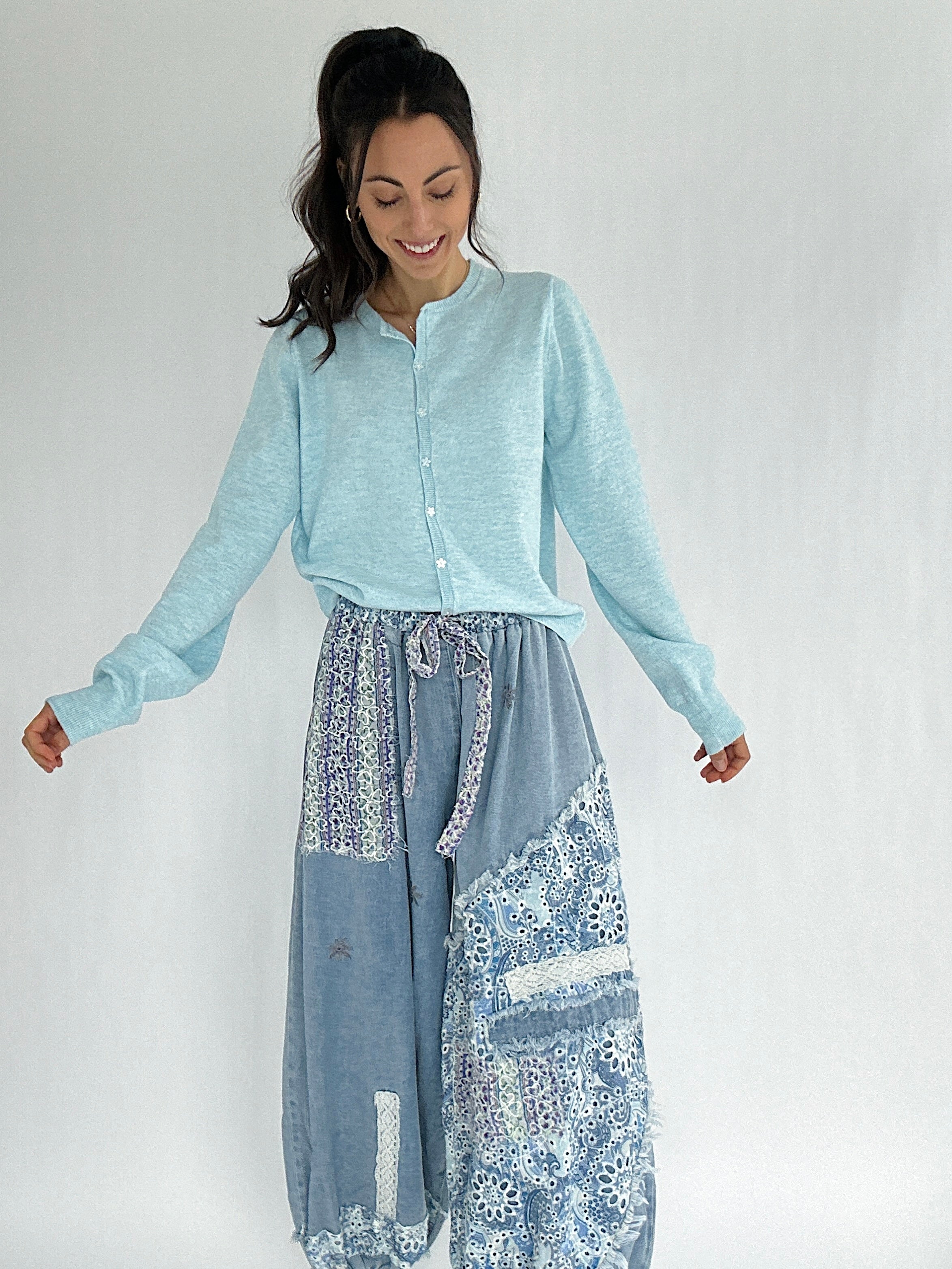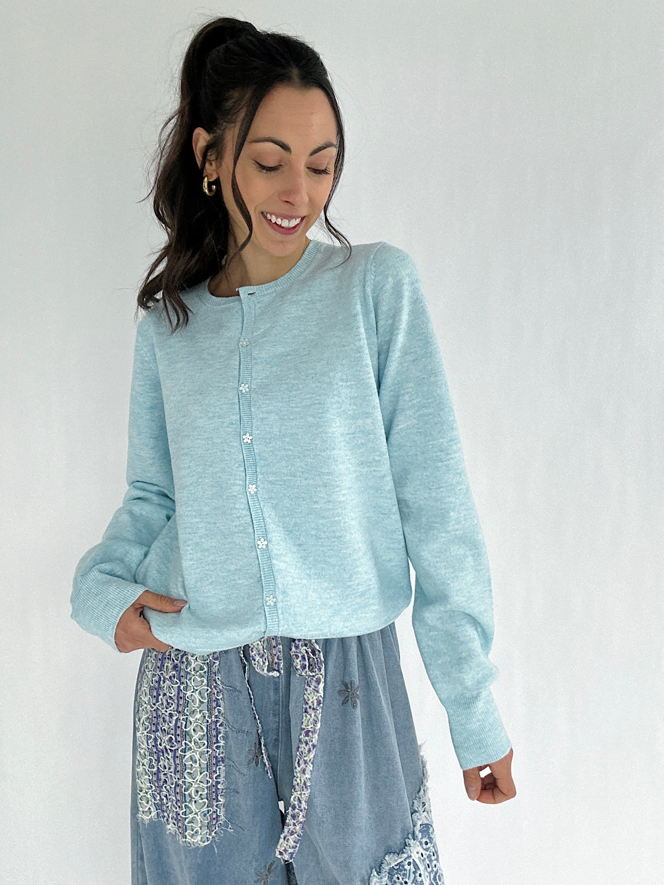Saydee Flower Button Cardigan - Sky Blue