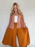 These flowy wide leg pants feature front pleats, a back elastic waist and pockets! Perfect to take on vacation and so easy to dress up or down!