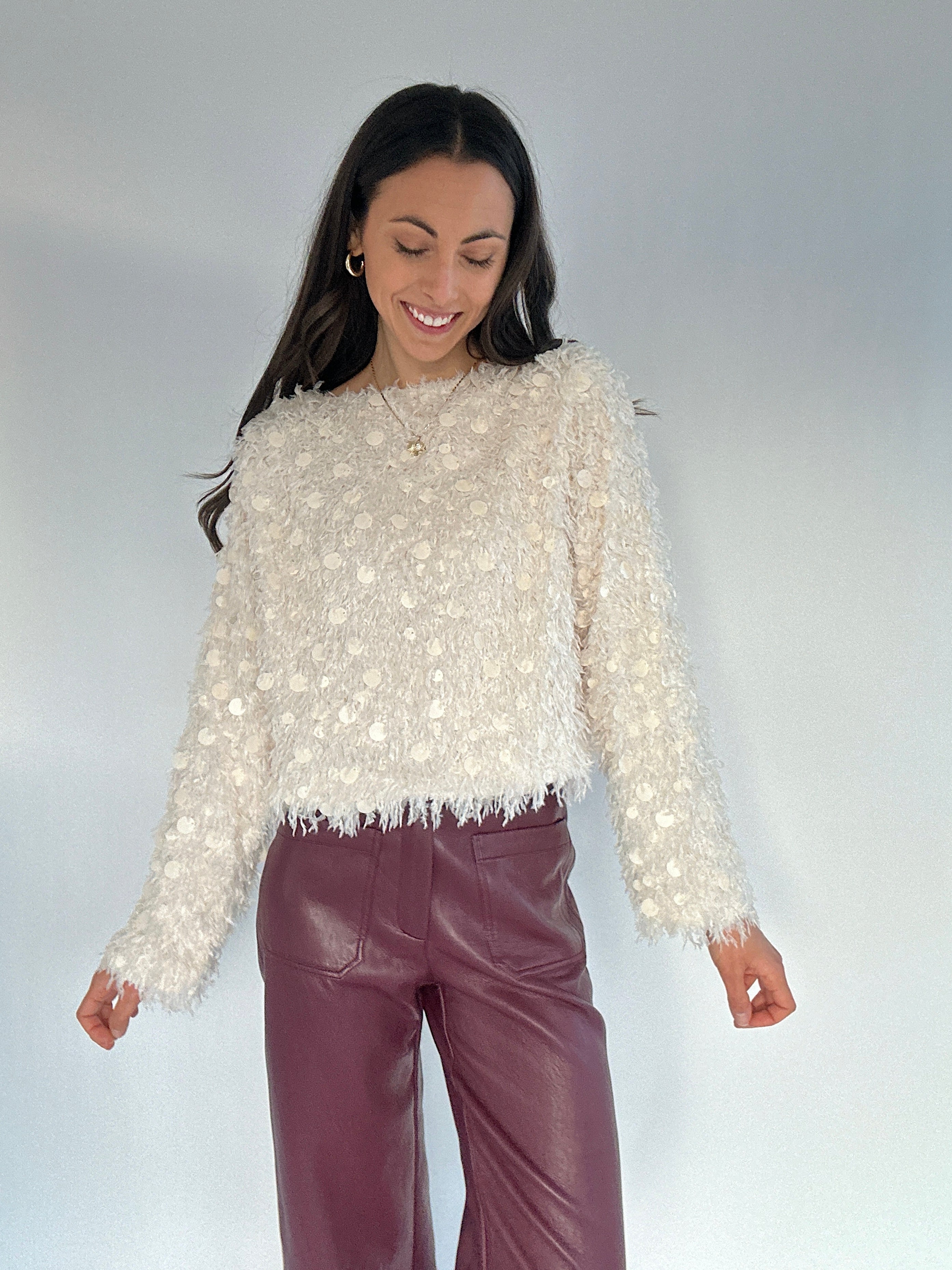 Erna Chic Sweater Top – A cozy yet sophisticated piece you’ll reach for all season, it's perfect for holiday gatherings, office looks, or evening outings with friends. Its plush, fuzzy fabric and elegant crew neckline make it easy to wear while keeping a chic appearance. The long sleeves and pull-on design provide comfort and versatility, making it a must have addition to your wardrobe!
