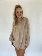This neutral cotton slub long sleeve top is an elevated basic that you need in your wardrobe! It has exposed seaming for some subtle detail and a slouchy fit for comfy wear!