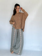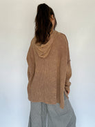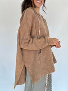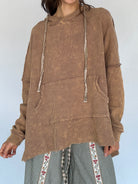 This mocha thermal hoodie has a vintage wash, split sides, kangaroo pocket and drawstring hood.