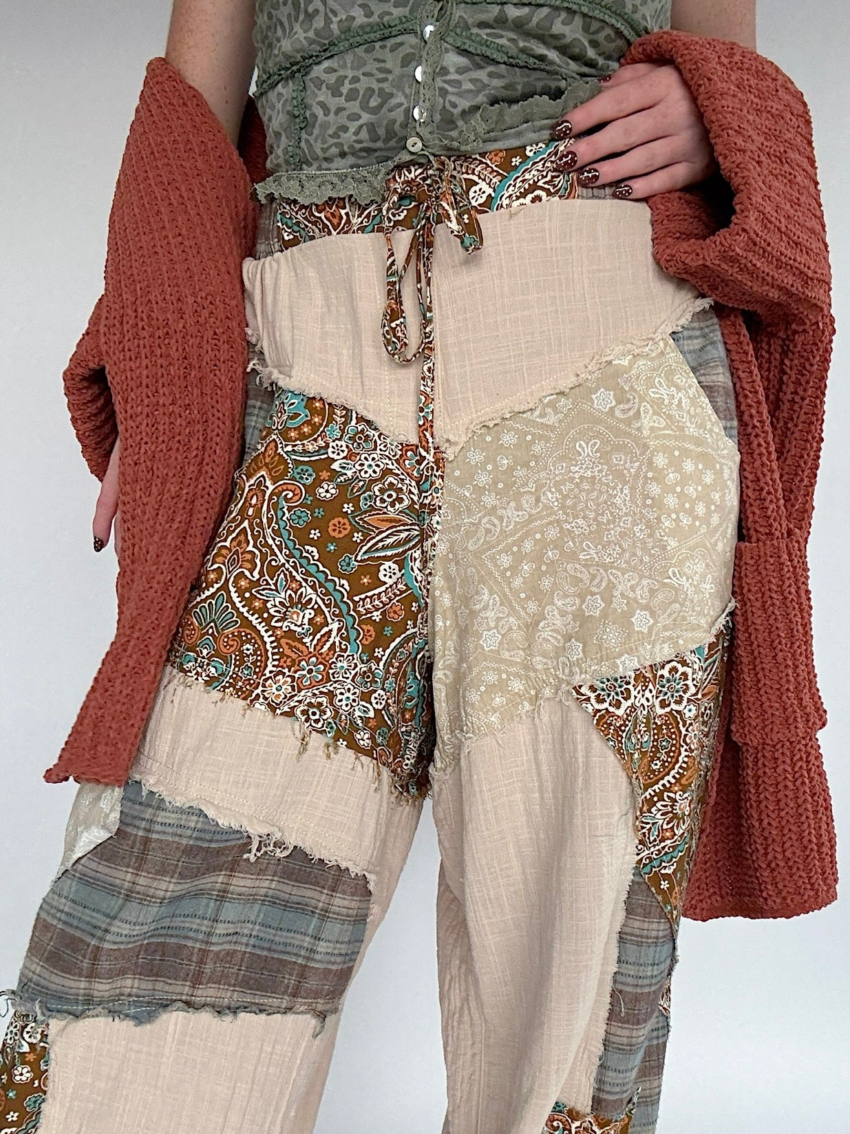An effortless free-spirited vibe, the Janson Paisley Patch Jogger Pants bring texture, color, and comfort together in your new favorite pants. Designed in lightweight gauze, they feature pointed paisley patchwork with frayed edge details, plus added back pocket flaps for a little extra charm. Finished with an elastic waistband and drawstring, cinched hems, and side pockets, these relaxed joggers are made for laid-back days with a touch of personality.