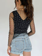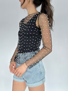 Main Character Embellished Mesh Top - Black