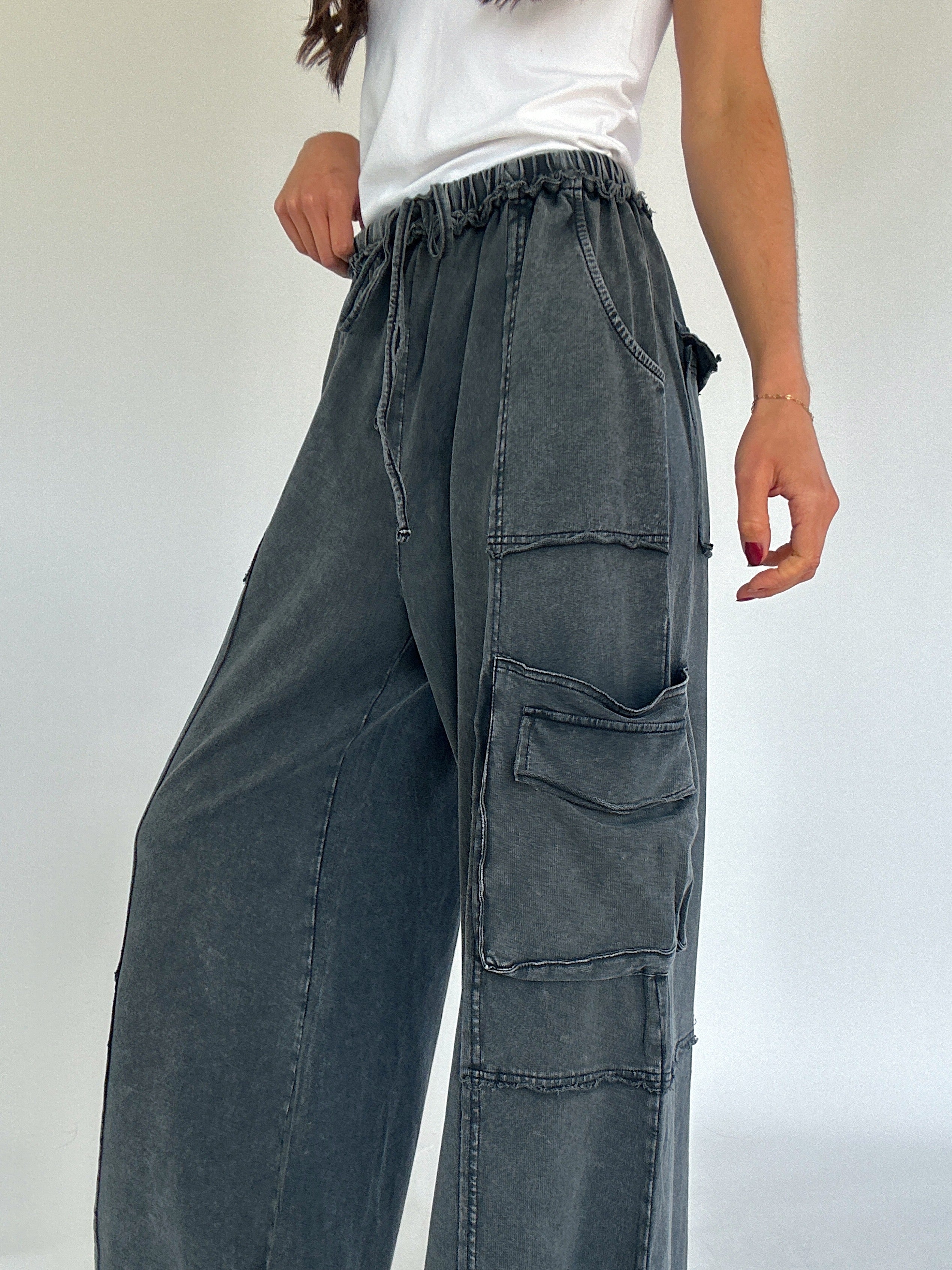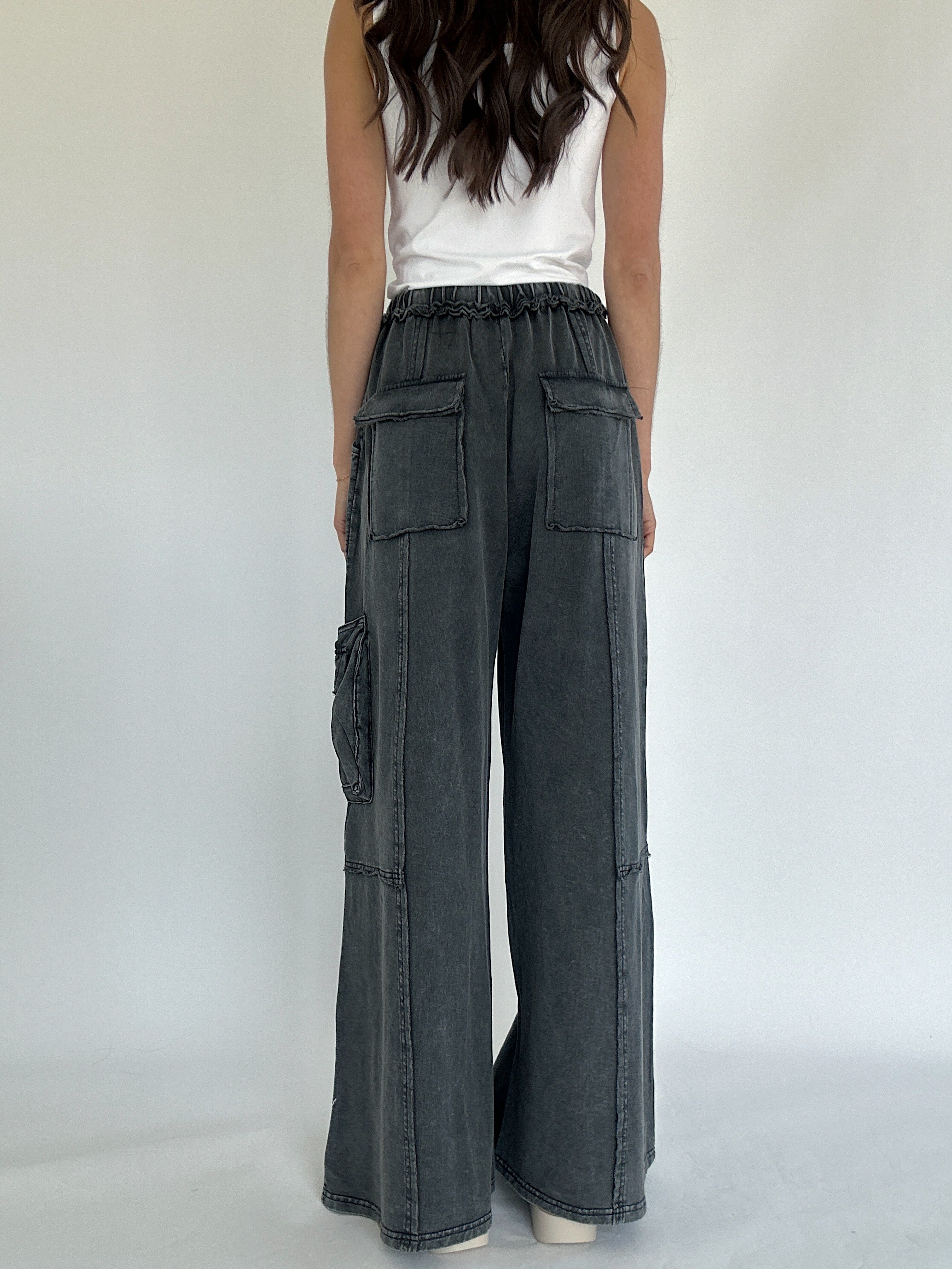 Made for slow mornings, busy weekends, and everything in between—the Miles Ahead Wide Leg Pants are the kind you’ll throw on and end up living in. The mineral wash, relaxed fit and lightweight terry knit make them feel like loungewear, but the raw seams and cargo pockets add just the right amount of style.