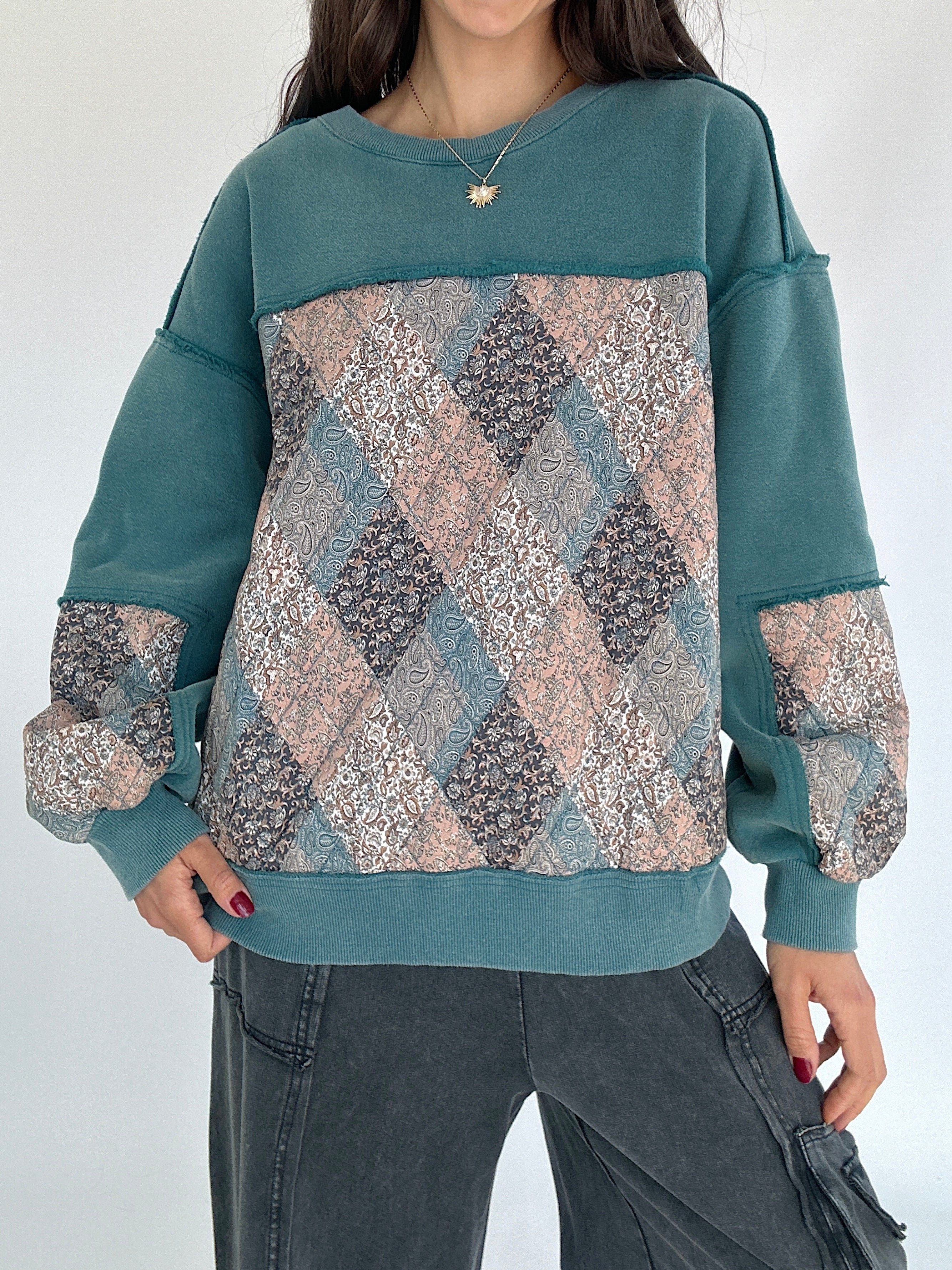 Meet your new go-to for cozy days with a little extra something. The Scottie Quilted Pullover brings all the comfy, lived-in feels with its mineral-washed finish and quilted floral details. The mix of textures and subtle paisley print on the back give it that one-of-a-kind, vintage look we love. Designed with a relaxed, boxy fit and side pockets for that laid-back ease.