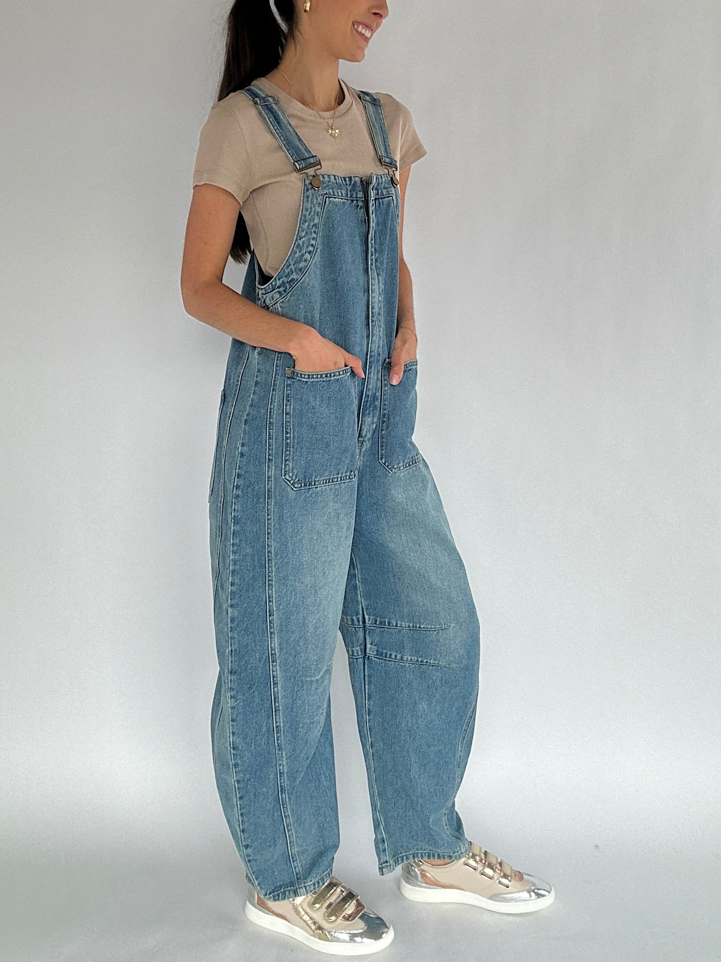 Kady Denim Barrel Overalls