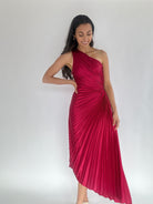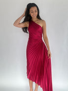 This is the dress that’s going to turn heads at your next event! The Cora Pleated Maxi Dress is a must-have for wedding guests + formal events. The one-shoulder neckline and dramatic pleats give it an effortlessly elegant look, while the side cutout adds just the right touch of modern detail. The asymmetrical hemline creates beautiful movement with every step, making this dress perfect for dancing the night away!