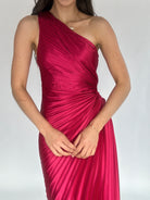 Designed in a stunning magenta satin, this dress not only feels luxurious but also flatters your figure with its side zip closure and lined interior for comfort. Whether you're celebrating love at a wedding, making a statement at a gala, or dressing up for a special occasion, this one is guaranteed to stand out.