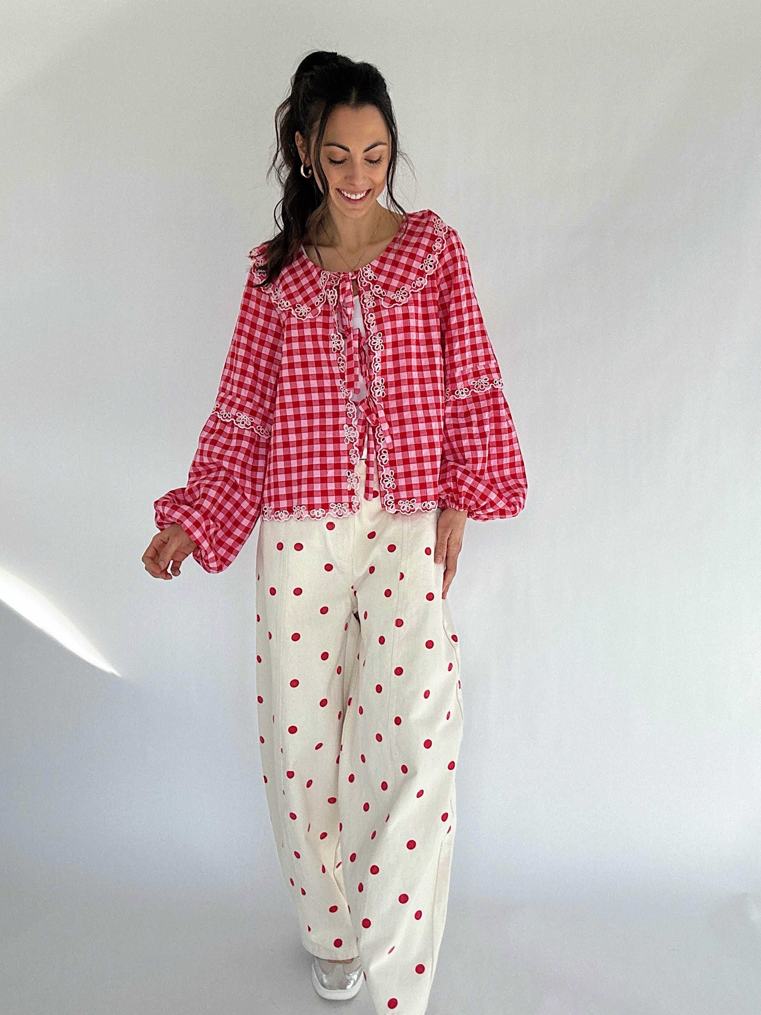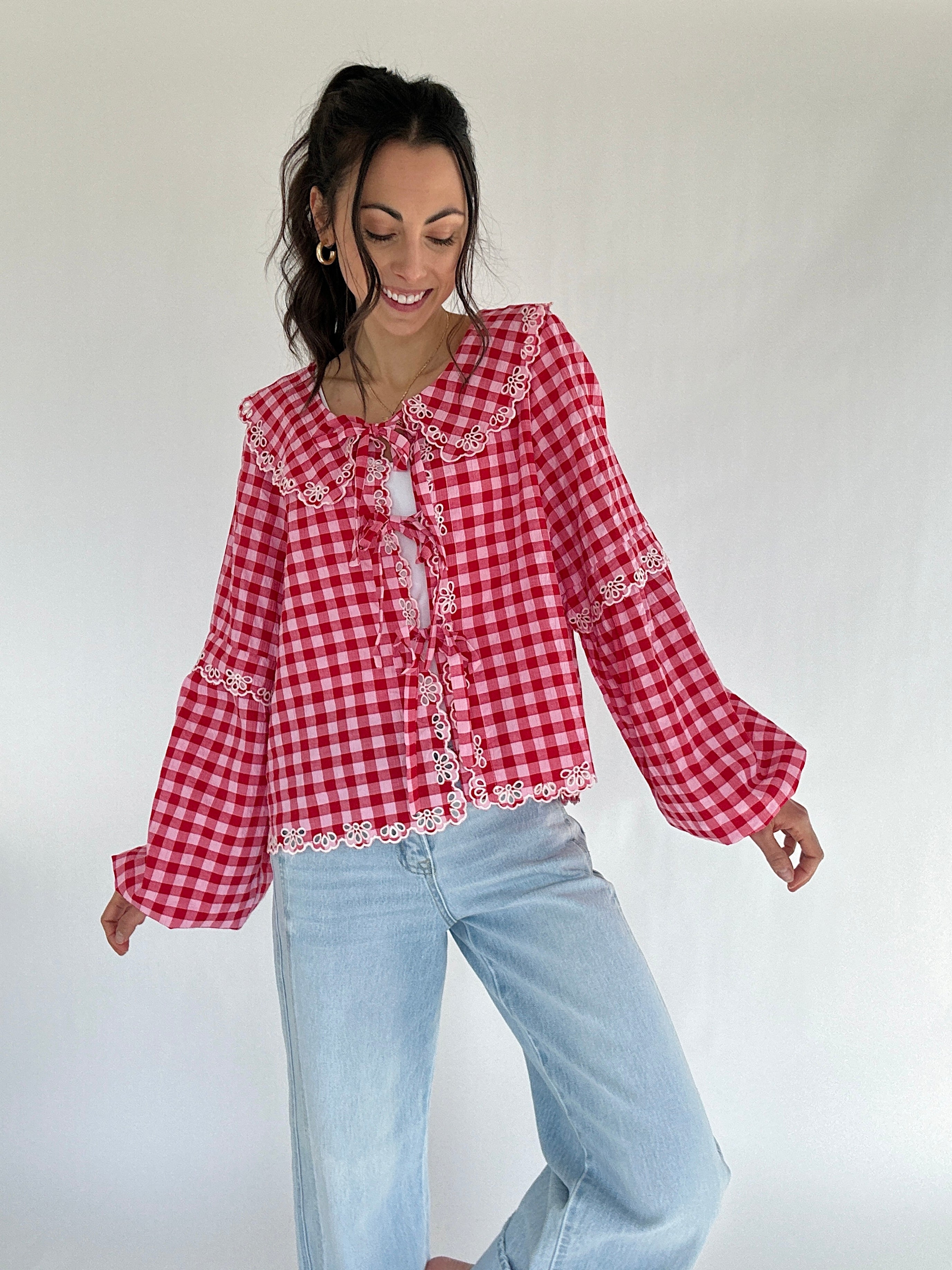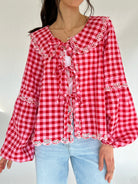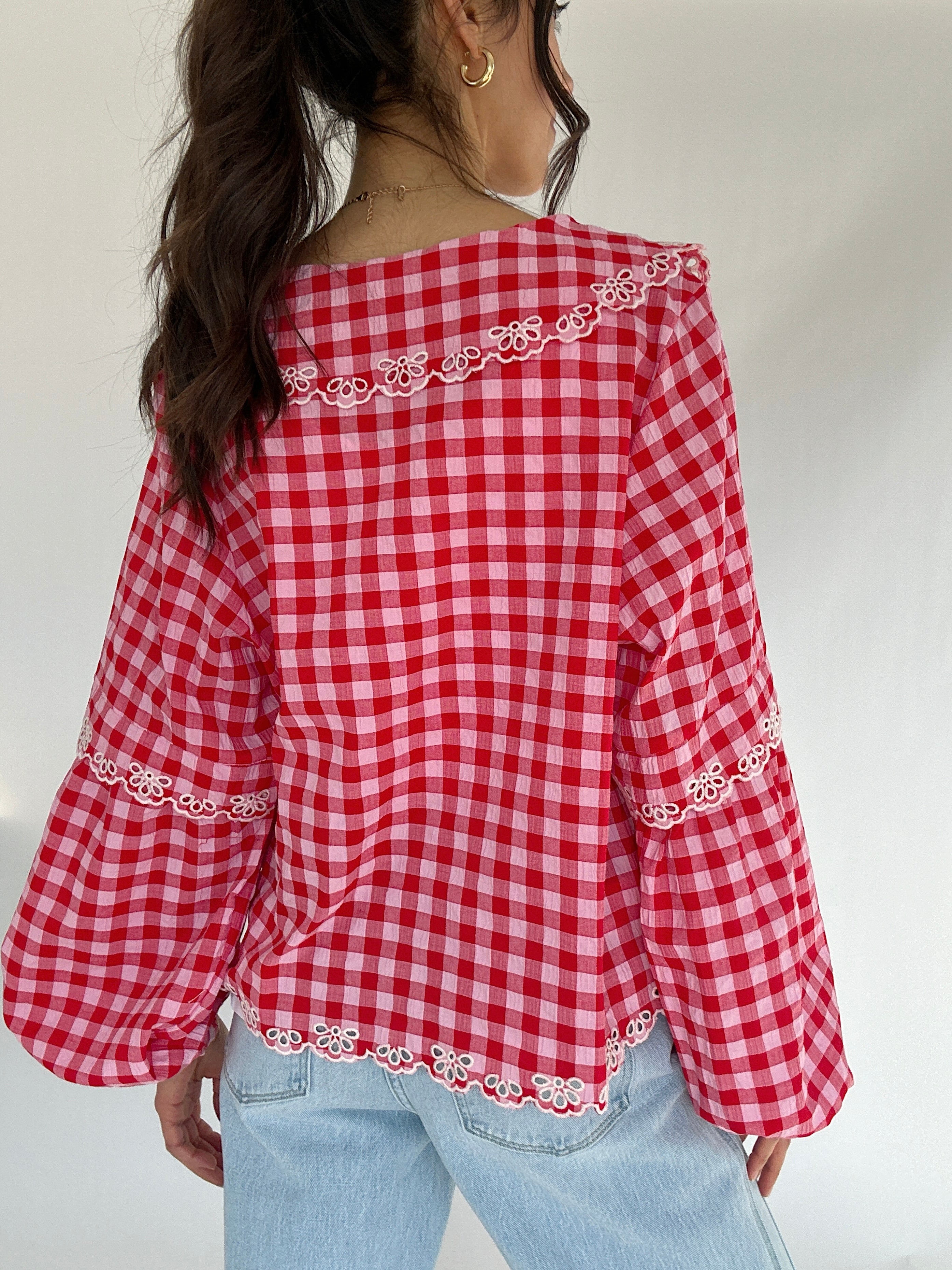 Picture this: sunshine, fresh flowers in hand, and compliments from strangers. This gingham blouse is made for your Saturday morning farmers market run, your impromptu patio brunch, and every casual day that deserves a little extra sweetness. It's the kind of top that makes you feel instantly put-together.