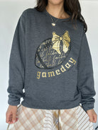 Gold "Gameday" graphic on heather navy unisex crewneck sweatshirt. Perfect for cool Friday nights under the lights with a skirt, shorts or your favorite denim. Cheer on your team in this cutie!