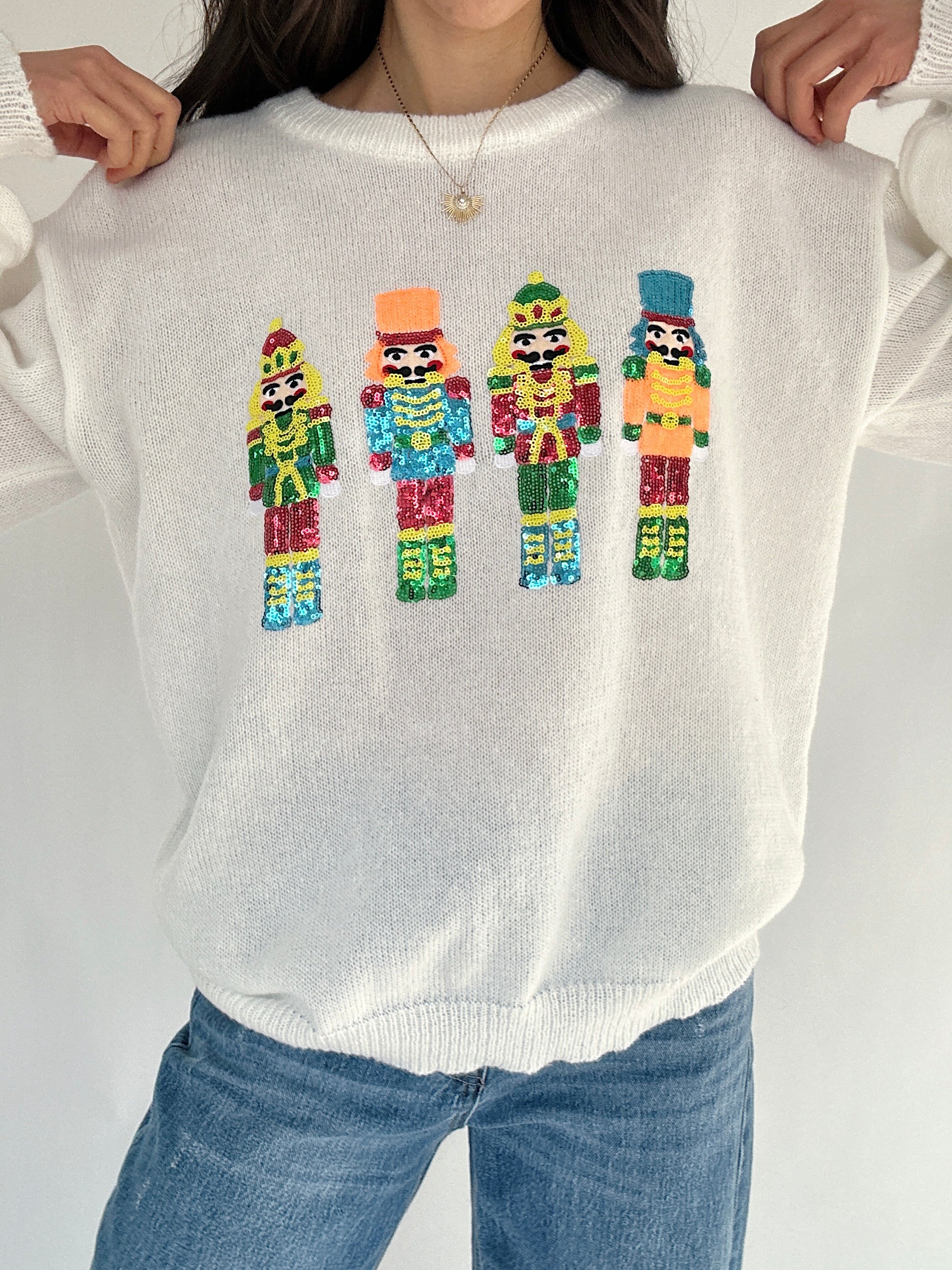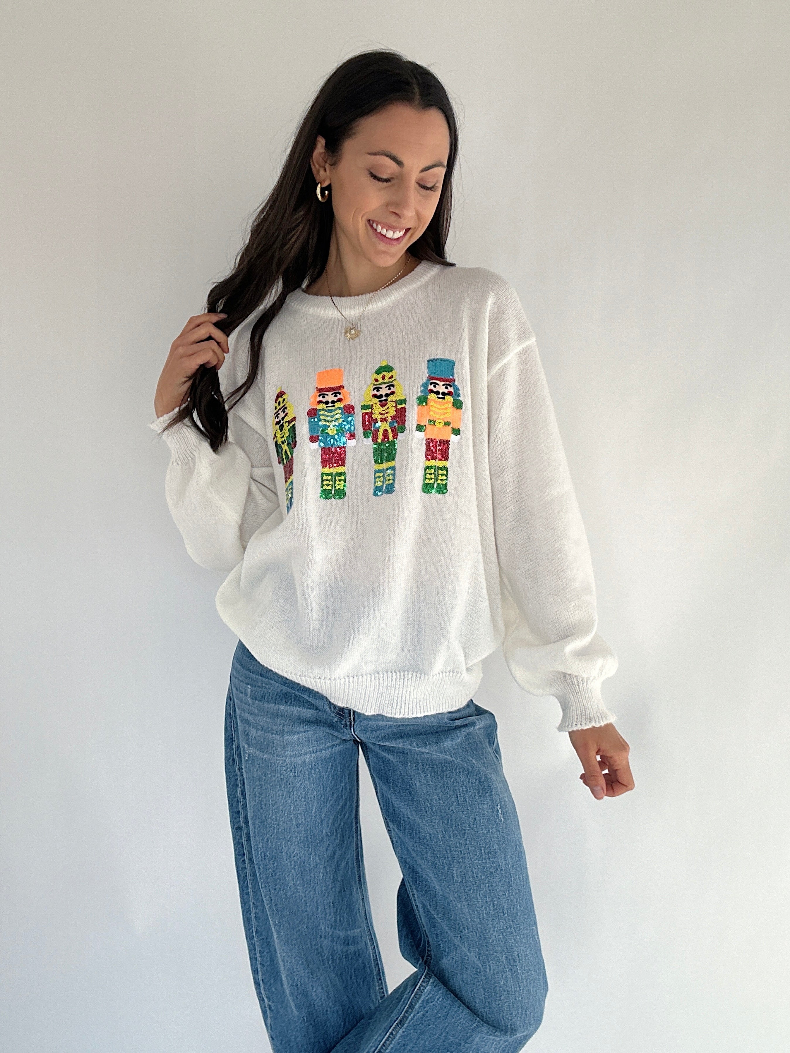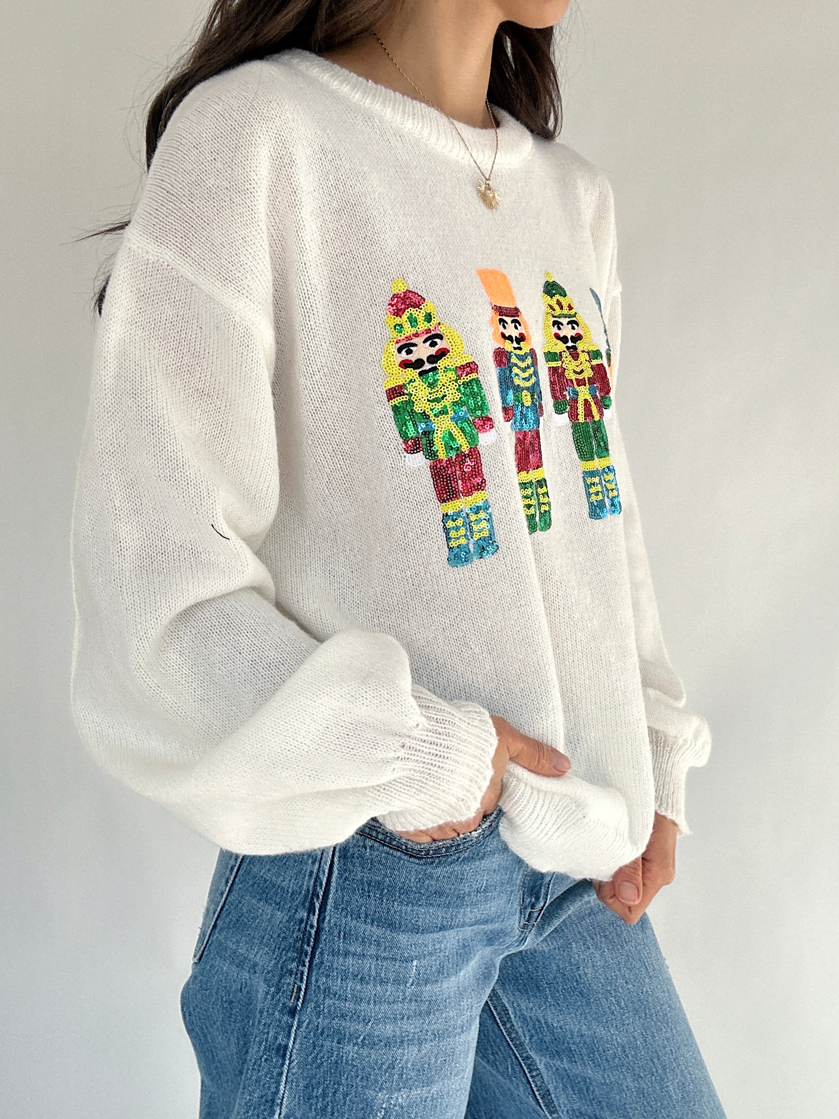 Nutcracker Embroidered Sequin Sweater - Ivory