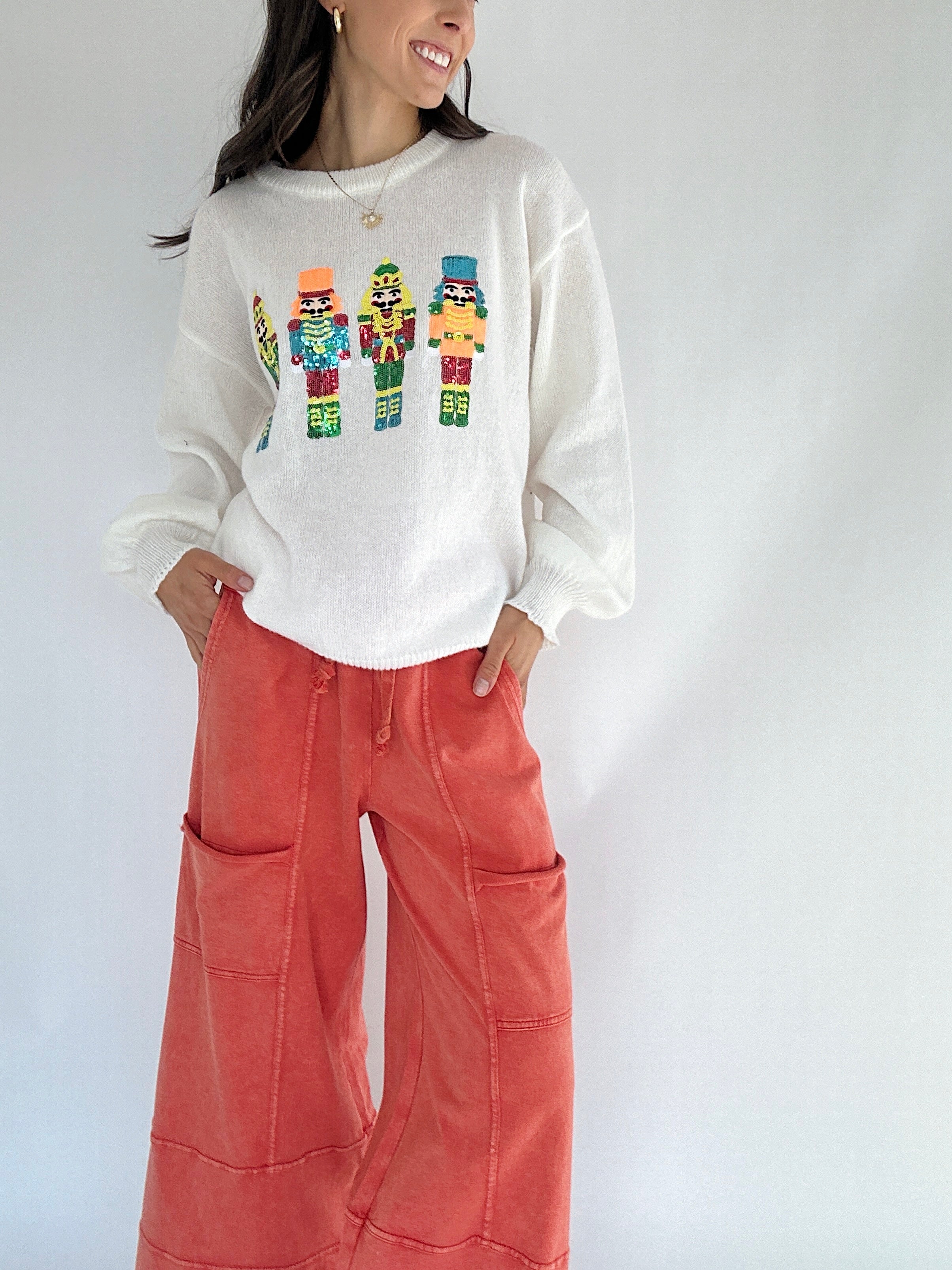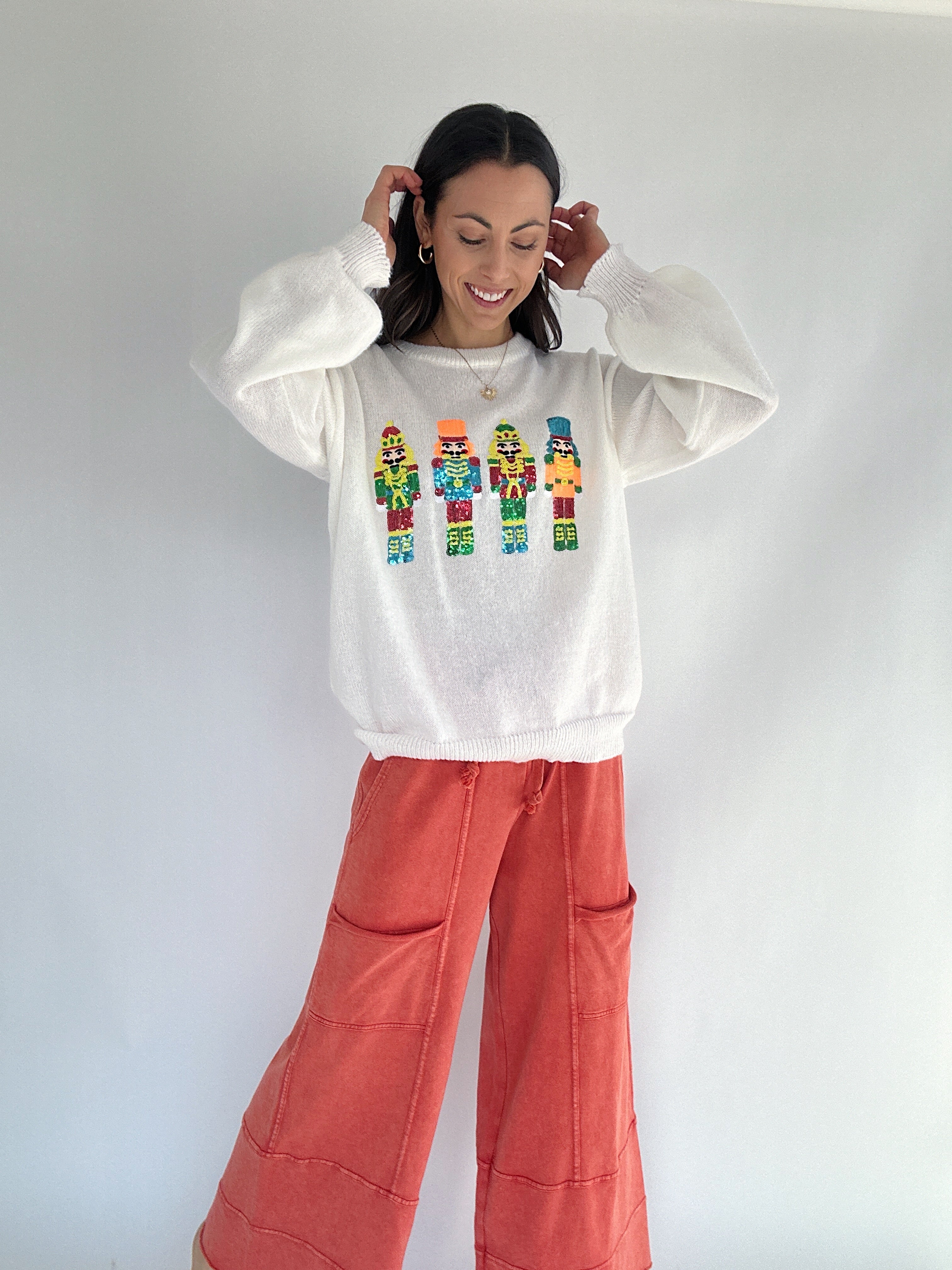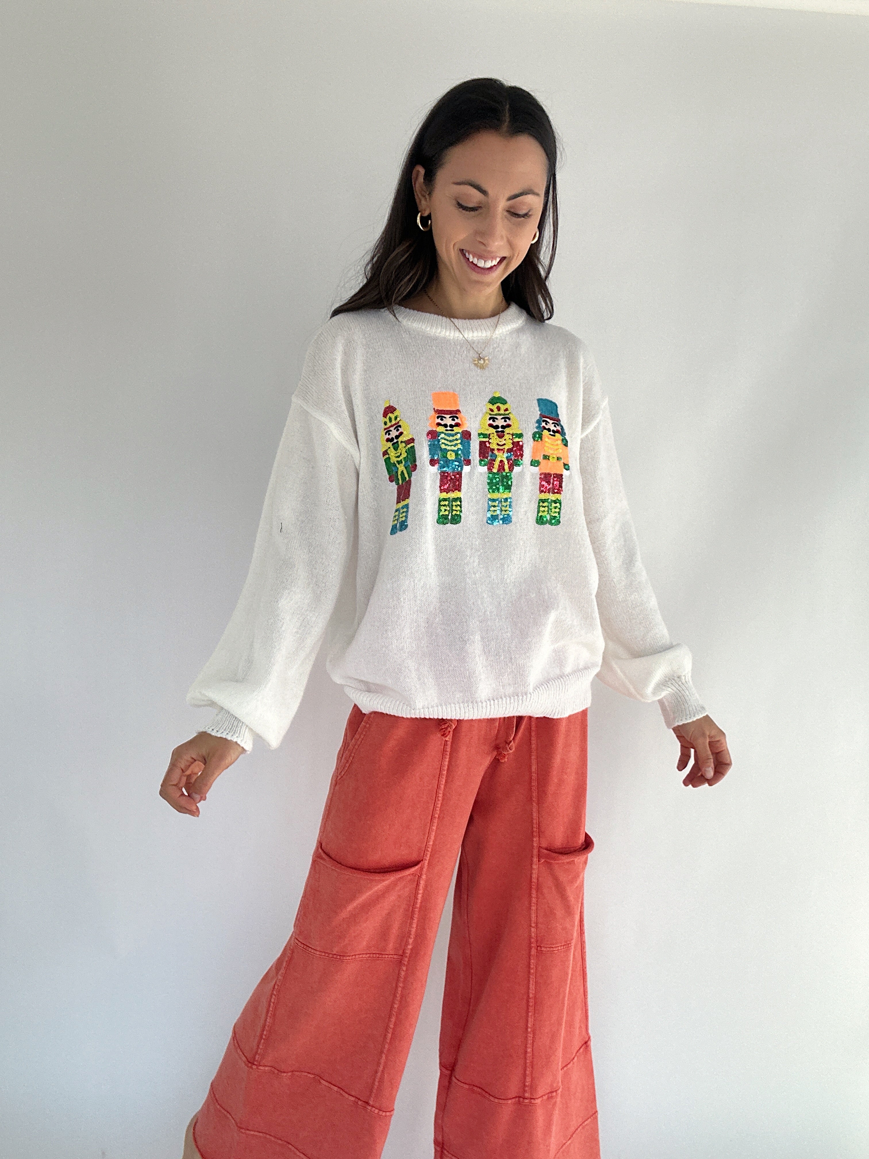 Nutcracker Embroidered Sequin Sweater - Ivory