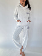 Laid-back with a touch of western charm—the Rodeo Club Hoodie is a cozy go-to for casual days, errands, or lounging in style. Heather grey with an embroidered “Girl’s Rodeo Club” graphic on the back and a smaller chest detail, this hoodie pairs perfectly with the matching joggers or your favorite jeans and leggings. Classic kangaroo pocket and hood keep it practical while adding that signature relaxed vibe.