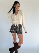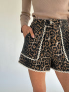 The Unreal Leopard Shorts are a playful mix of bold and feminine, designed to pair perfectly with the matching jacket or worn on their own. Made from twill in a leopard print, they feature delicate scalloped lace trim along the hem and pocket edges for a pretty, detailed finish. With a zip-and-button fly, belt loops, and a touch of elastic at the back waist, they’re as comfortable as they are cute—ideal for dressing up or keeping casual.