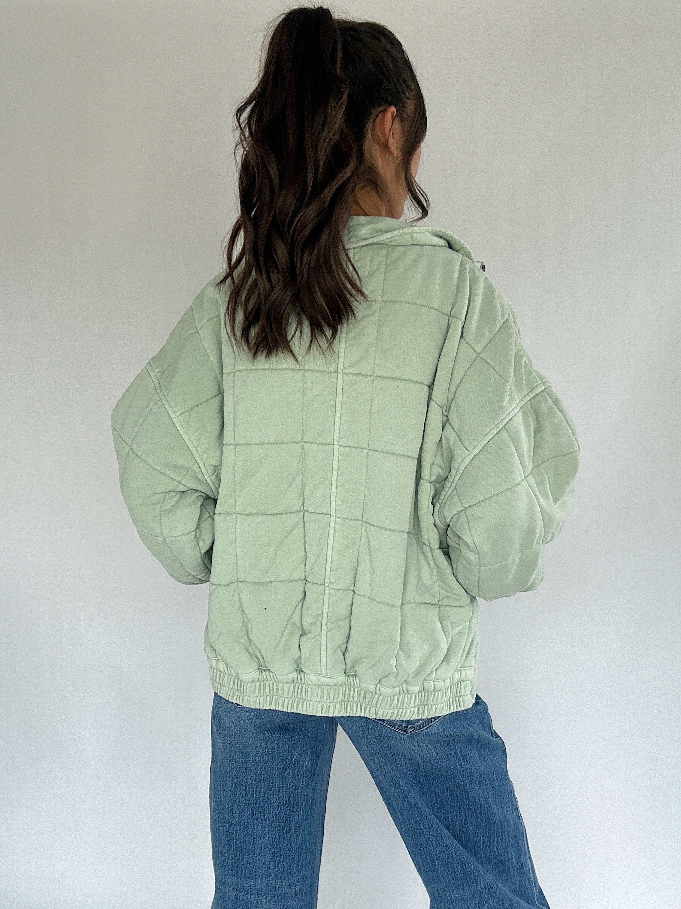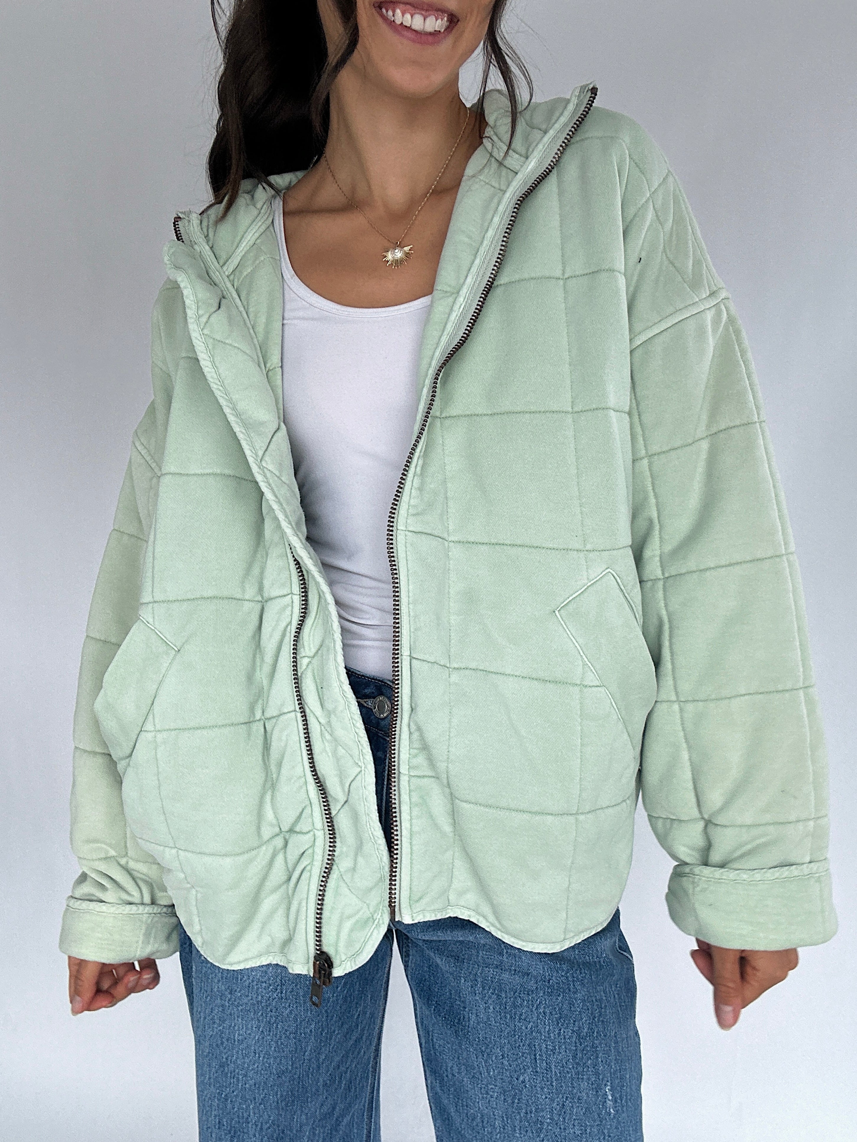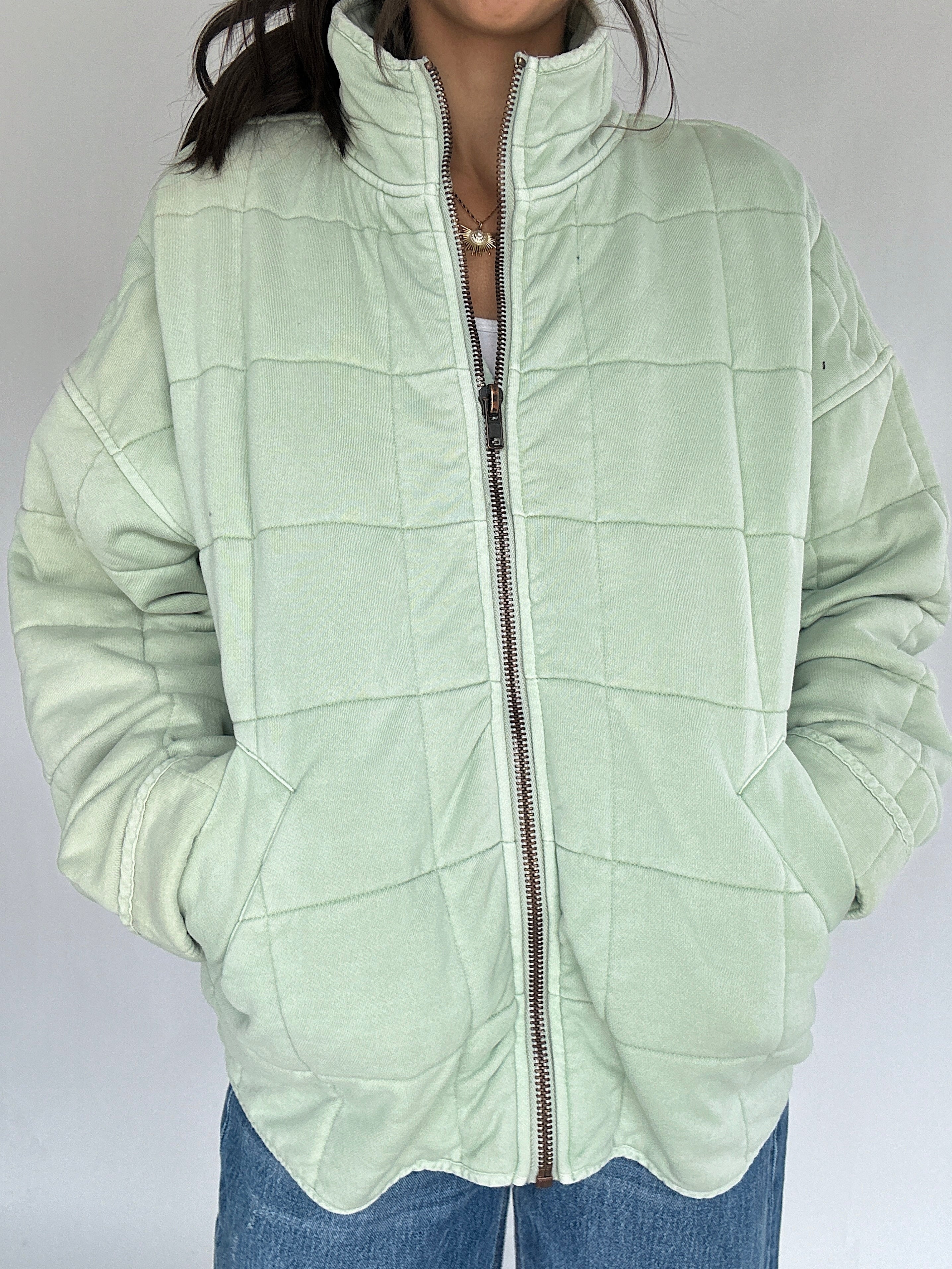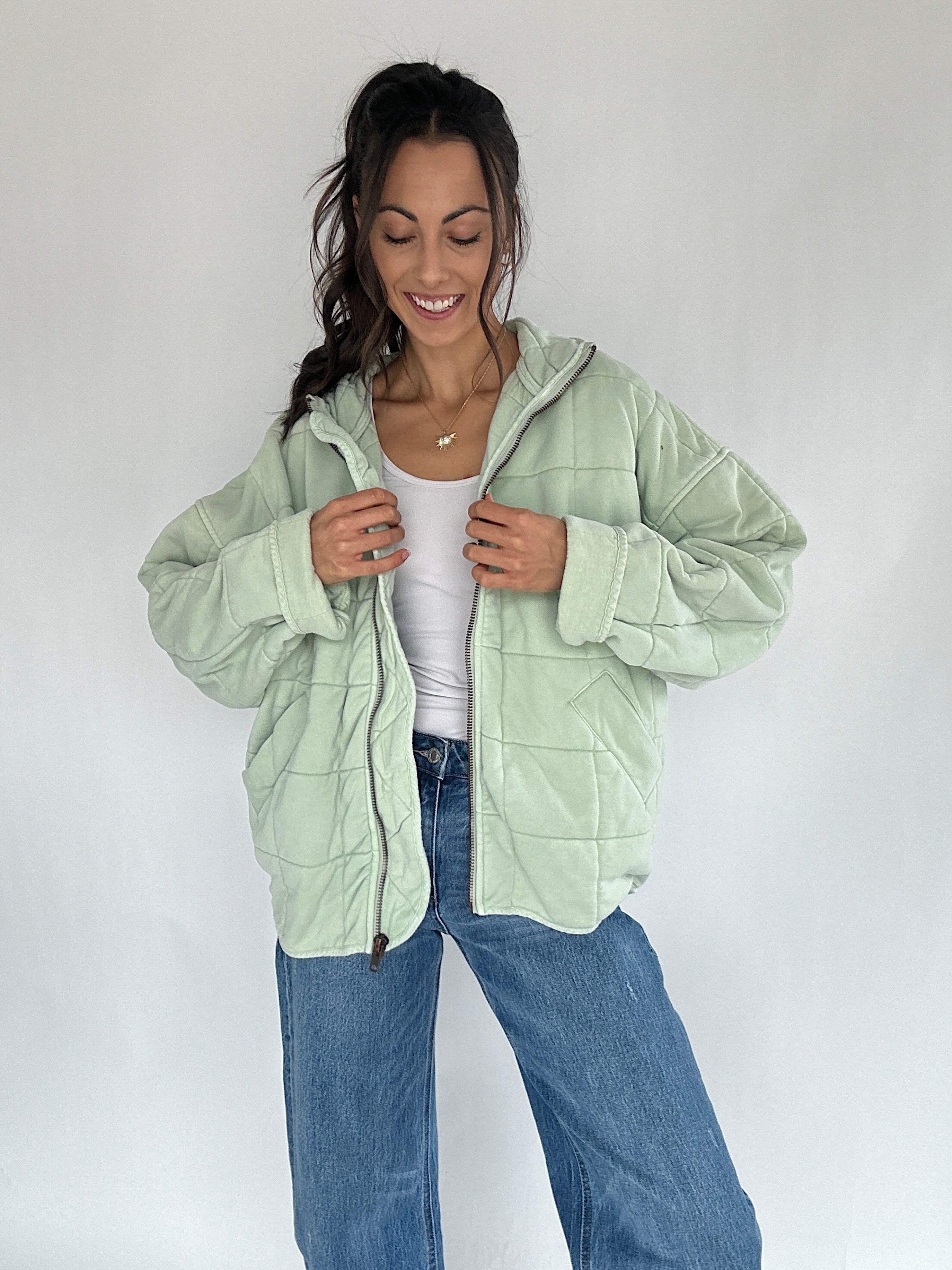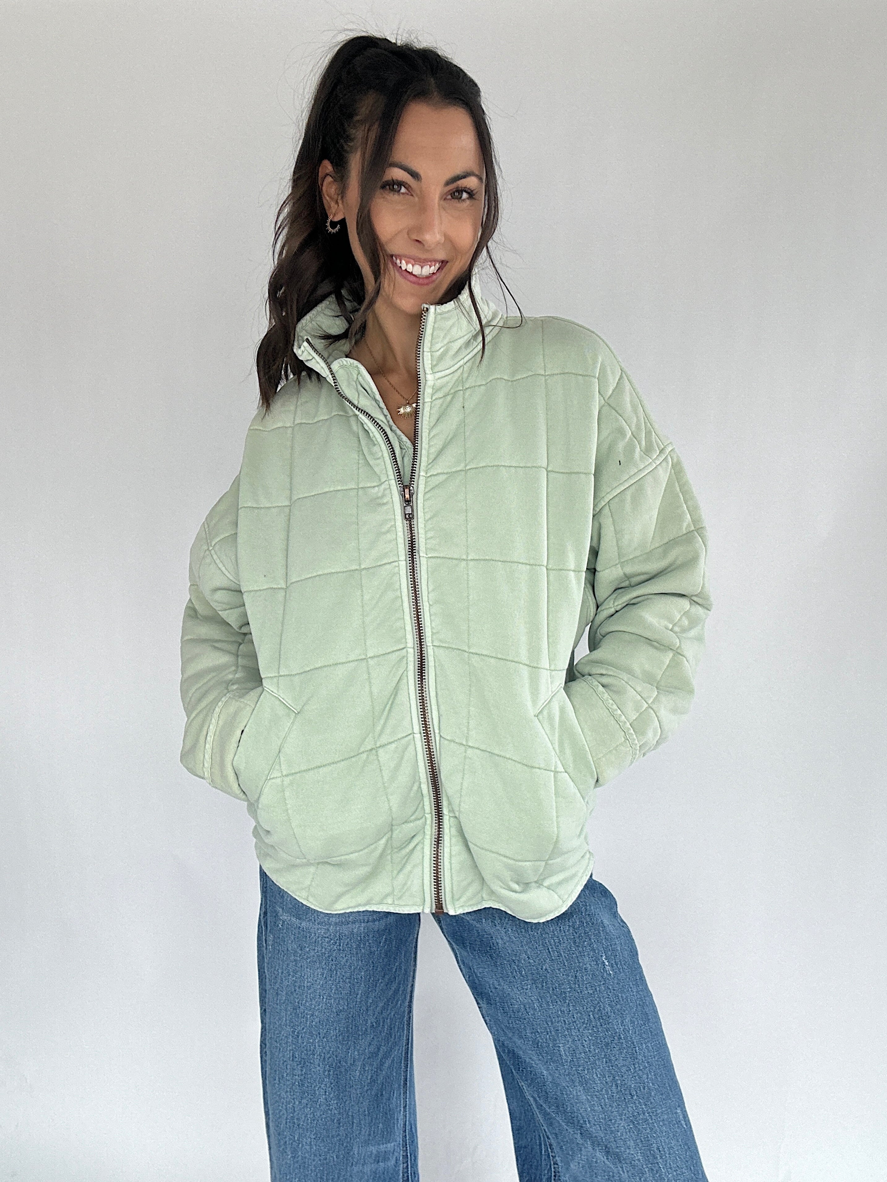 Meet the jacket that instantly makes any outfit feel cozier. This mineral-washed quilted layer has that perfectly broken-in softness and a medium weight that works for everything—cool evenings, crisp mornings, and those chilly winter days when you want warmth without the bulk. Finished with a zip-front closure and easy side pockets, it’s the throw-on-and-go piece you’ll reach for nonstop.