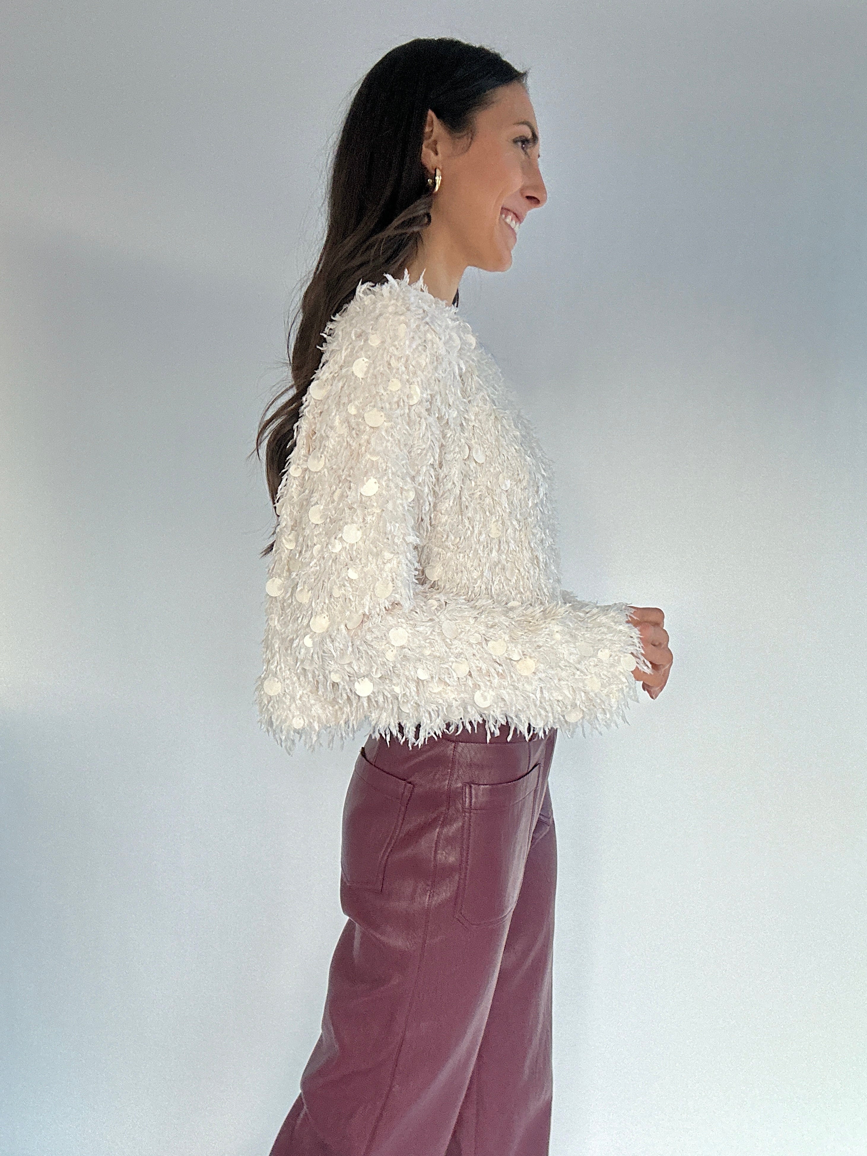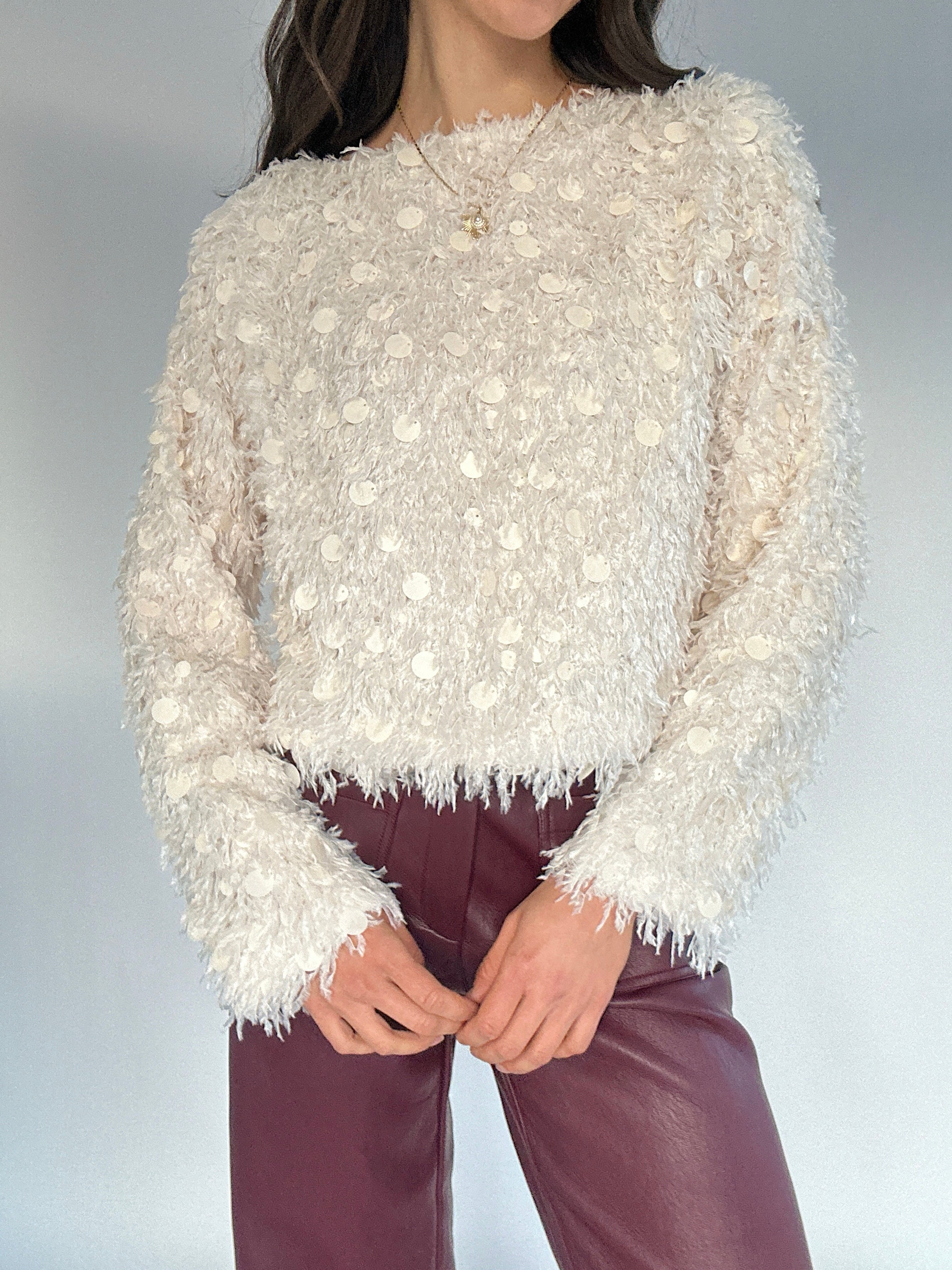 ✶ Plush, fuzzy fabrication in a soft cream hue