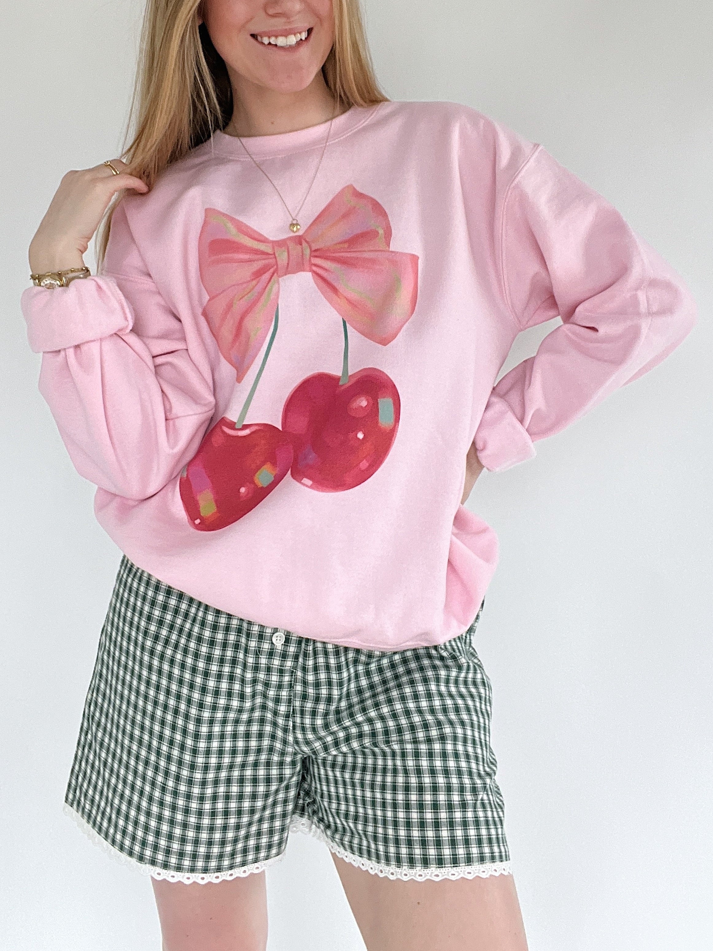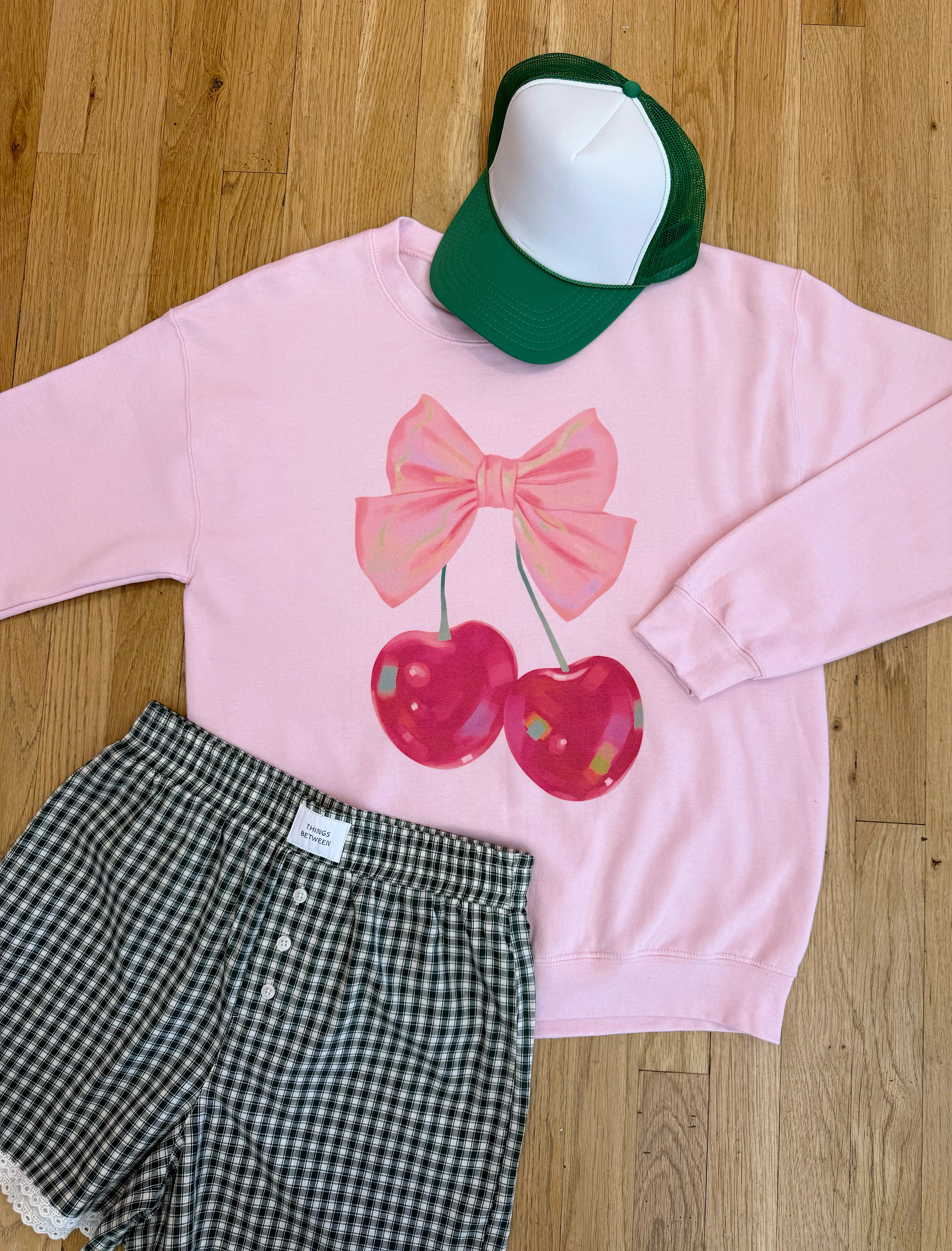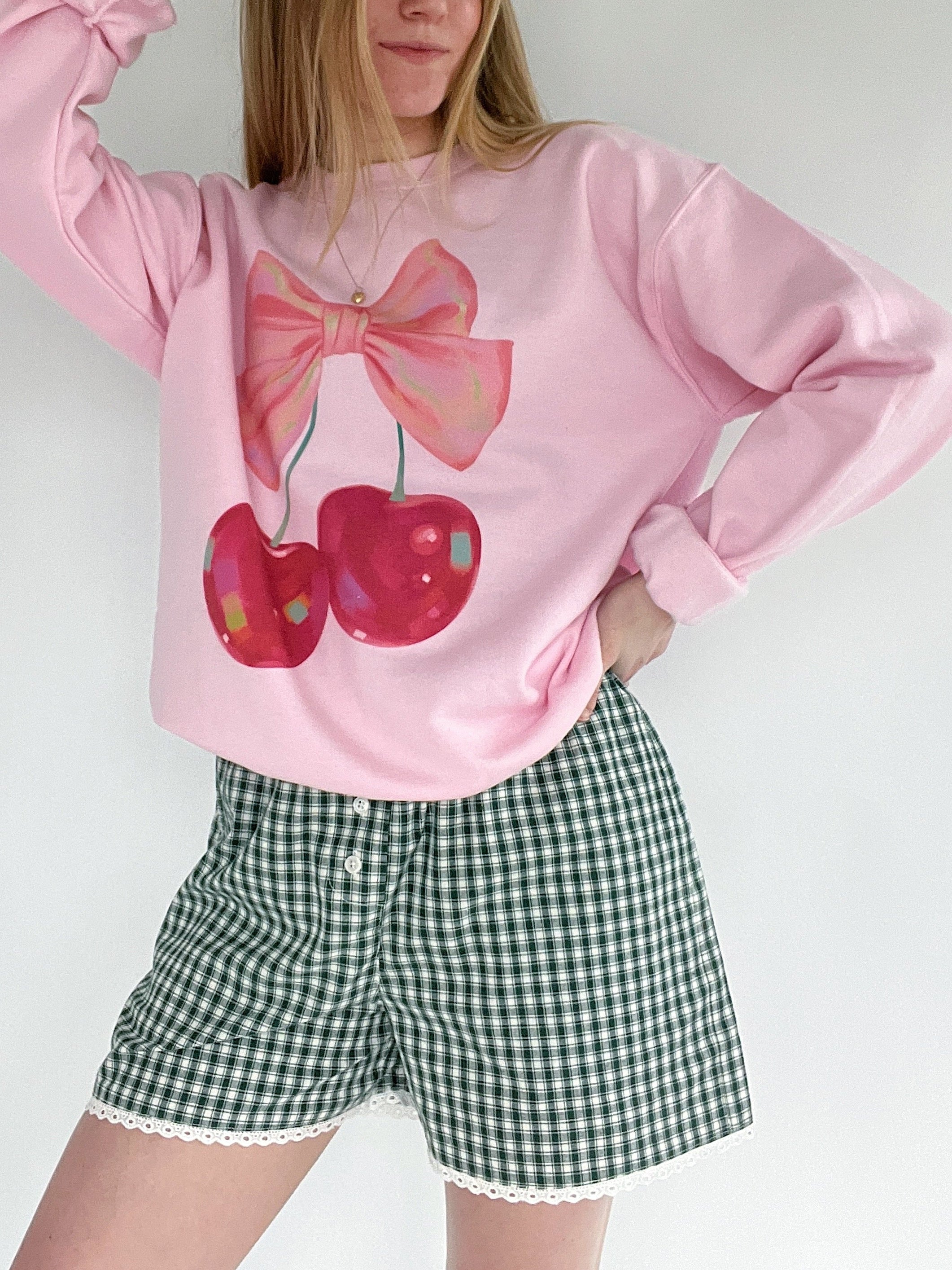 Made for coffee dates, cozy afternoons, and all things love-season, this pink oversized crewneck brings a playful pop to your sweatshirt lineup. Featuring a retro-inspired cherry and bow graphic, it’s soft, comfy, and just the right mix of sweet and nostalgic.