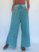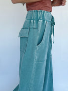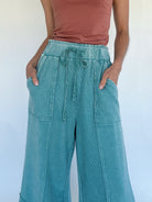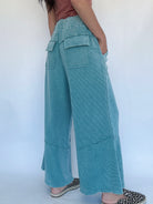 Jennie Ribbed Wide Leg Pants - Faded Teal