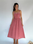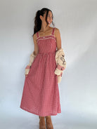 Whether you're headed to a backyard BBQ, picking wildflowers, or just want to feel cute on a sunny Saturday, the Miley Gingham Midi Dress is the one you’ll keep reaching for. With its classic red and white gingham print, lace trim accents, and soft cotton blend fabric—it’s giving sweet, summer simplicity with a little cottagecore flair.