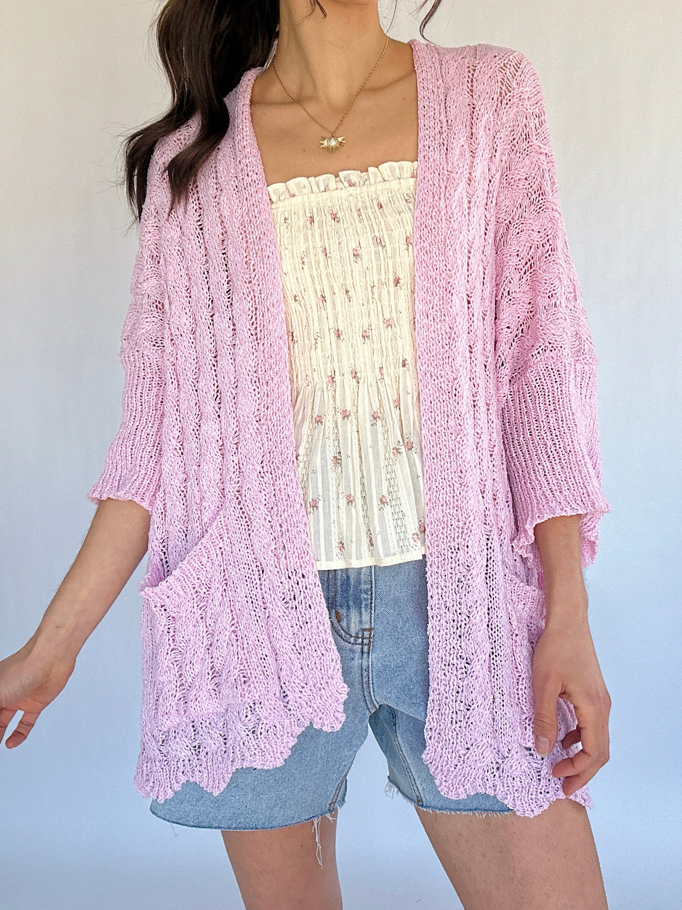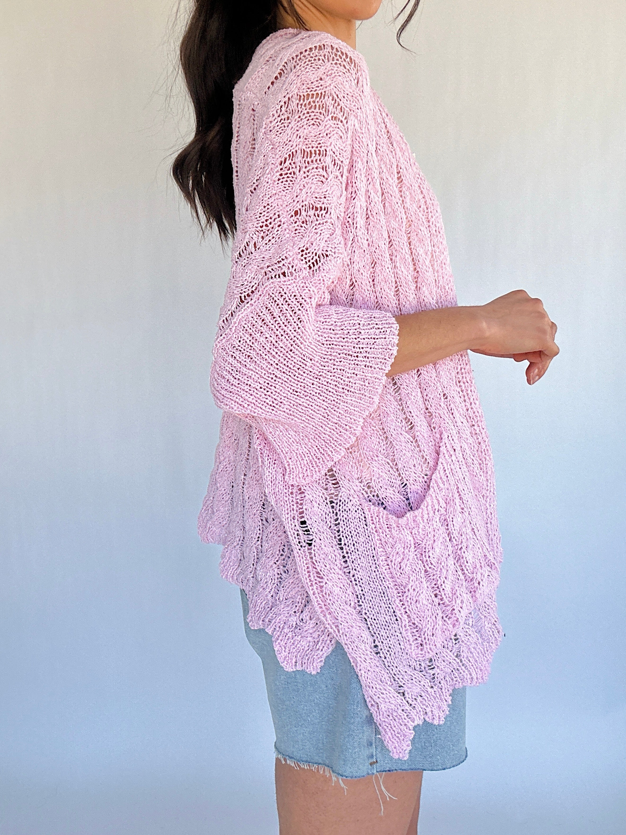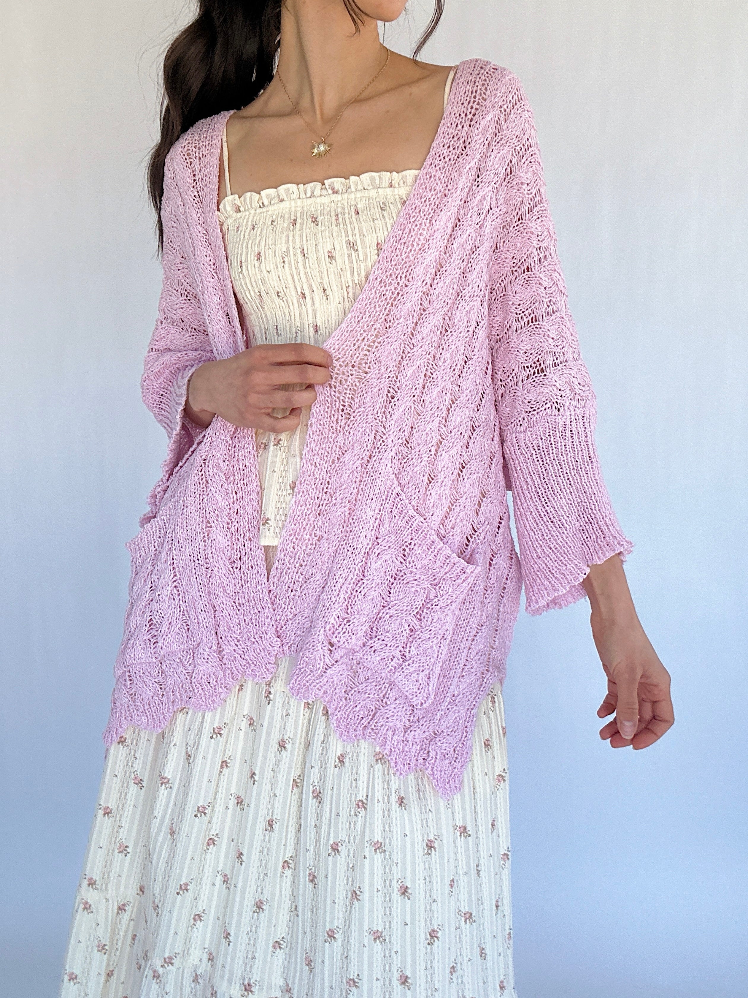 From breezy mornings to casual afternoons and easy layering moments, the Petal Lane Cardigan is the perfect lightweight layer for tanks, tees, or dresses. Crafted in soft acrylic with a relaxed, slouchy fit, it features cable-knit texture throughout for subtle dimension. 3/4 sleeves, scalloped hem, and convenient pockets make it effortless and functional, while the airy construction keeps it light enough to wear all day.