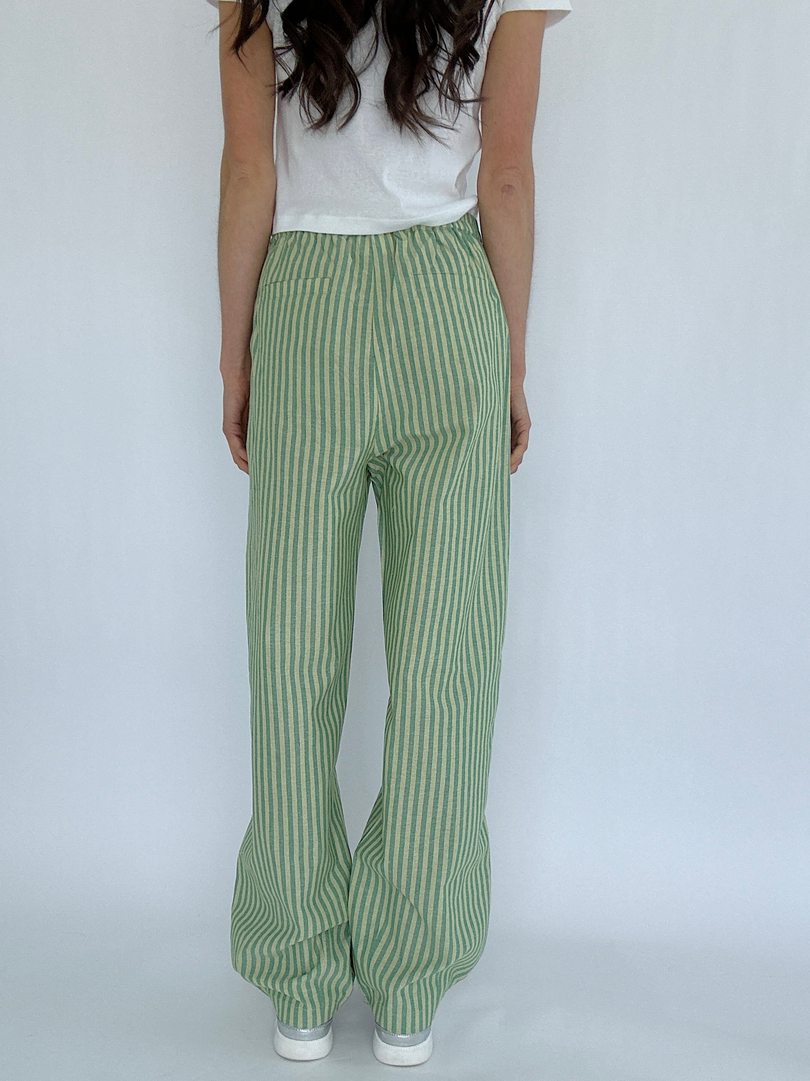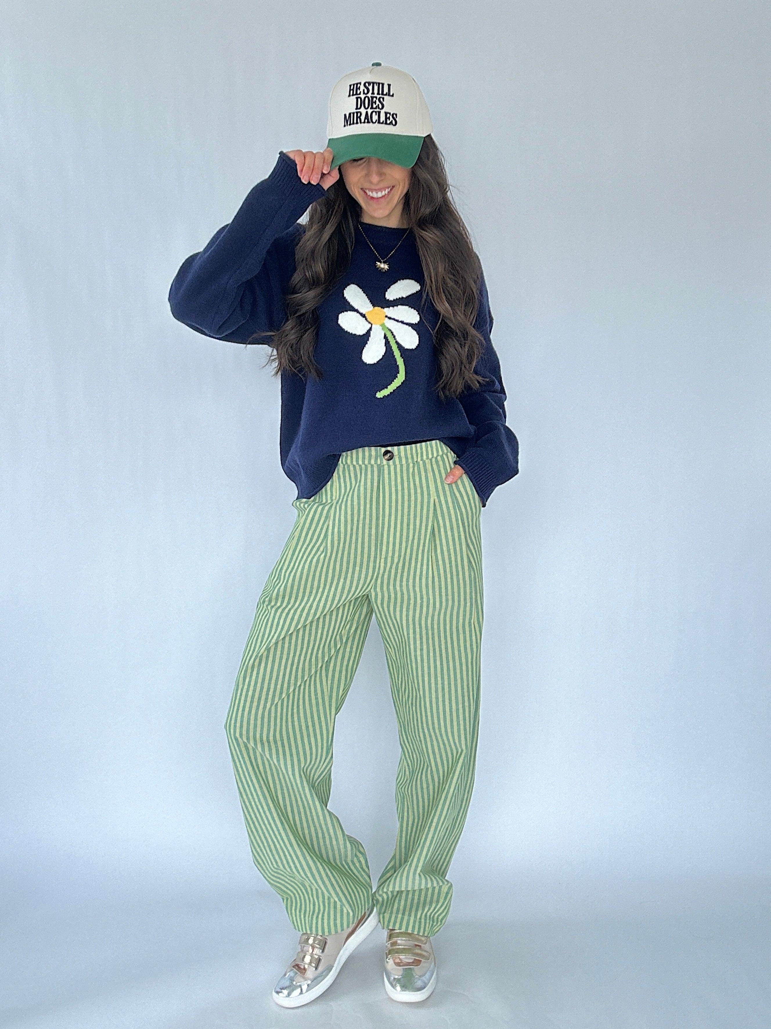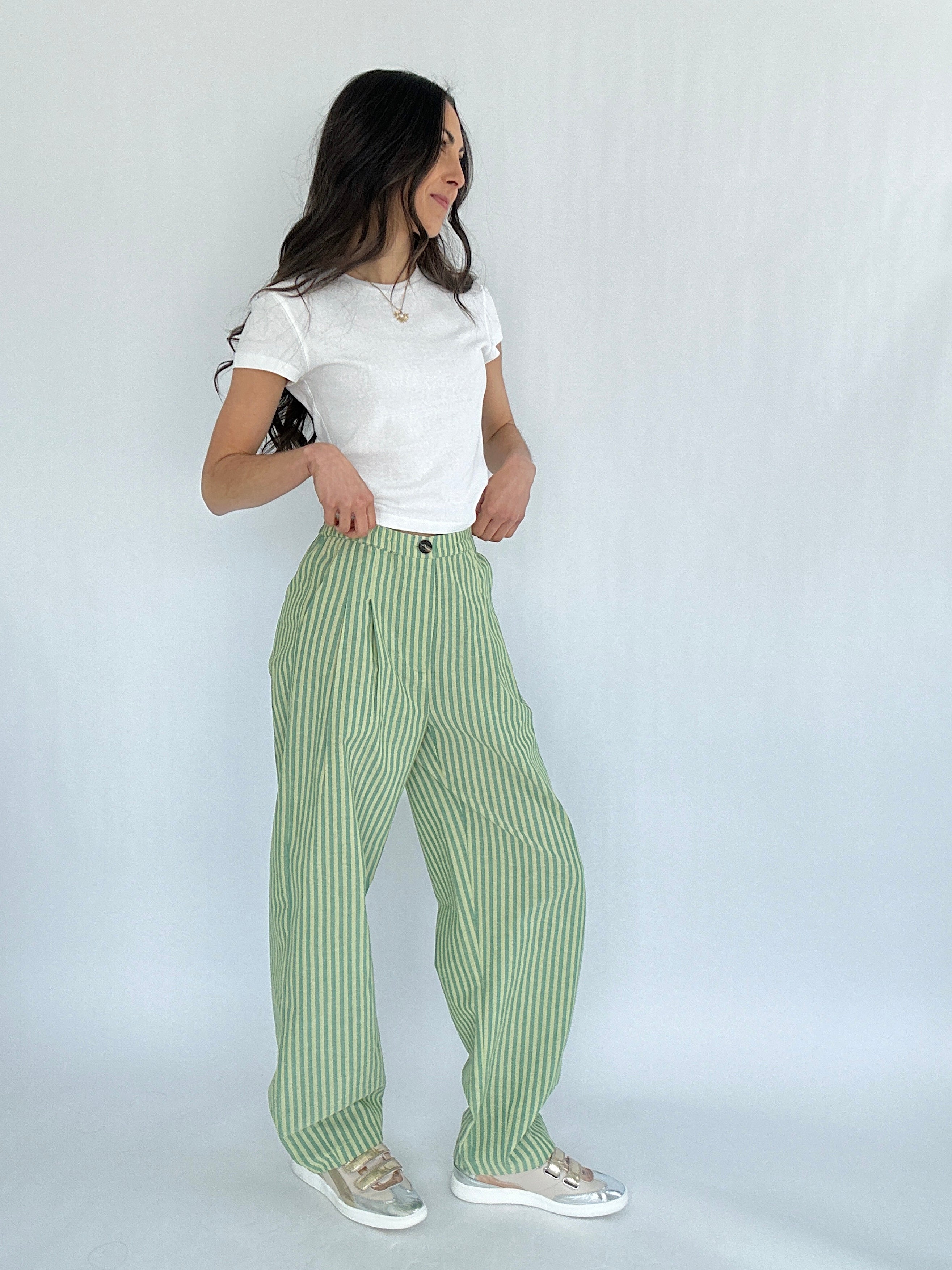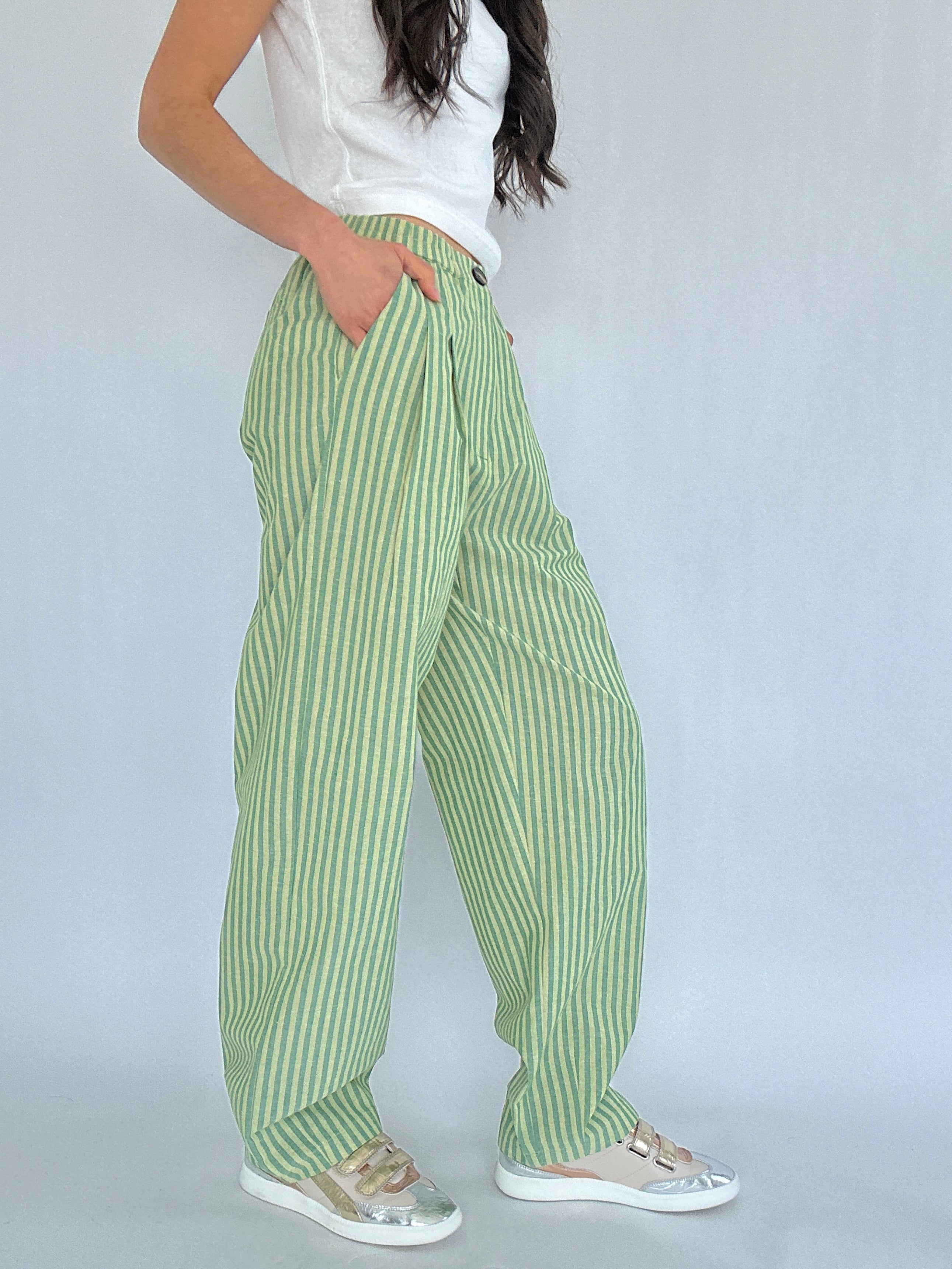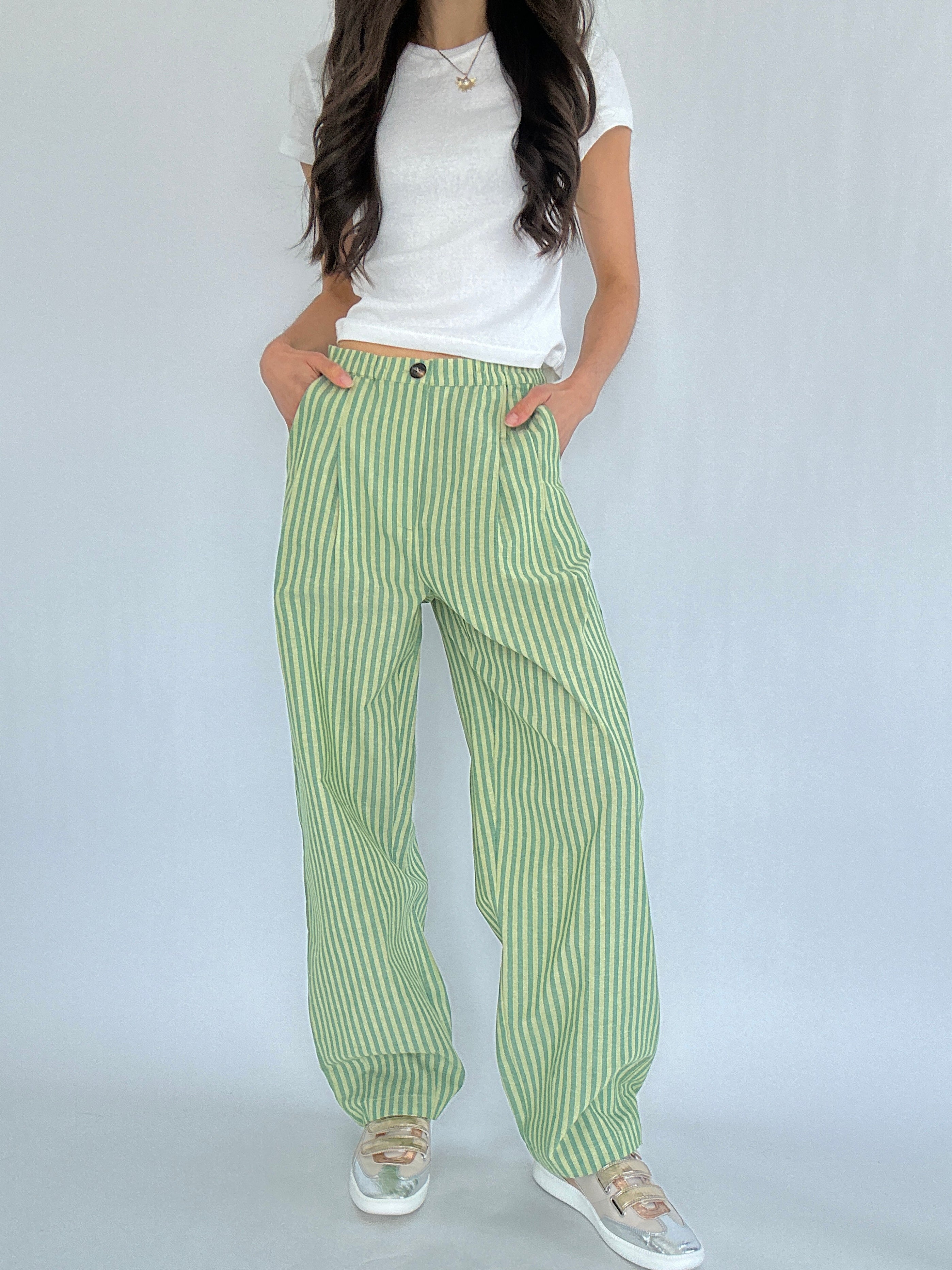 From brunch dates and weekend strolls to casual office days and coffee meetups, the The Tailor Striped Pants are a playful twist on classic wide-leg trousers. With soft stripes, front pleats, and a relaxed silhouette, they’re effortlessly chic while staying comfortable. The elastic back keeps them easy to wear, and the pockets and zipper fly with button closure give them a classic feel. Pair them with cozy sweaters, cute tanks, or tucked-in tees for a look that feels put-together but not overdone. They're light weight and so versatile to carry you through the seasons!