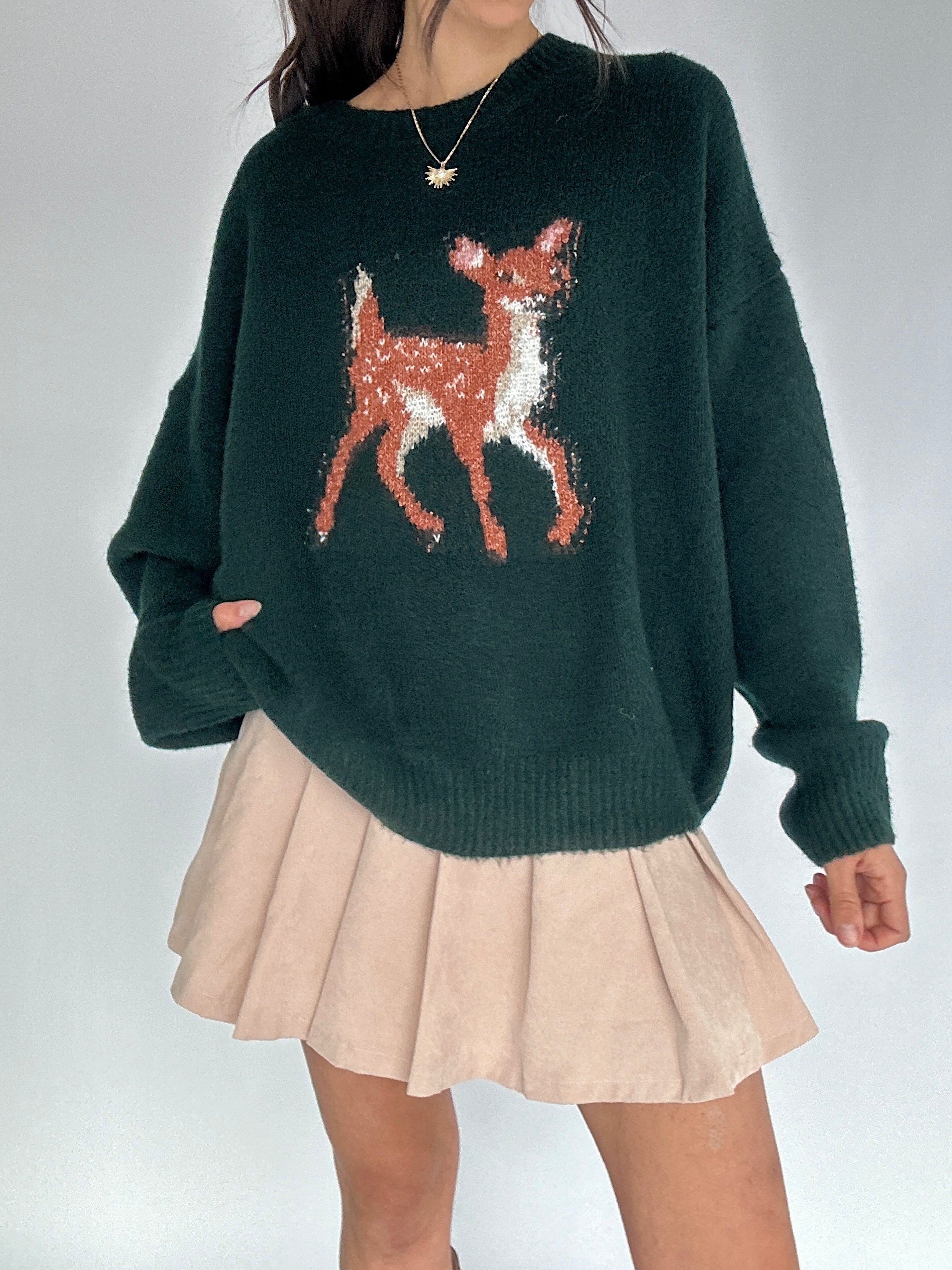 The Fawn Sweater – This forest green knit is giving full winter-wonderland vibes, thanks to the sweetest baby deer graphic front and center. It’s soft, relaxed, and easy to layer—perfect for holiday events, cozy weekends, or any cold day when you want something sweet and fun.