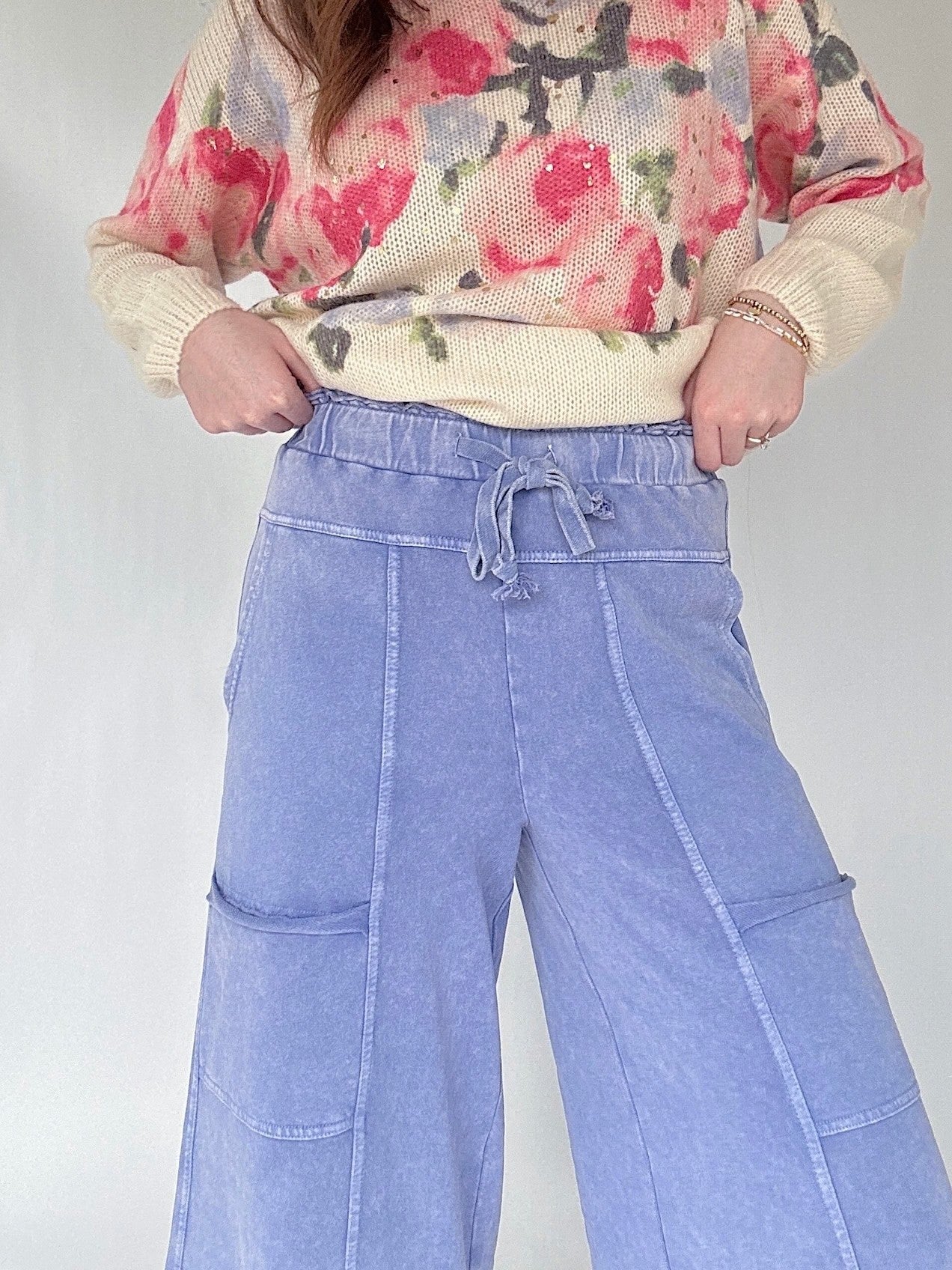 They’re made from soft, mineral-washed terry knit for that broken-in feel right from the start. The wide leg cut gives them an easy, flowy fit, while the exposed seams and cargo-style pockets add just the right amount of detail. And thanks to the elastic waistband with an adjustable drawstring, they’ll stay comfy no matter how you wear them.