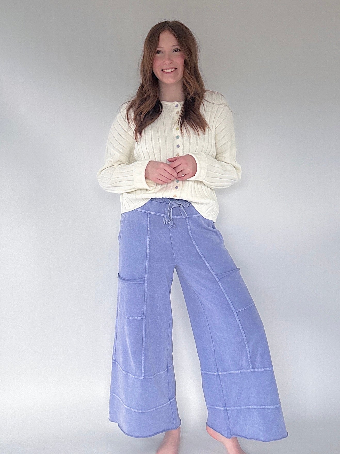 Whether you're catching a flight, running errands, or just hanging out at home, the Traveller Wide Leg Pants are up for anything! This best selling style is now available in a misty periwinkle blue—bringing a fun pop of color to your everyday wardrobe!