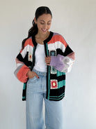 Perfect for cozy nights in, coffee shop hangs, or adding a playful pop to your everyday look, the Missing Out Chenille Cardigan is a fun layering piece. Made in a soft black chenille knit, it features handmade multicolor granny patches, a mix of striped and checkered patterns, and an oversized balloon sleeve fit that feels as cute as it is comfortable. The open-front design makes it easy to throw on and go!