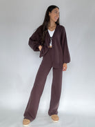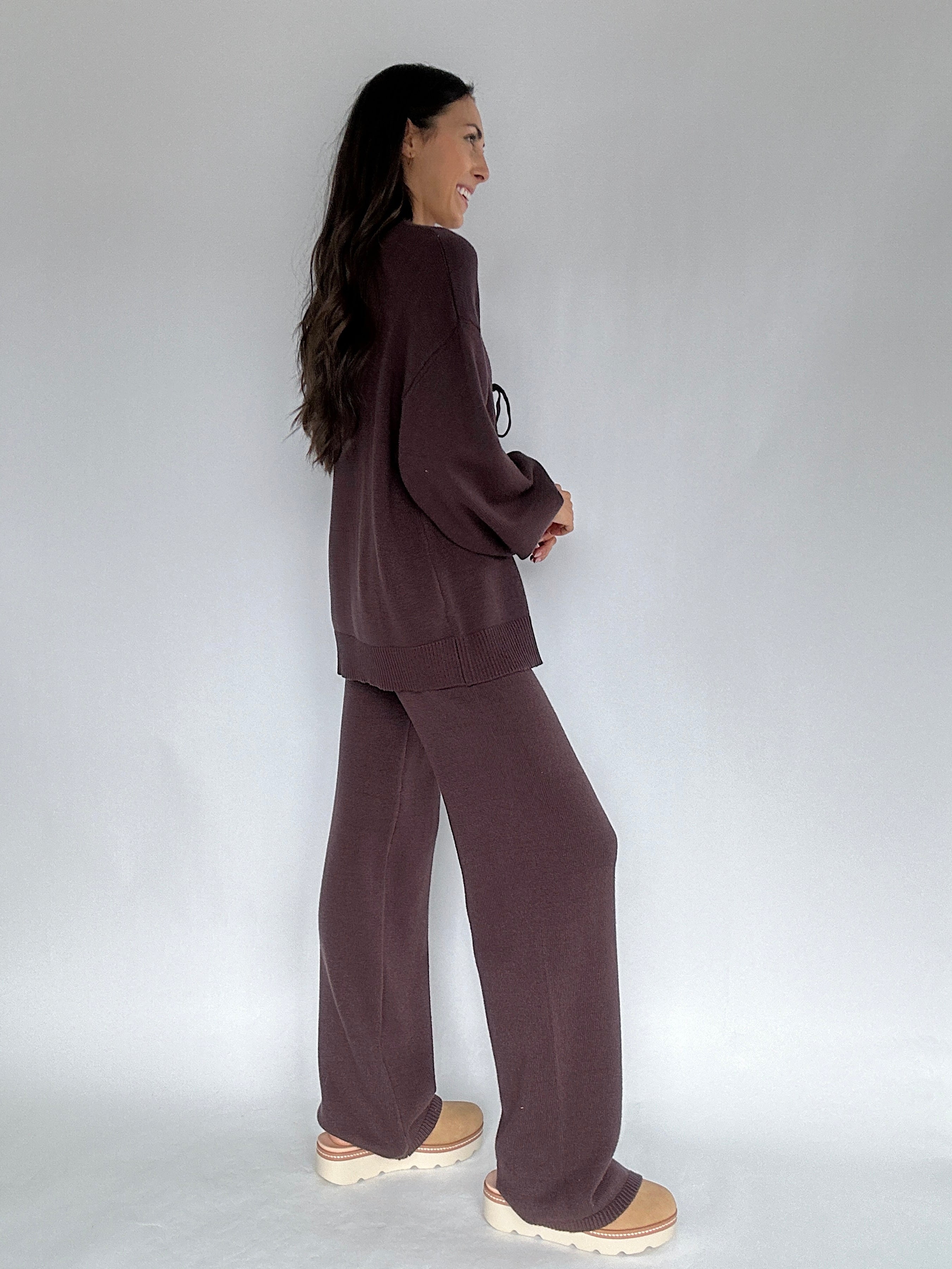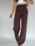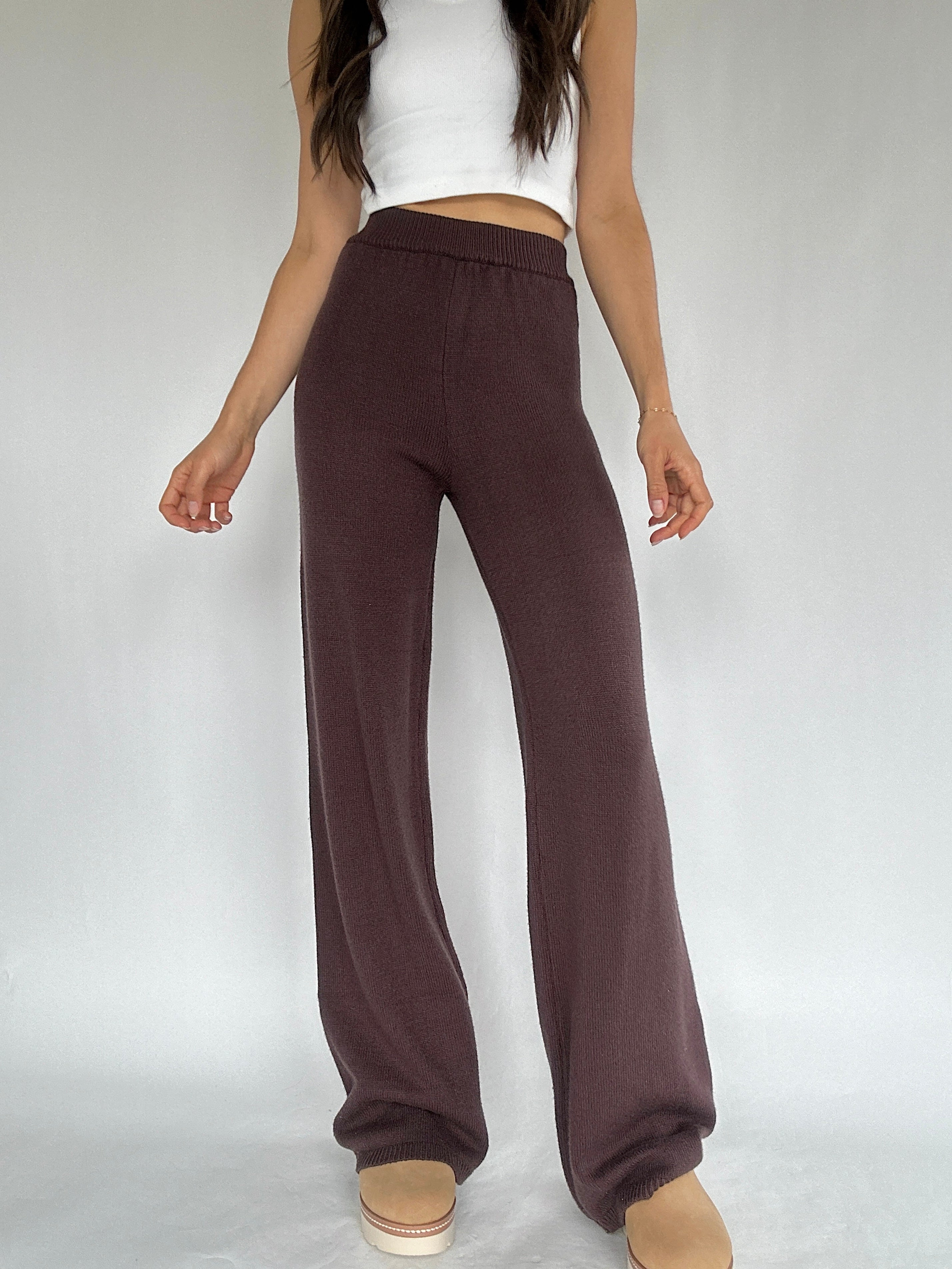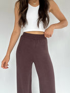 These chocolate brown knit pants feature a ribbed high-waisted waistband, ribbed hems, and a slim-fit flared silhouette. Pair them with the matching Coffee Date Cardigan to make an adorable matching set or wear with your favorite graphic tee, or sweater. Either way, they're perfect for a coffee date!