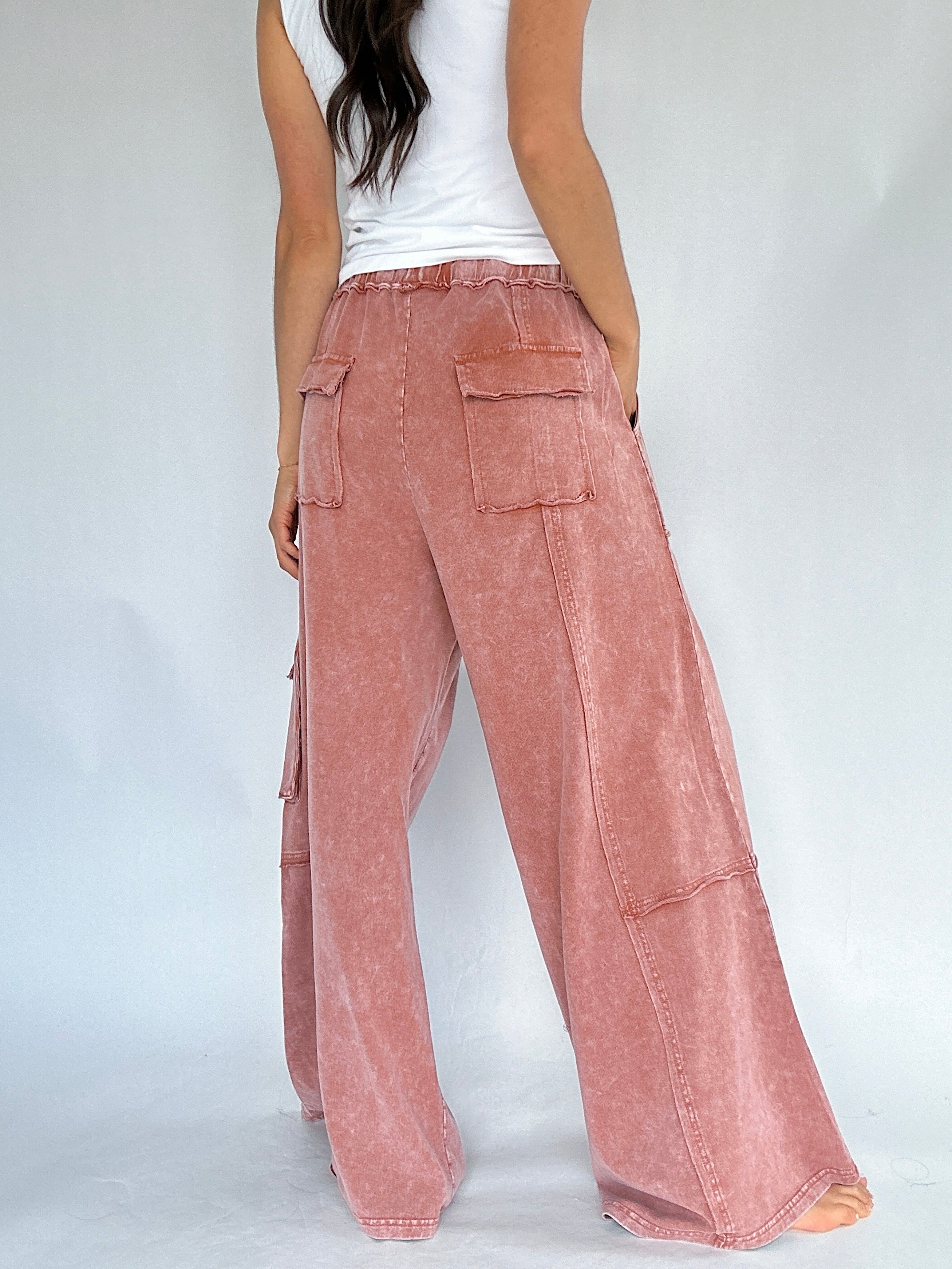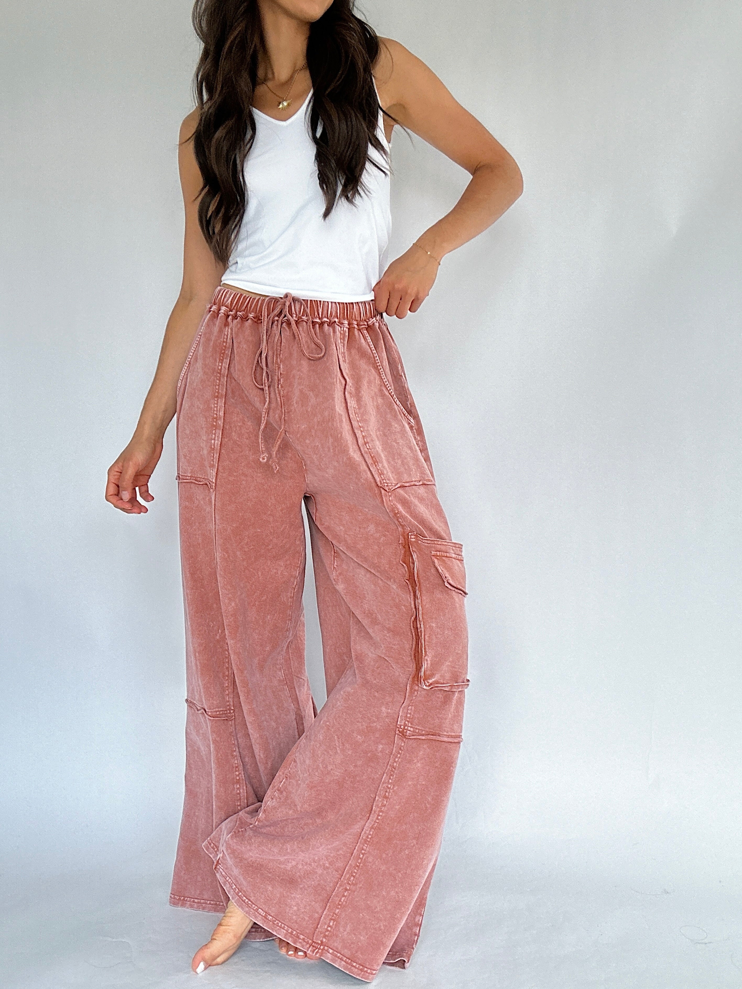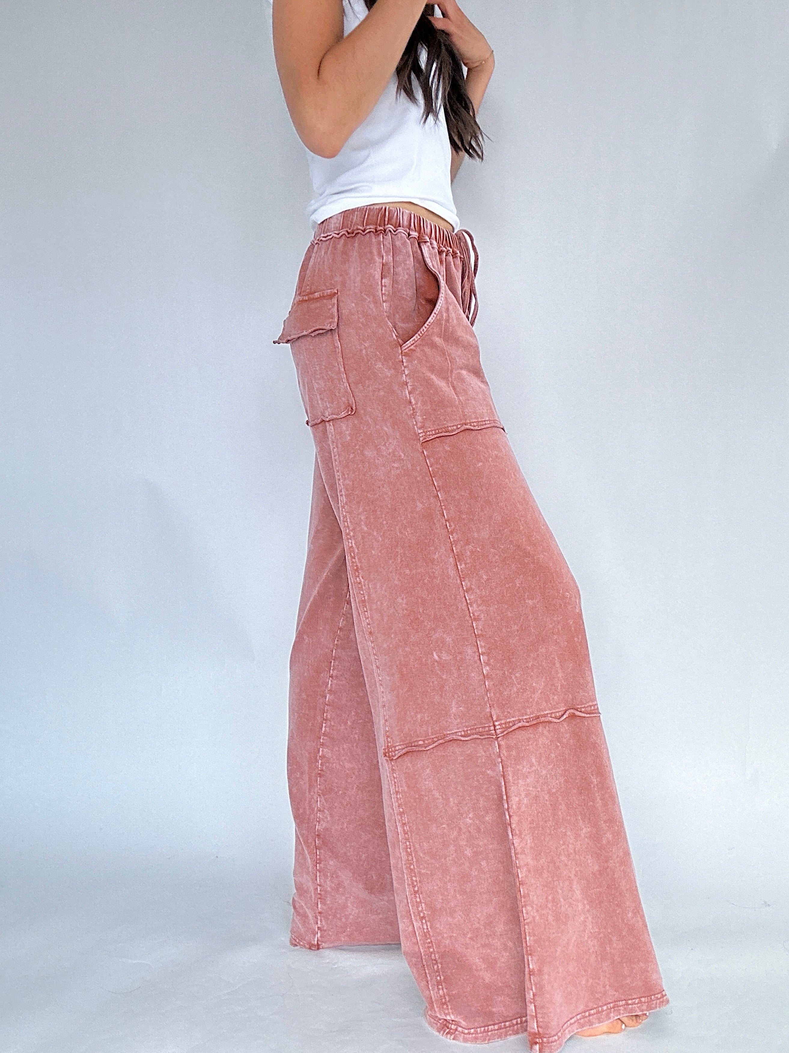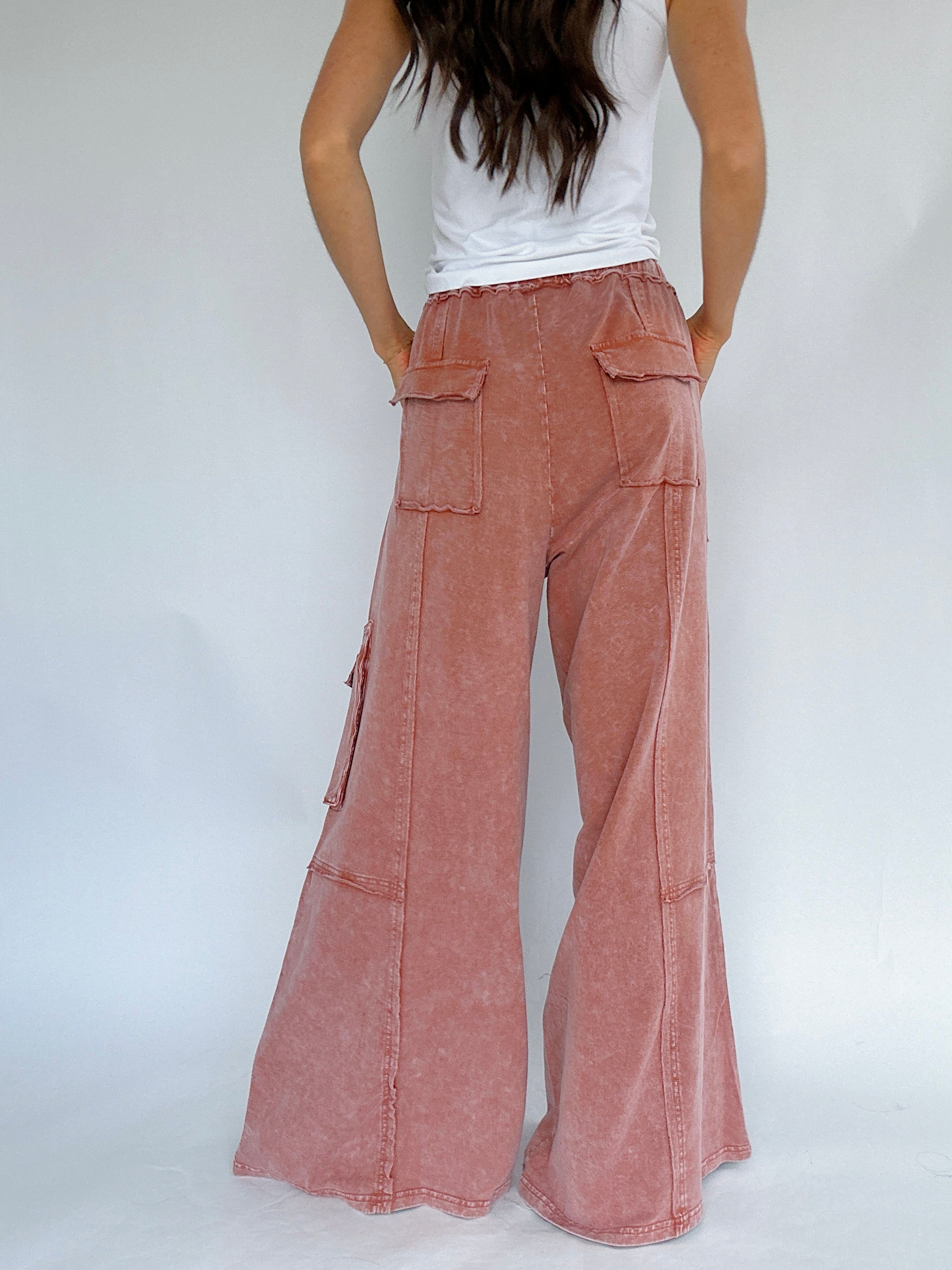 Made for slow mornings, busy weekends, and everything in between—the Miles Ahead Wide Leg Pants are the kind you’ll throw on and end up living in. The mineral wash, relaxed fit and lightweight terry knit make them feel like loungewear, but the raw seams and cargo pockets add just the right amount of style.