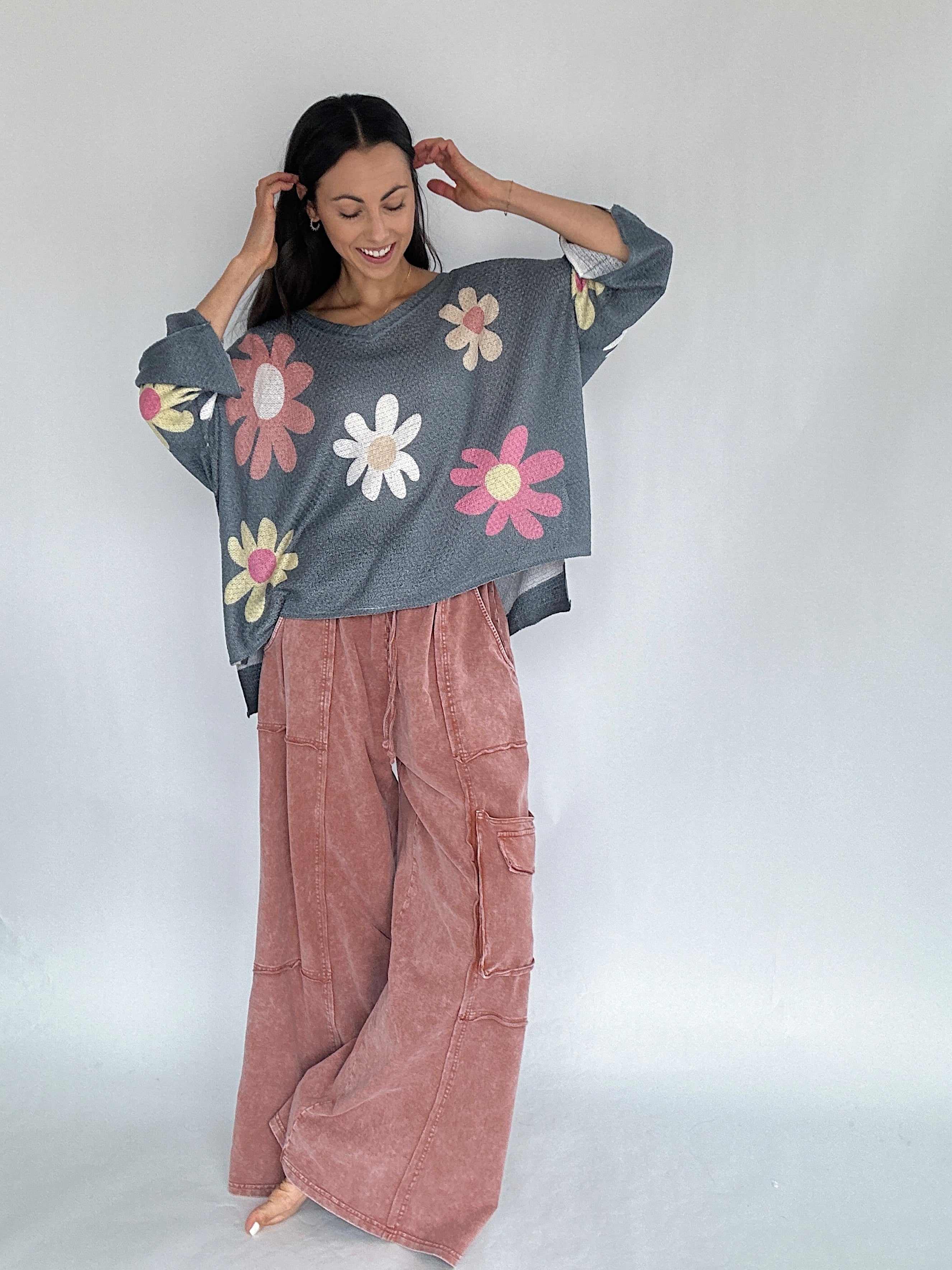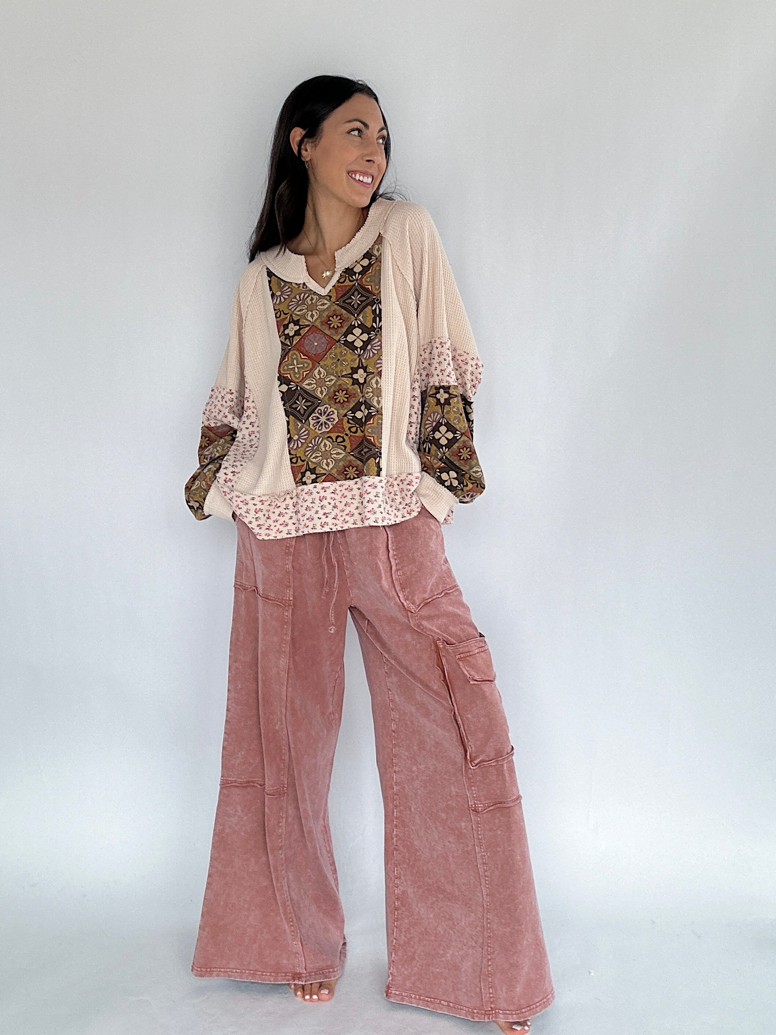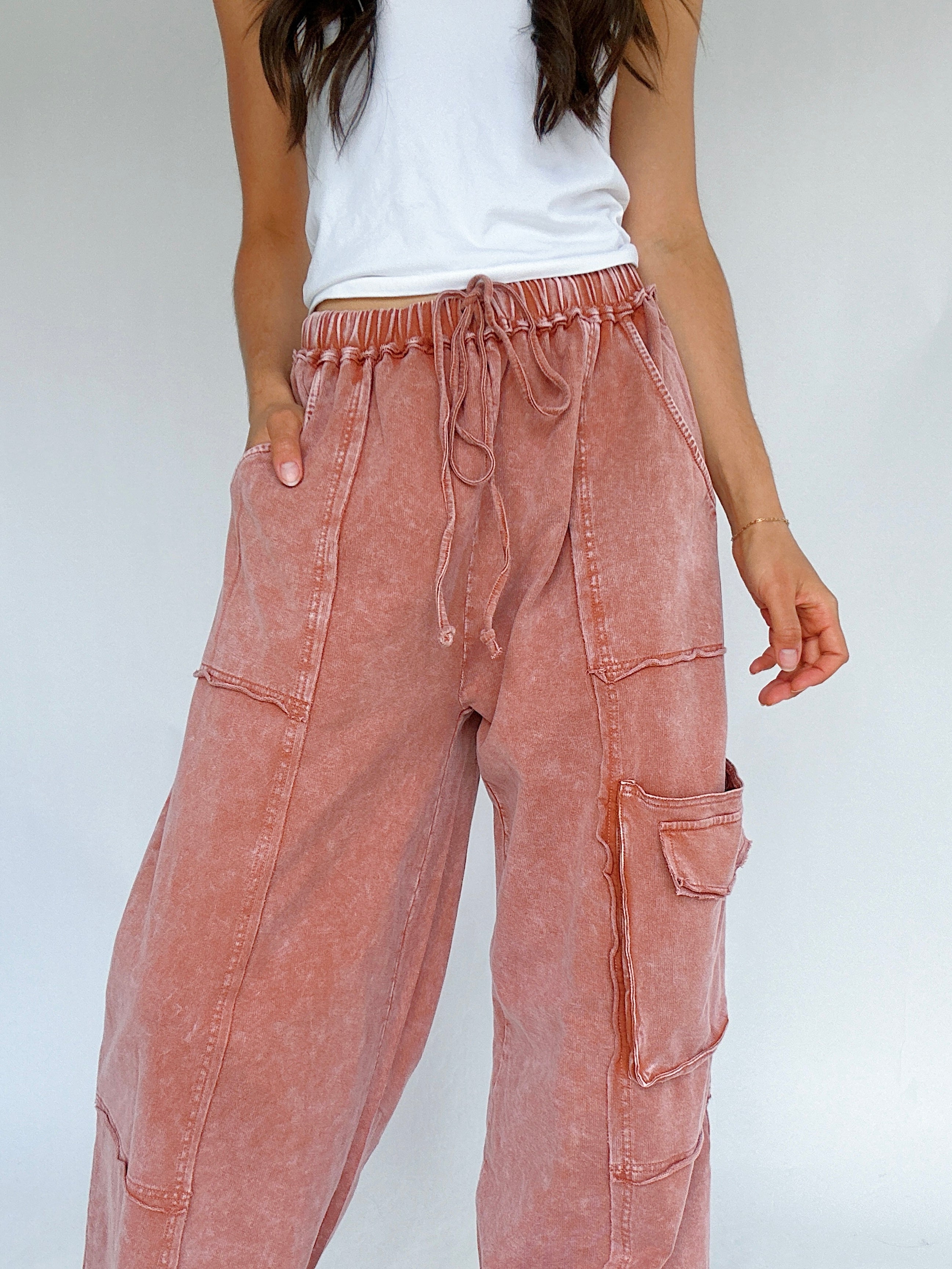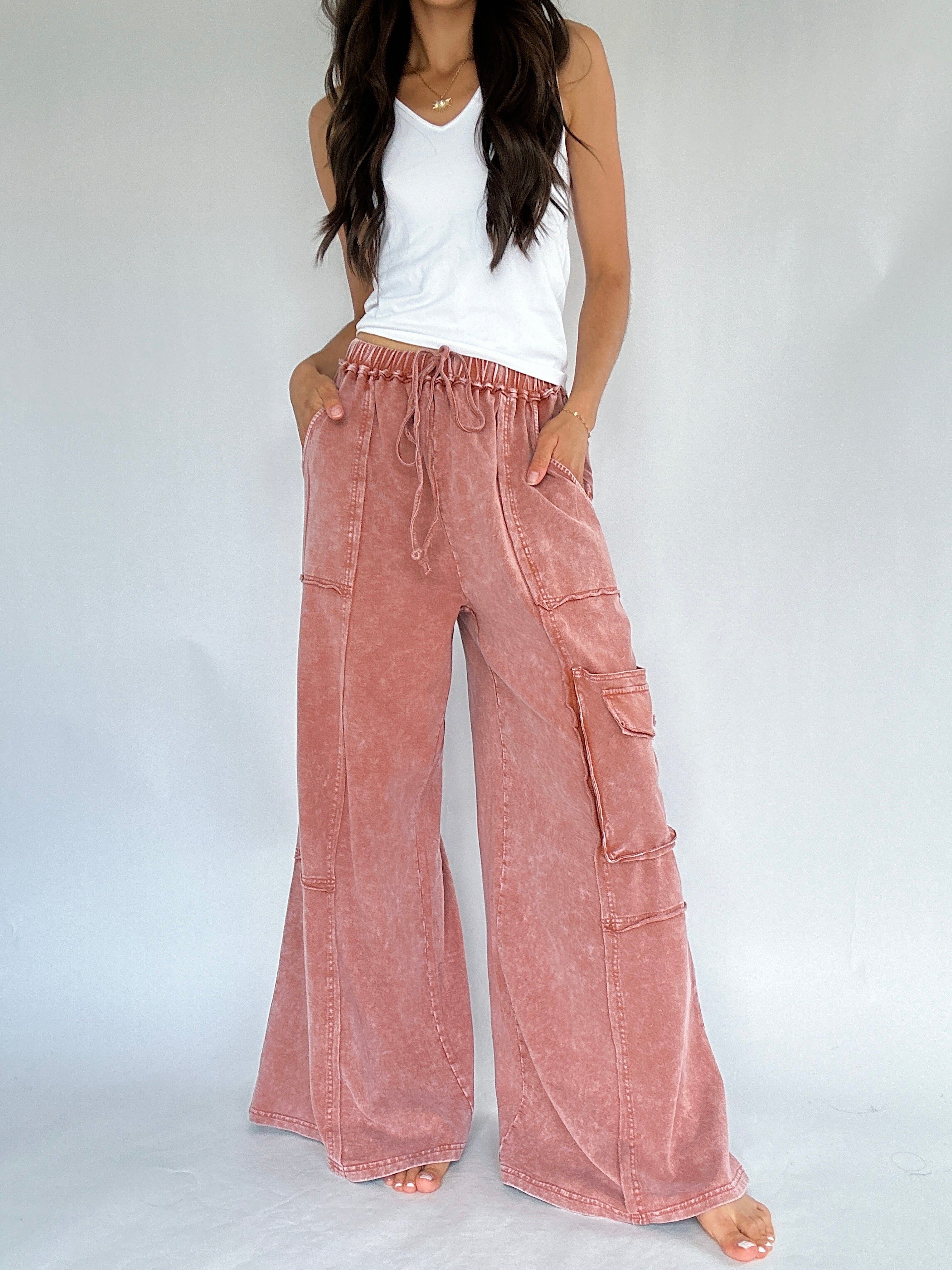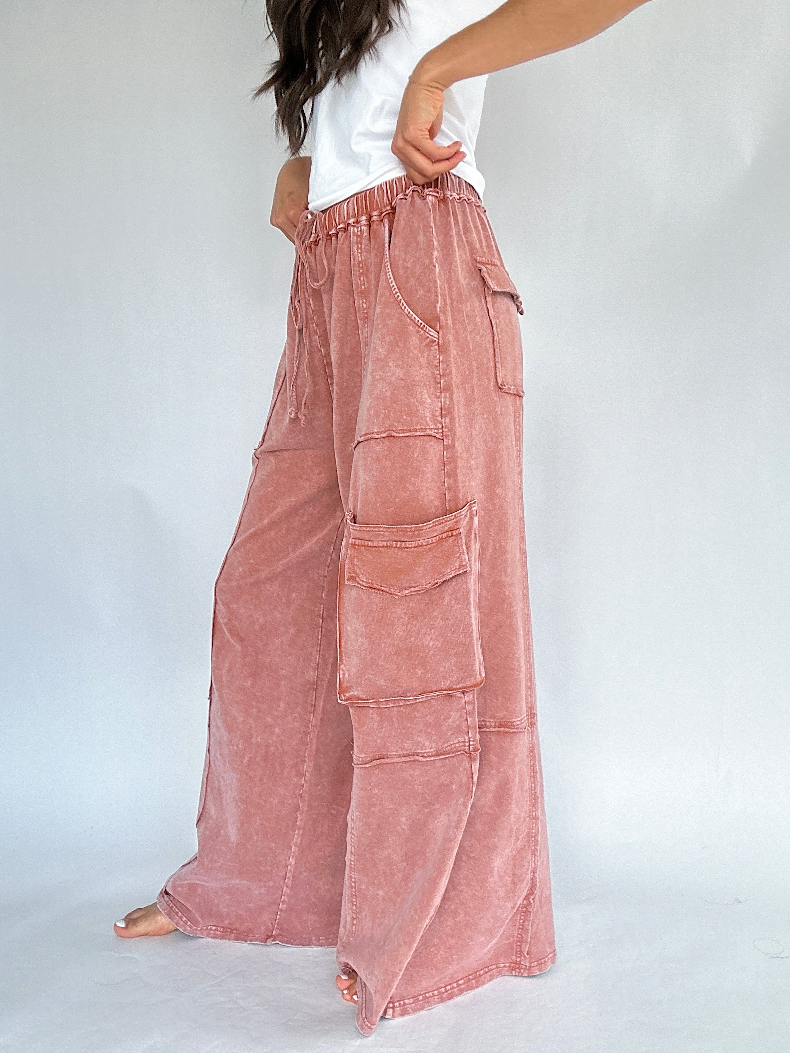 Made for slow mornings, busy weekends, and everything in between—the Miles Ahead Wide Leg Pants are the kind you’ll throw on and end up living in. The mineral wash, relaxed fit and lightweight terry knit make them feel like loungewear, but the raw seams and cargo pockets add just the right amount of style.