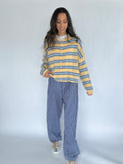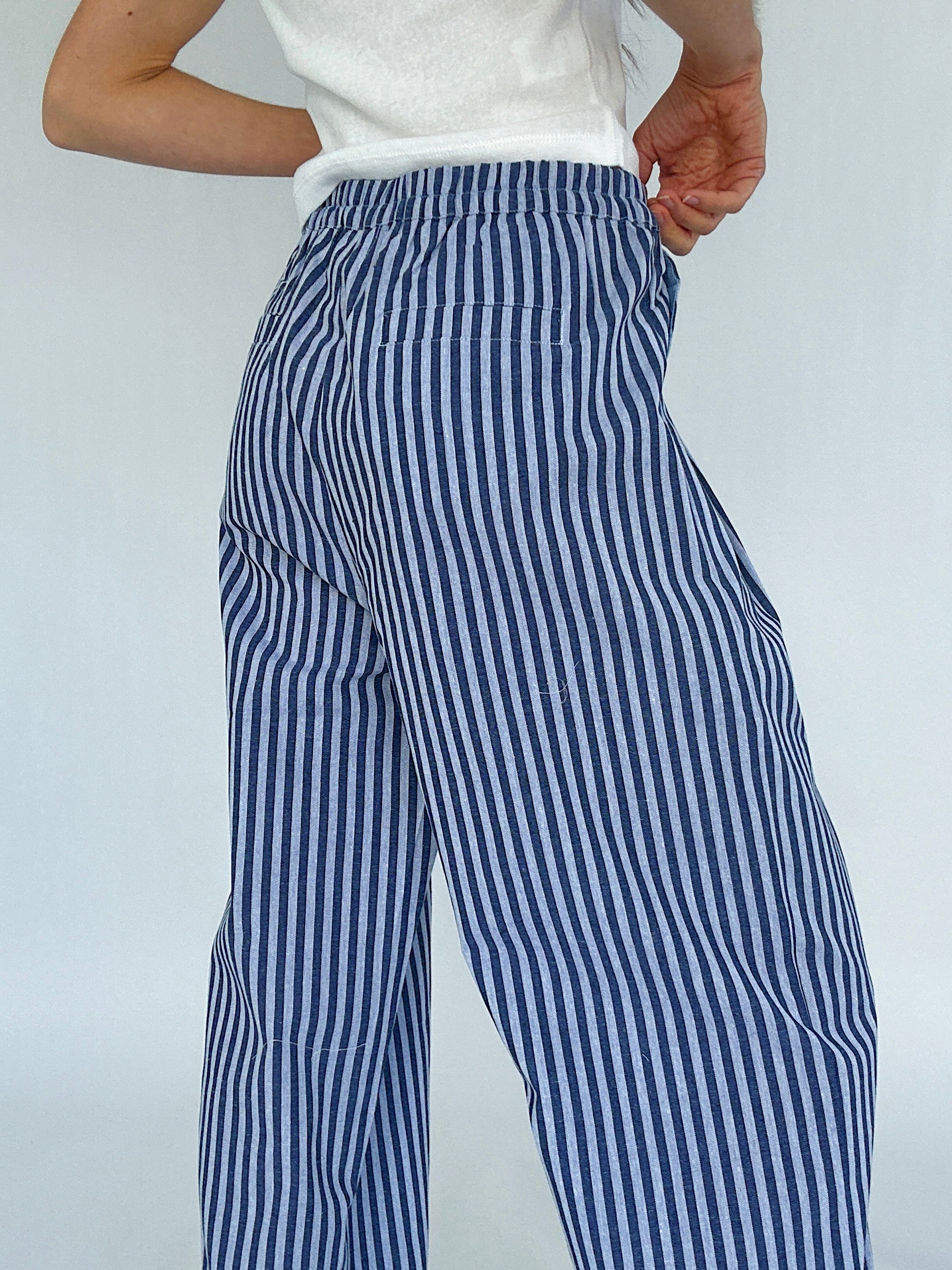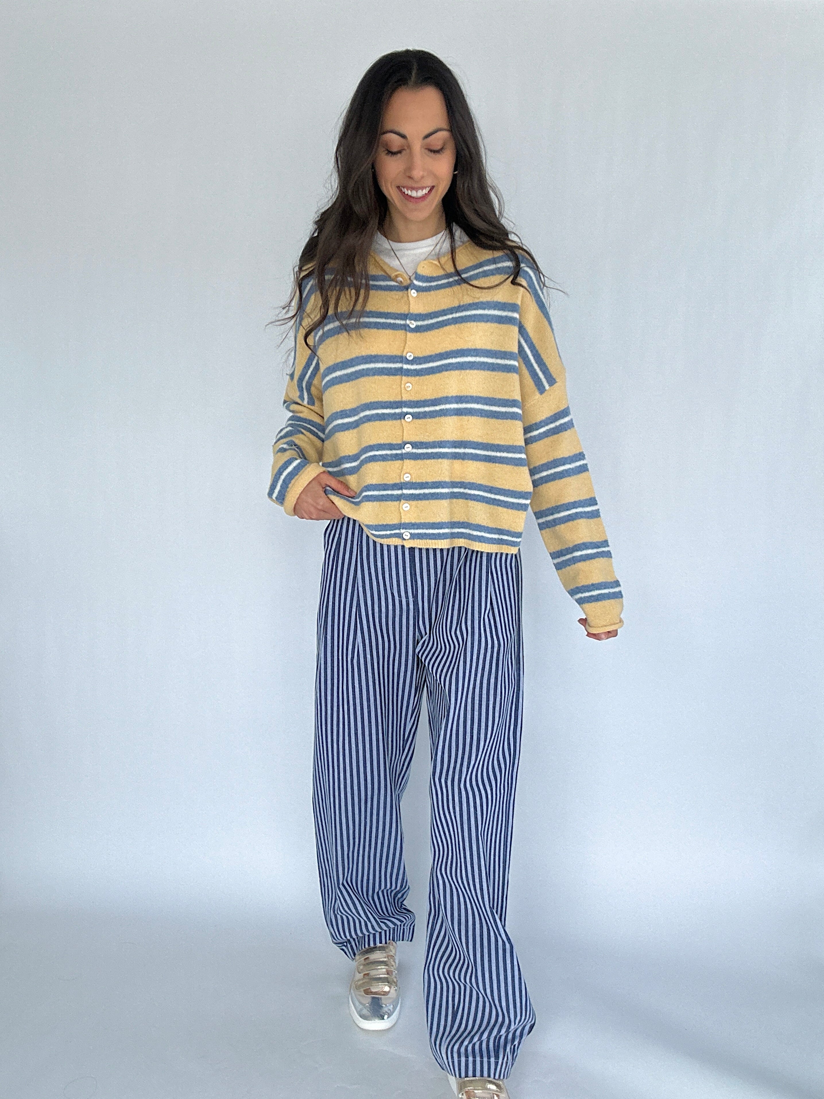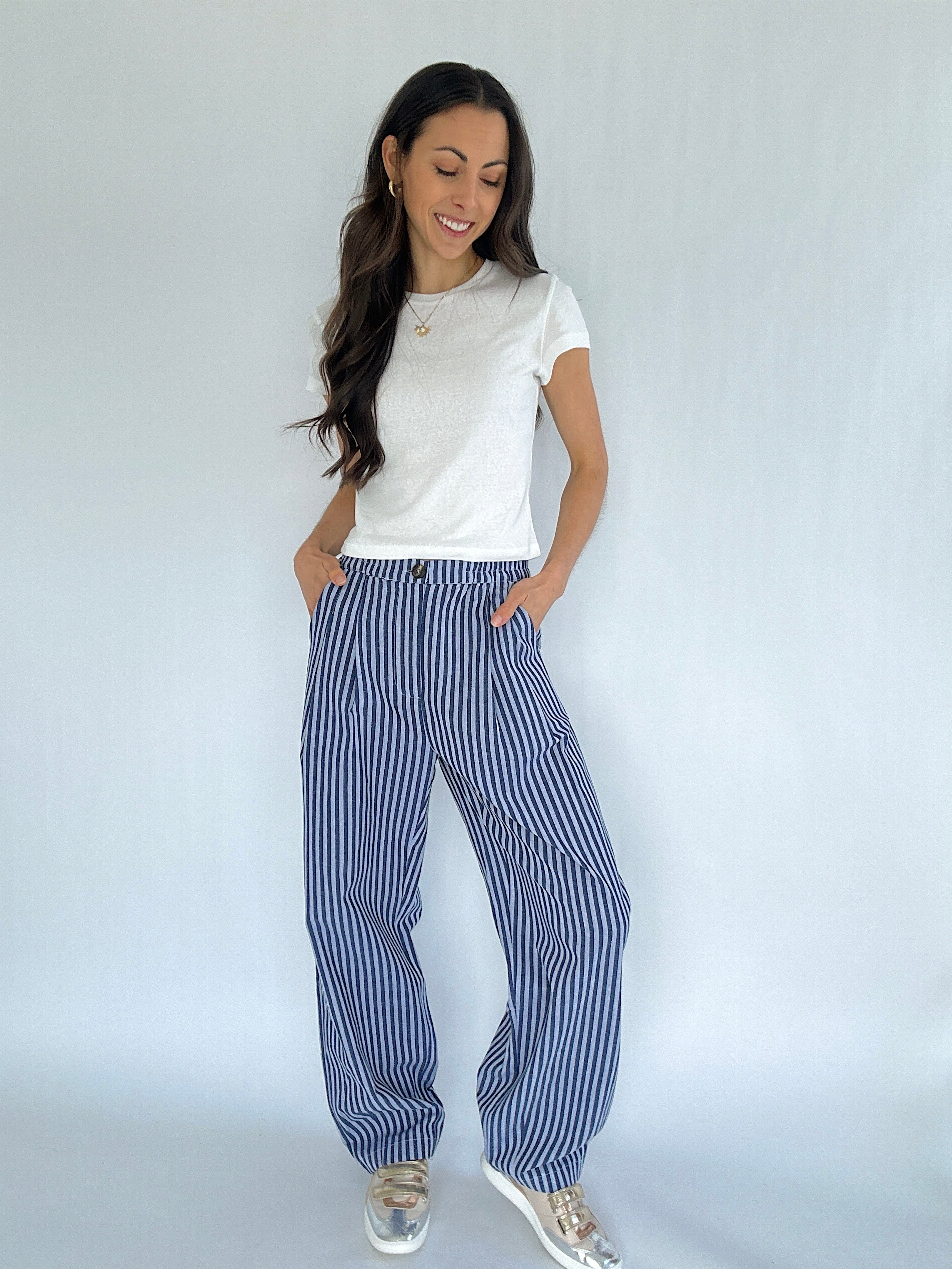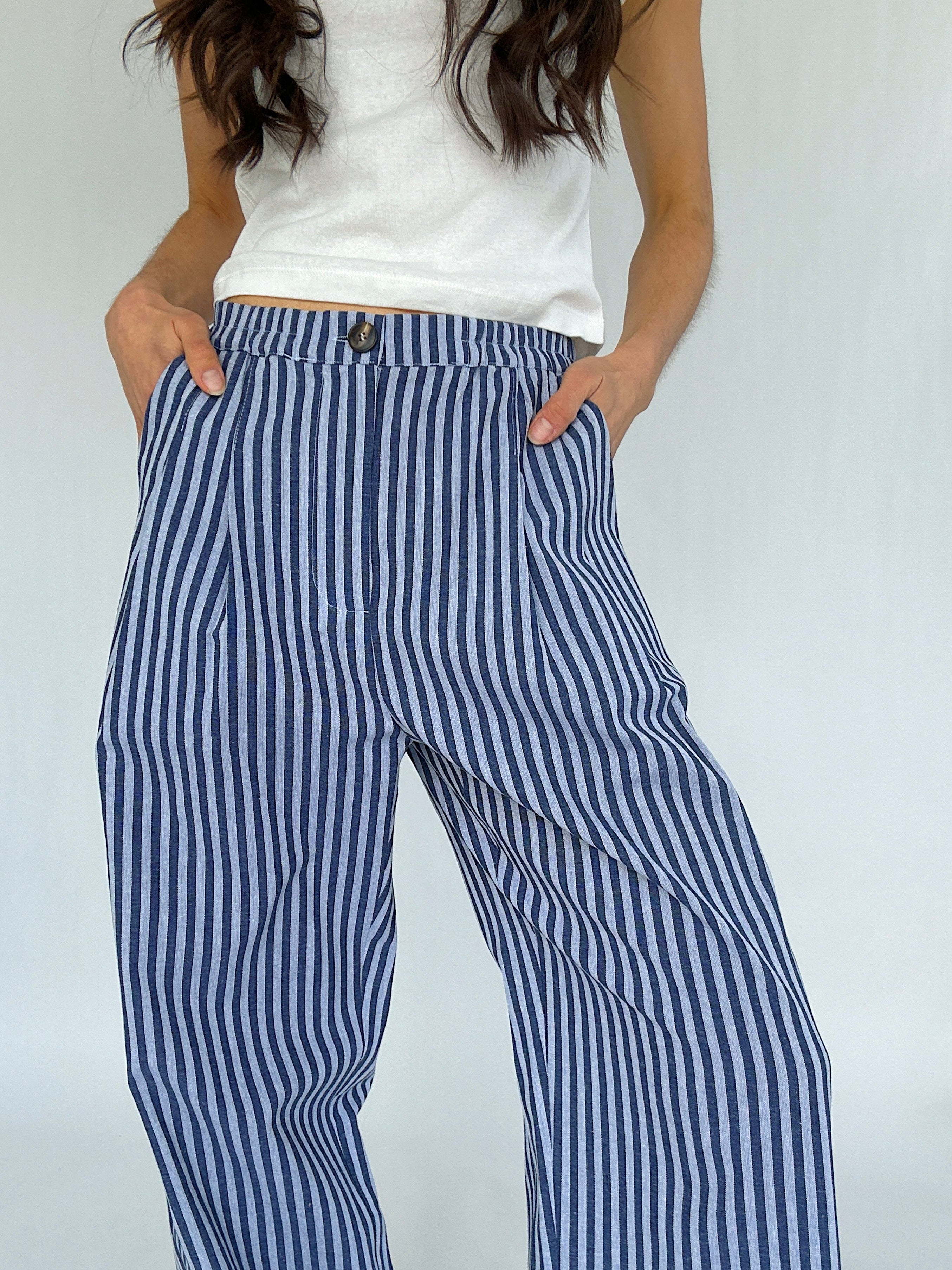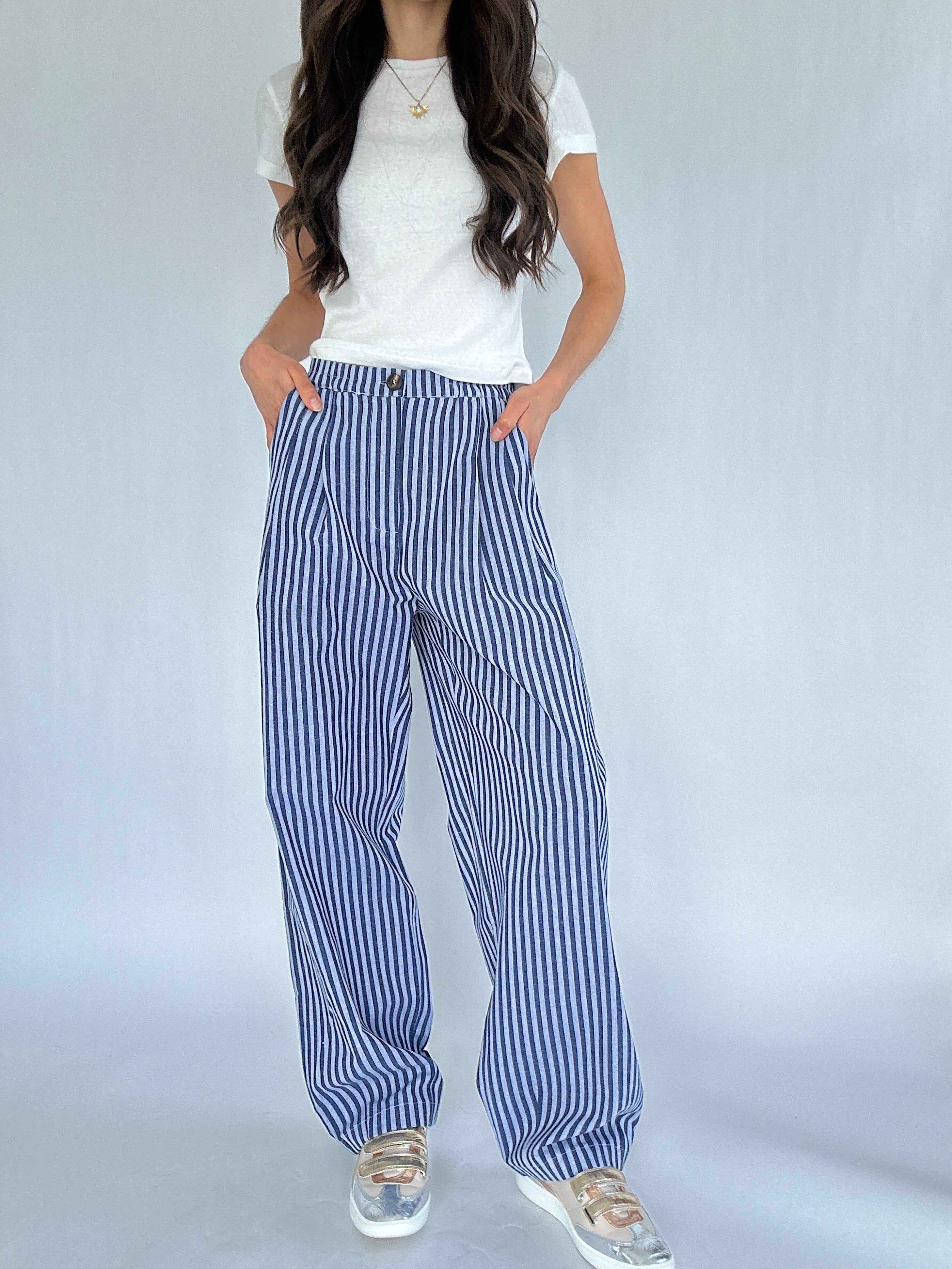 From brunch dates and weekend strolls to casual office days and coffee meetups, the The Tailor Striped Pants are a playful twist on classic wide-leg trousers. With soft stripes, front pleats, and a relaxed silhouette, they’re effortlessly chic while staying comfortable. The elastic back keeps them easy to wear, and the pockets and zipper fly with button closure give them a classic feel. Pair them with cozy sweaters, cute tanks, or tucked-in tees for a look that feels put-together but not overdone. They're light weight and so versatile to carry you through the seasons!