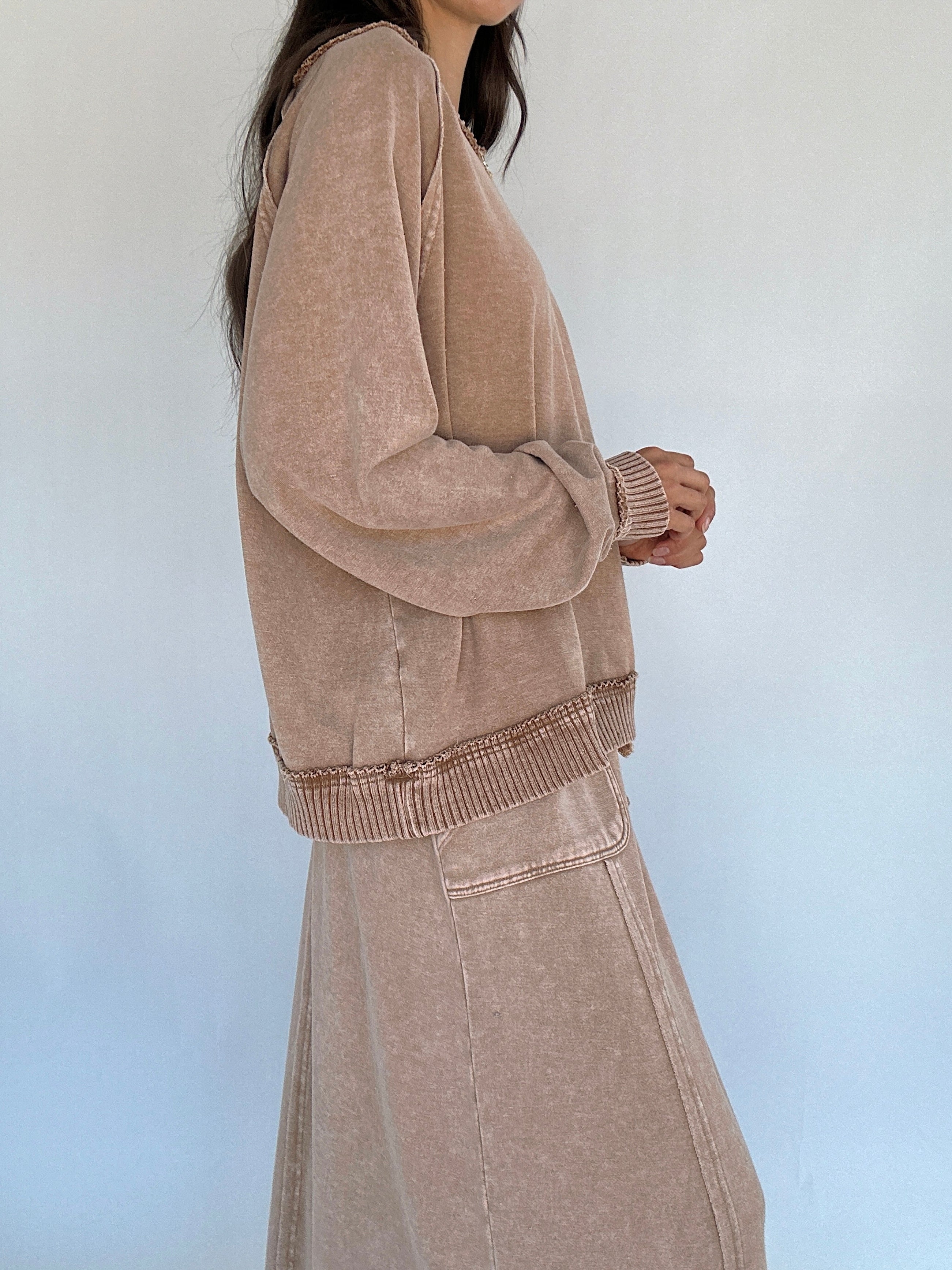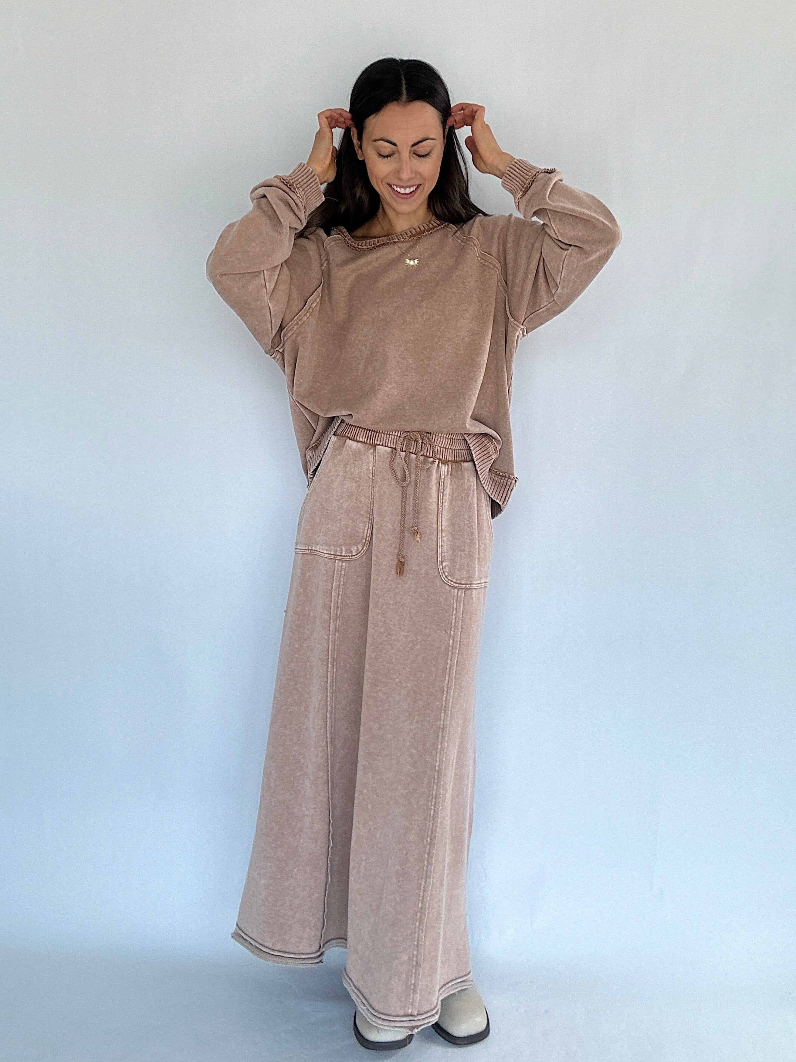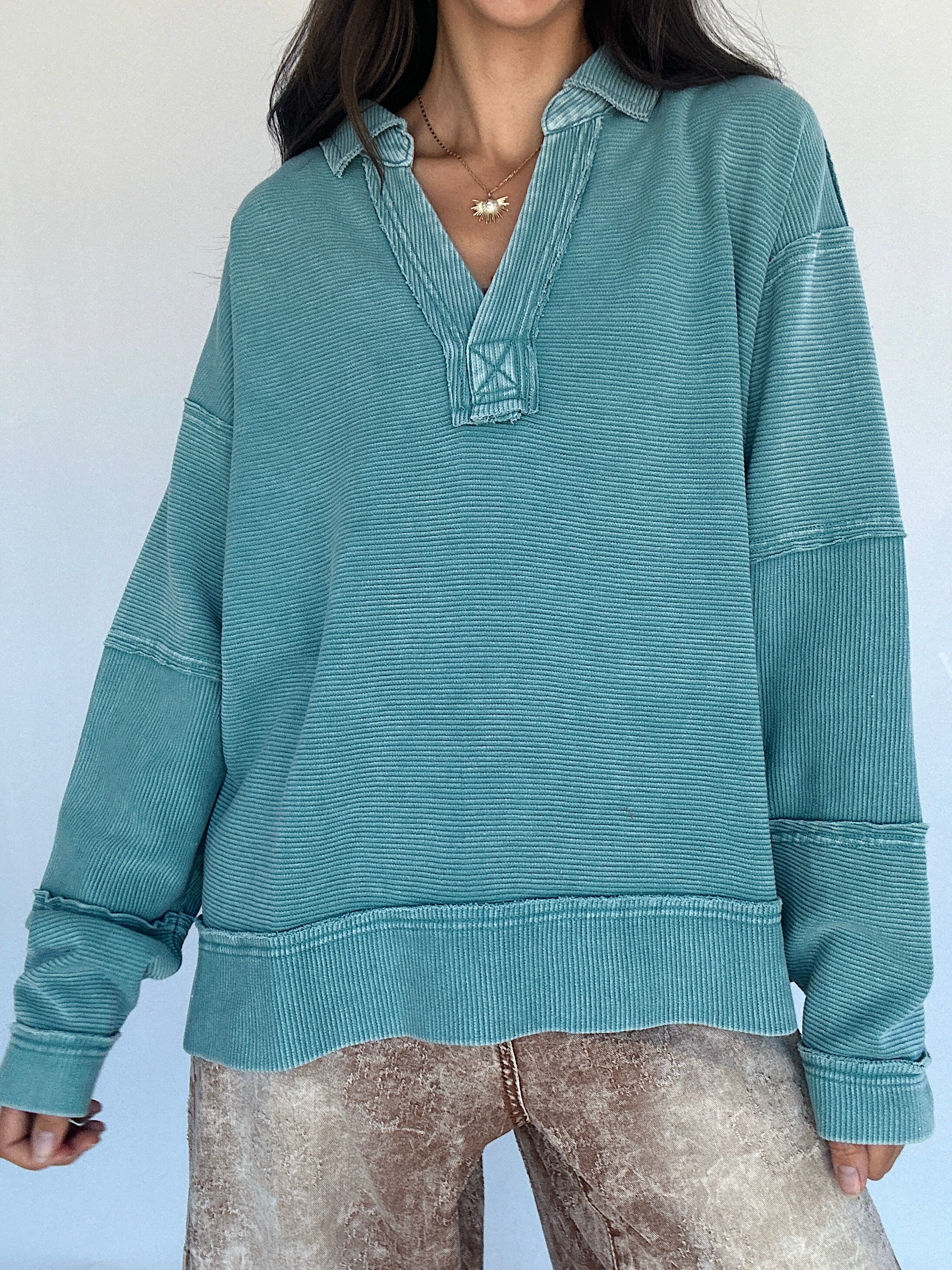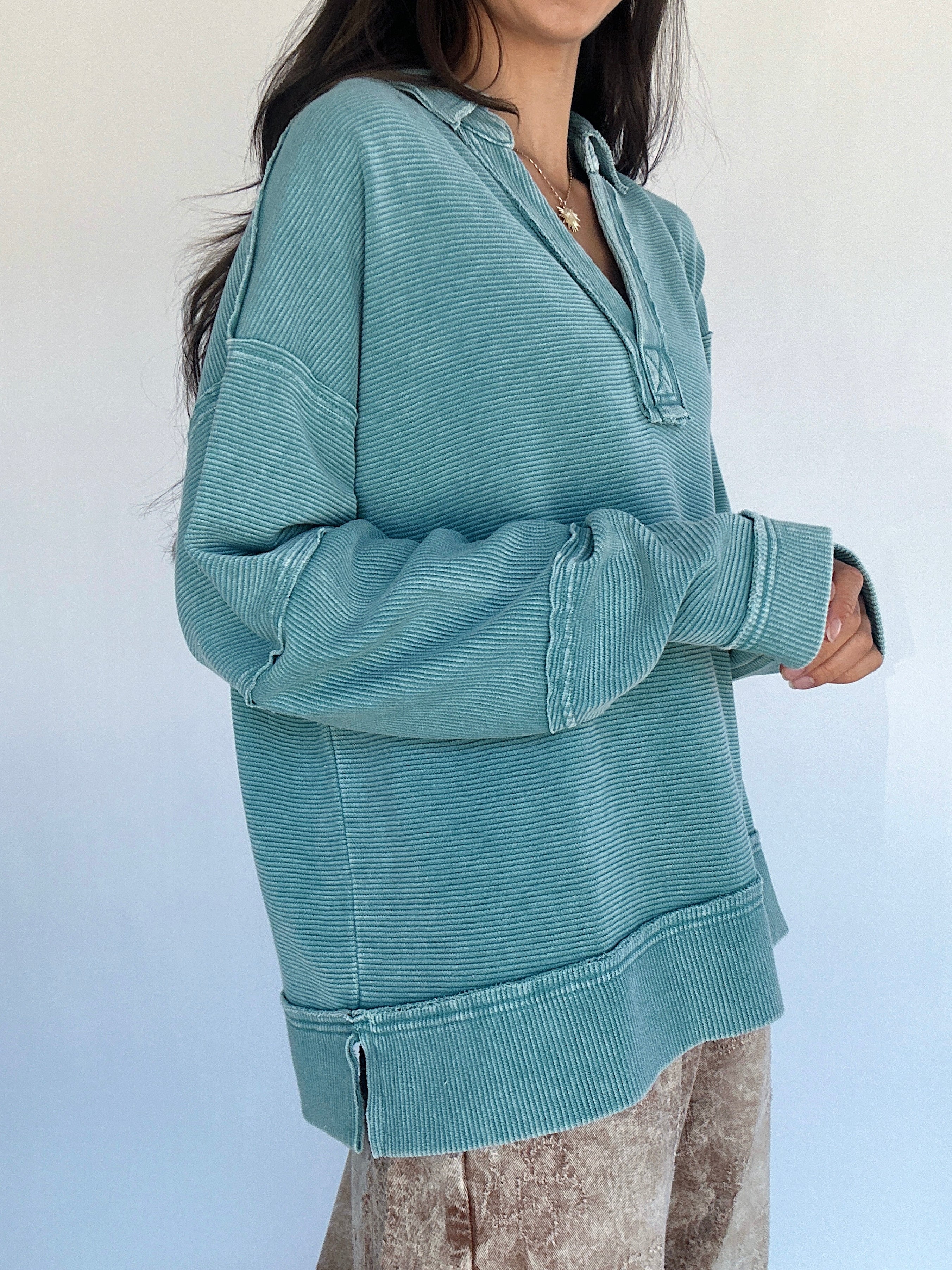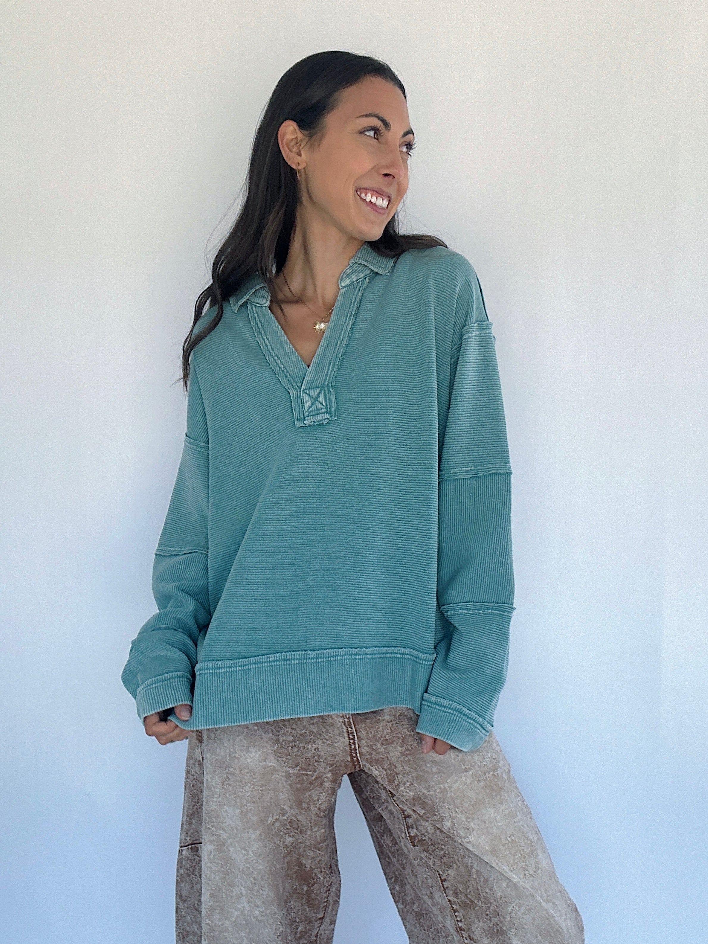 Jennie Ribbed Wide Leg Pants - Faded Teal