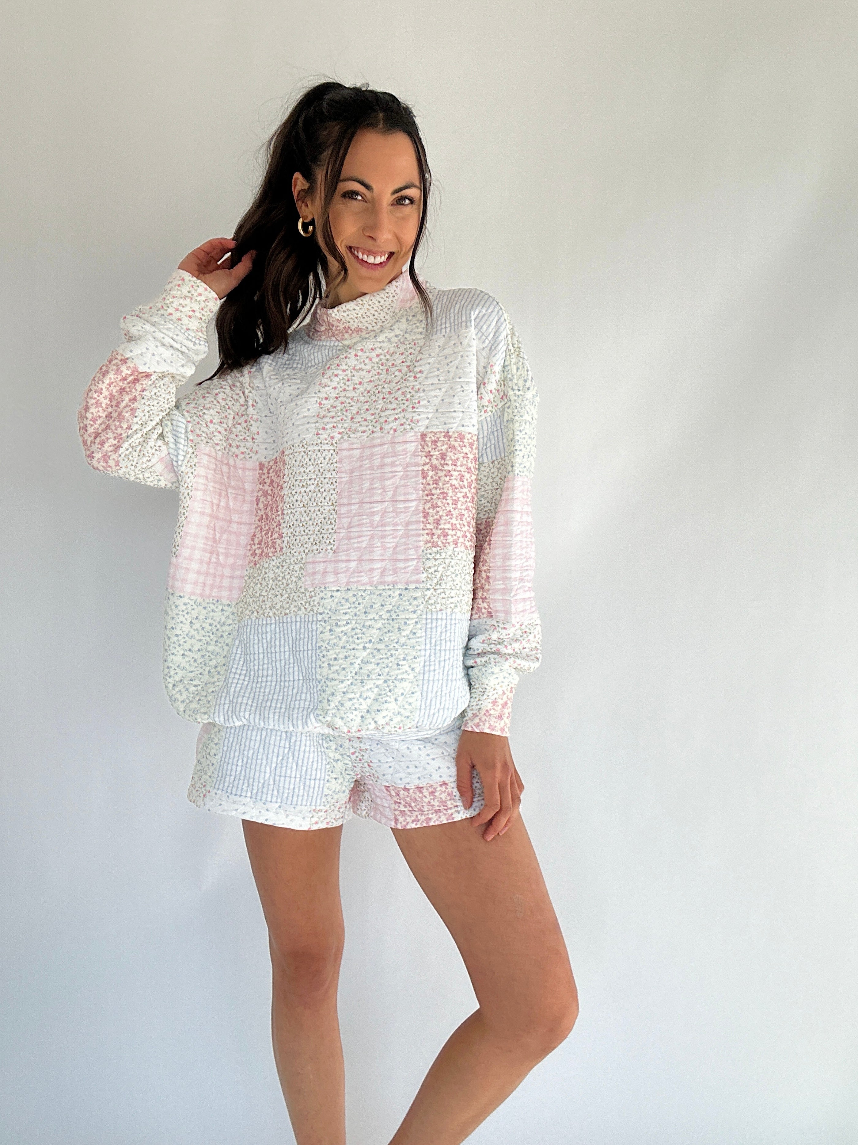 Perfect for brunch, weekend errands, or just cozying up with a latte, this pullover is your new go-to for effortless style. The Mellie Quilted Mockneck is covered in dreamy pastel florals, features a comfy oversized fit, and has just enough quilted texture to make it feel extra special. Pair it with the matching Mellie Quilted Shorts for an adorable set, or throw it on with jeans, leggings, or wide-leg sweatpants for an easy, elevated look.