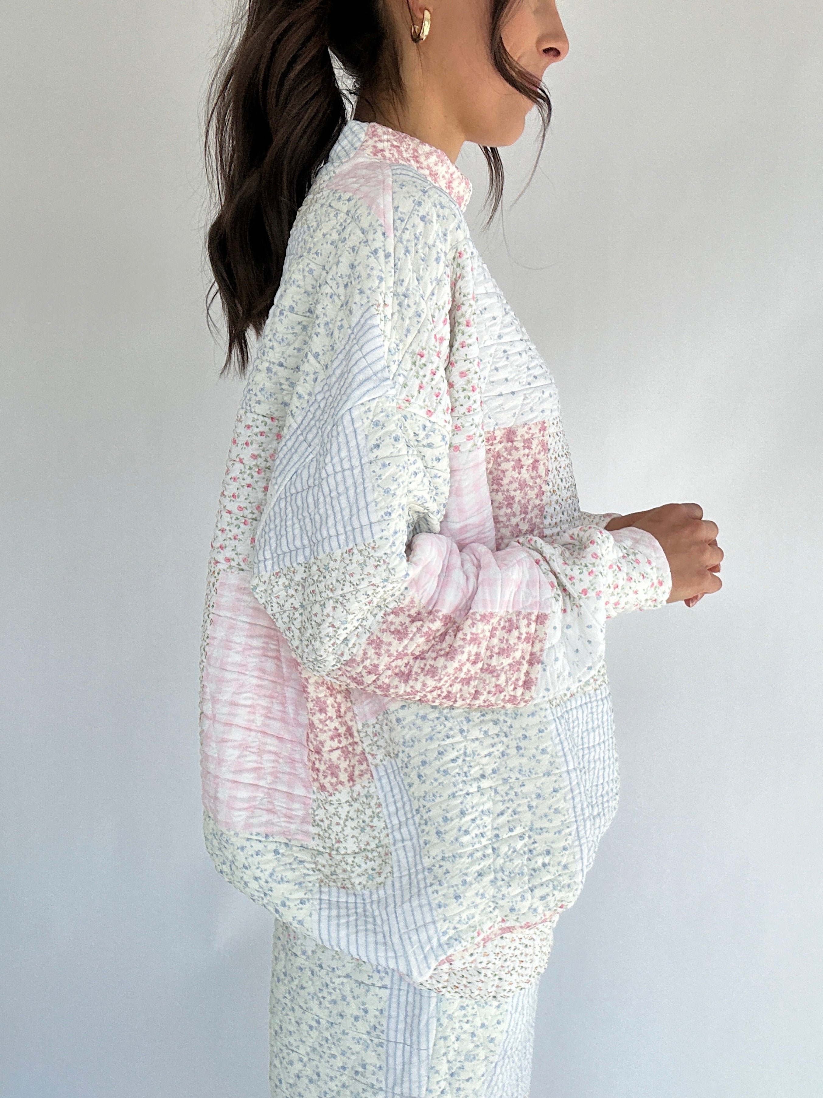 ✶ Quilted pastel floral fabric that’s soft and cozy