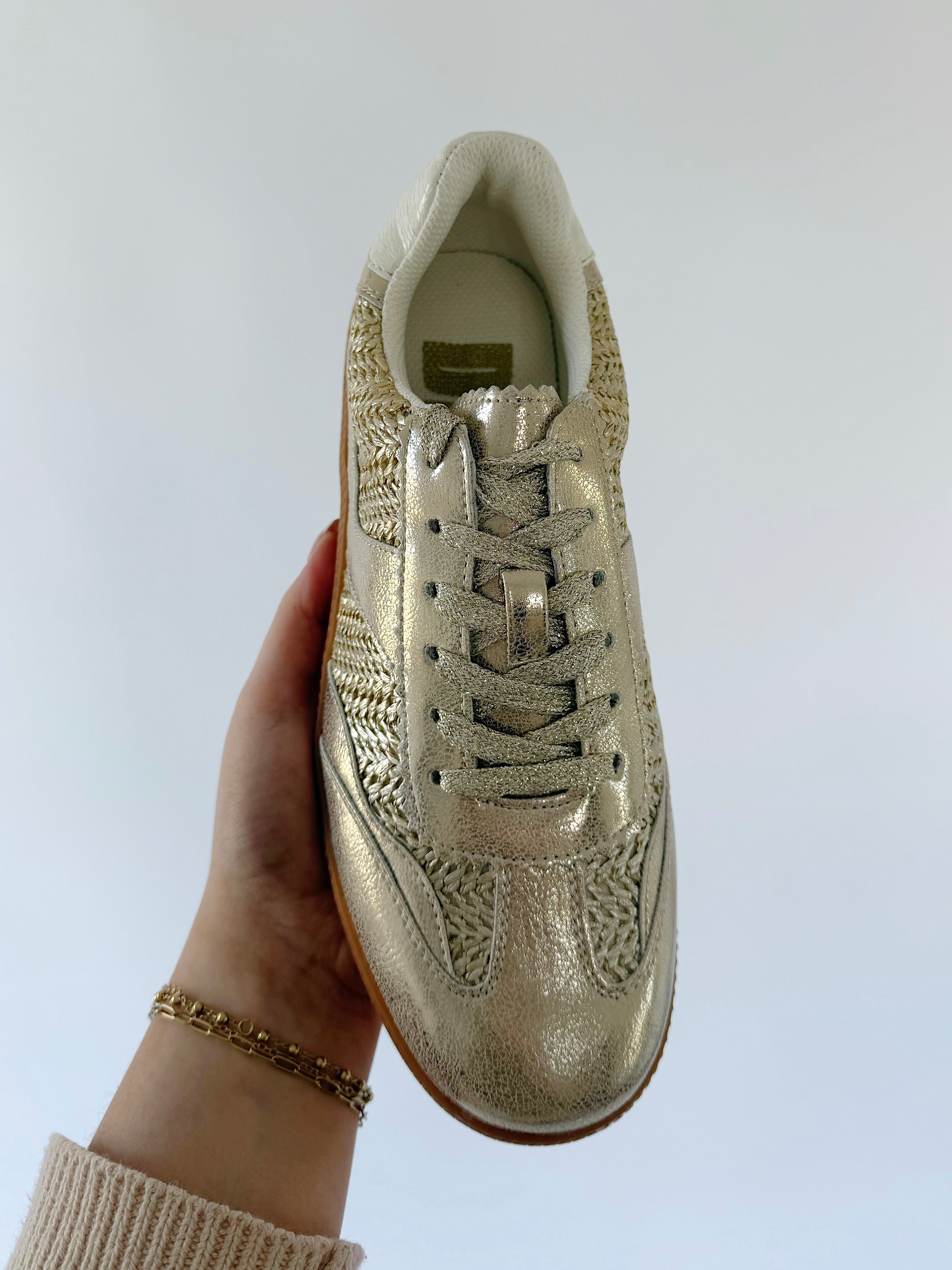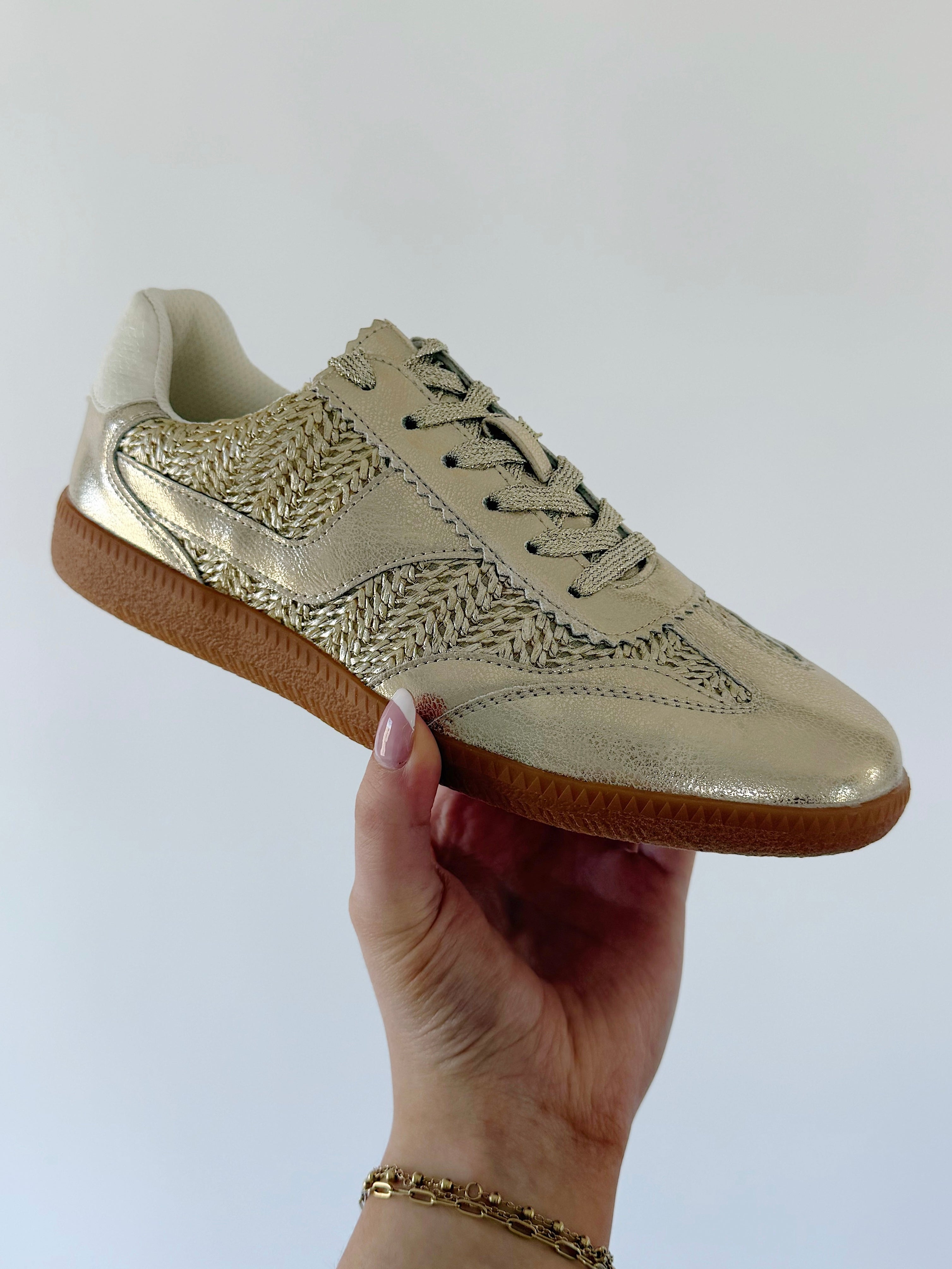 The metallic gold low-top Tropics Sneaker is serving up major femme energy. With its thoughtful woven detailing and muted laces to match the soft tones, these kicks are guaranteed to look cute with any outfit!