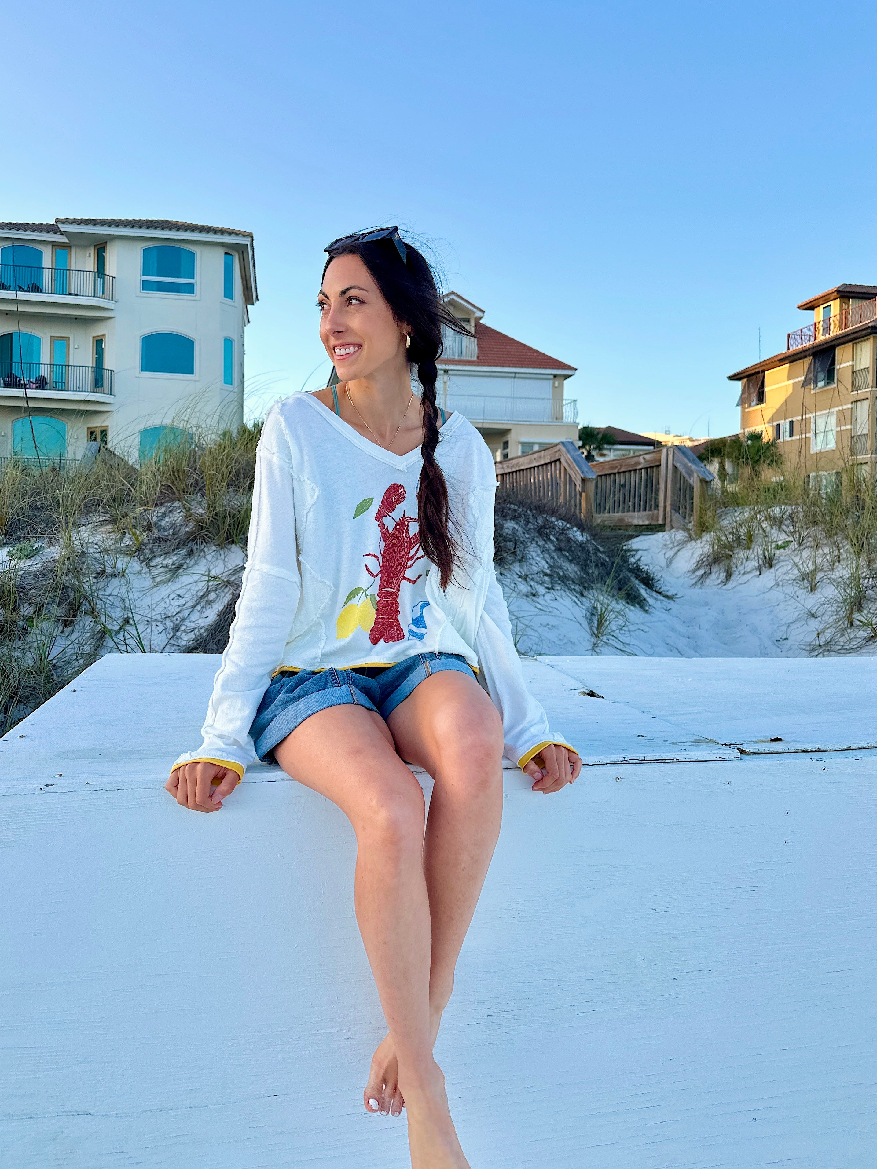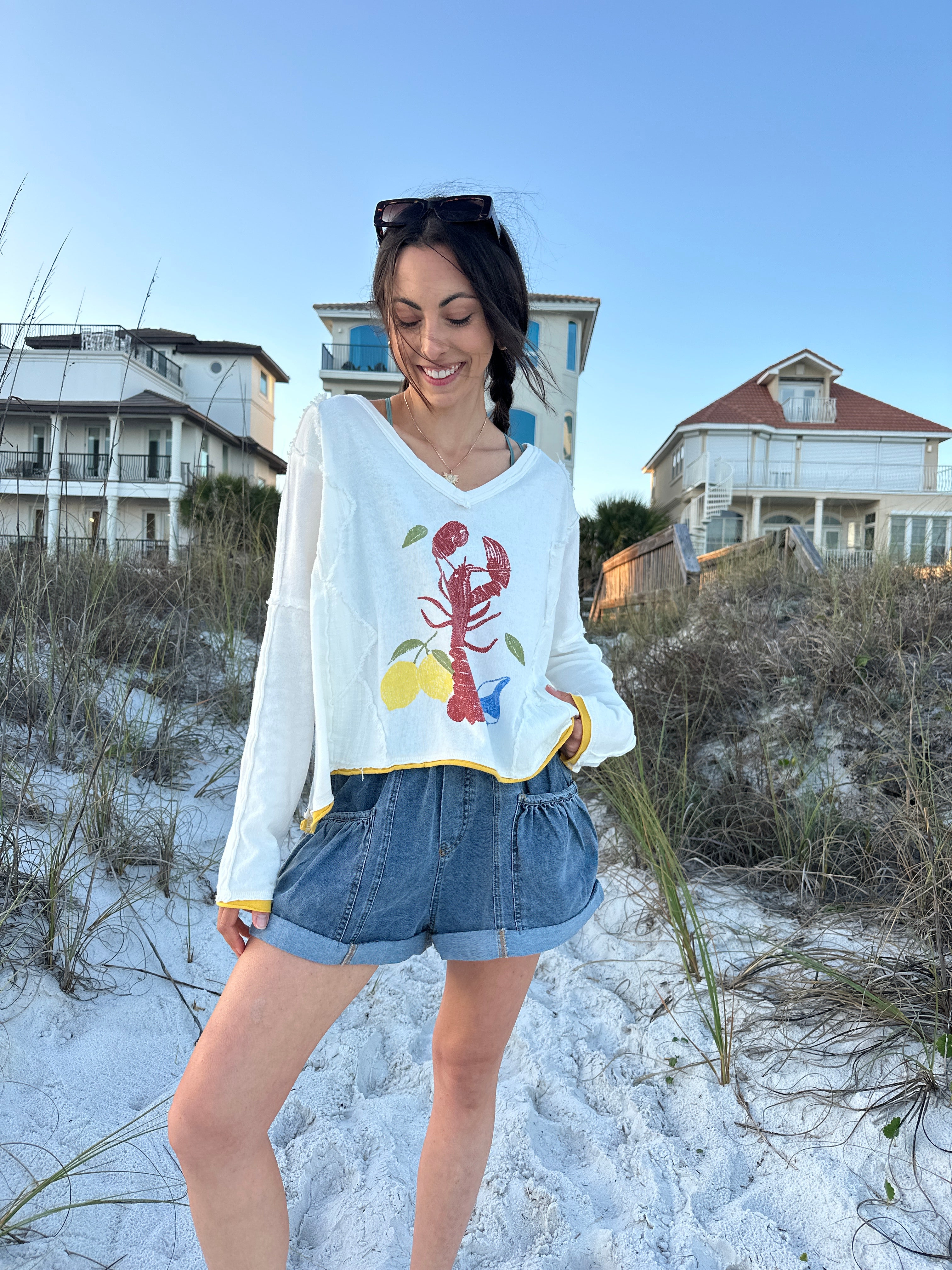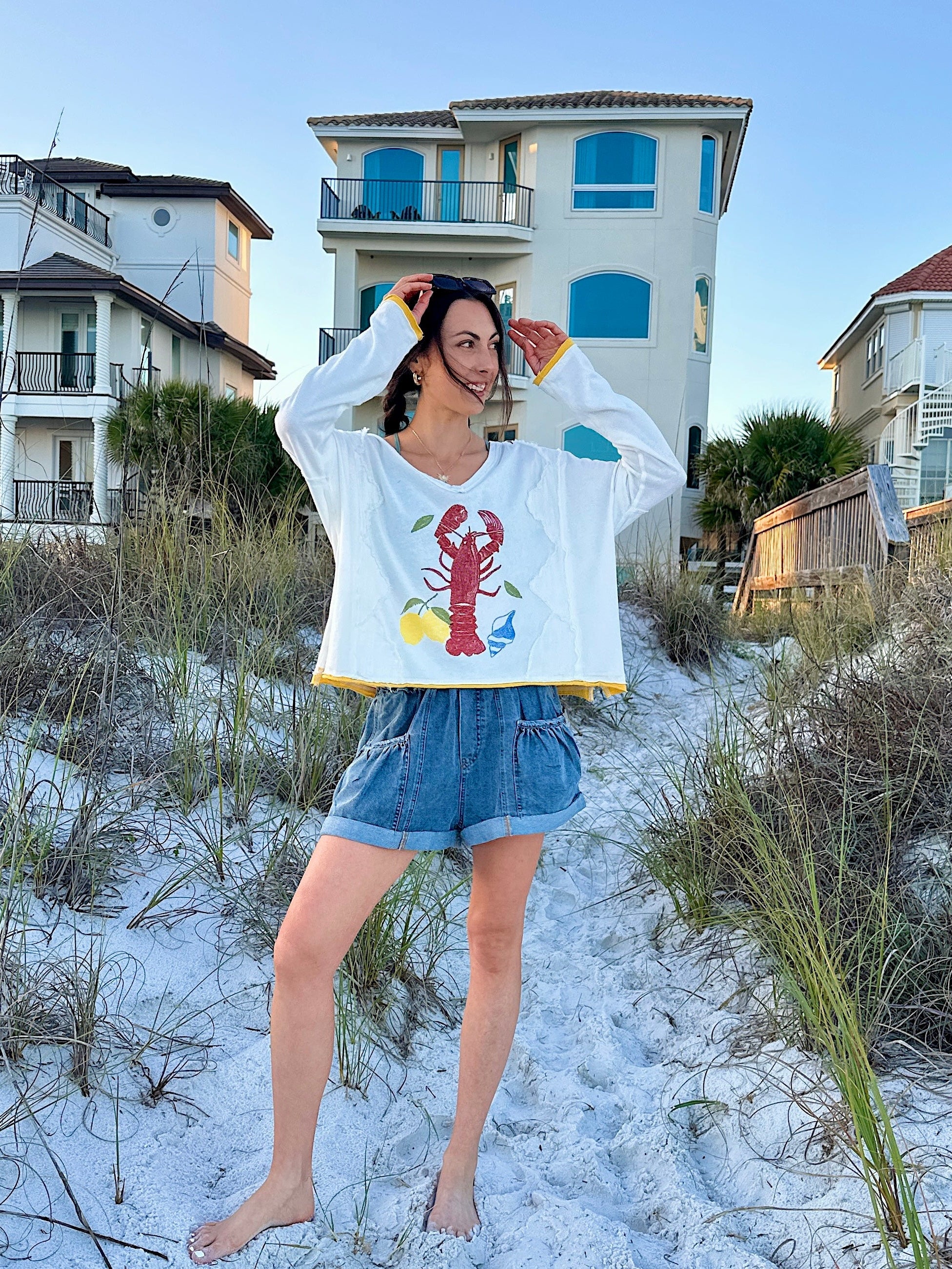 Our latest collection just landed—packed with sunkissed colors, bold prints, and coastal-cool styles made for your next sunny plan. Think: lobster graphics, lemon tones, easy dresses + sandals for days ☀️🦞