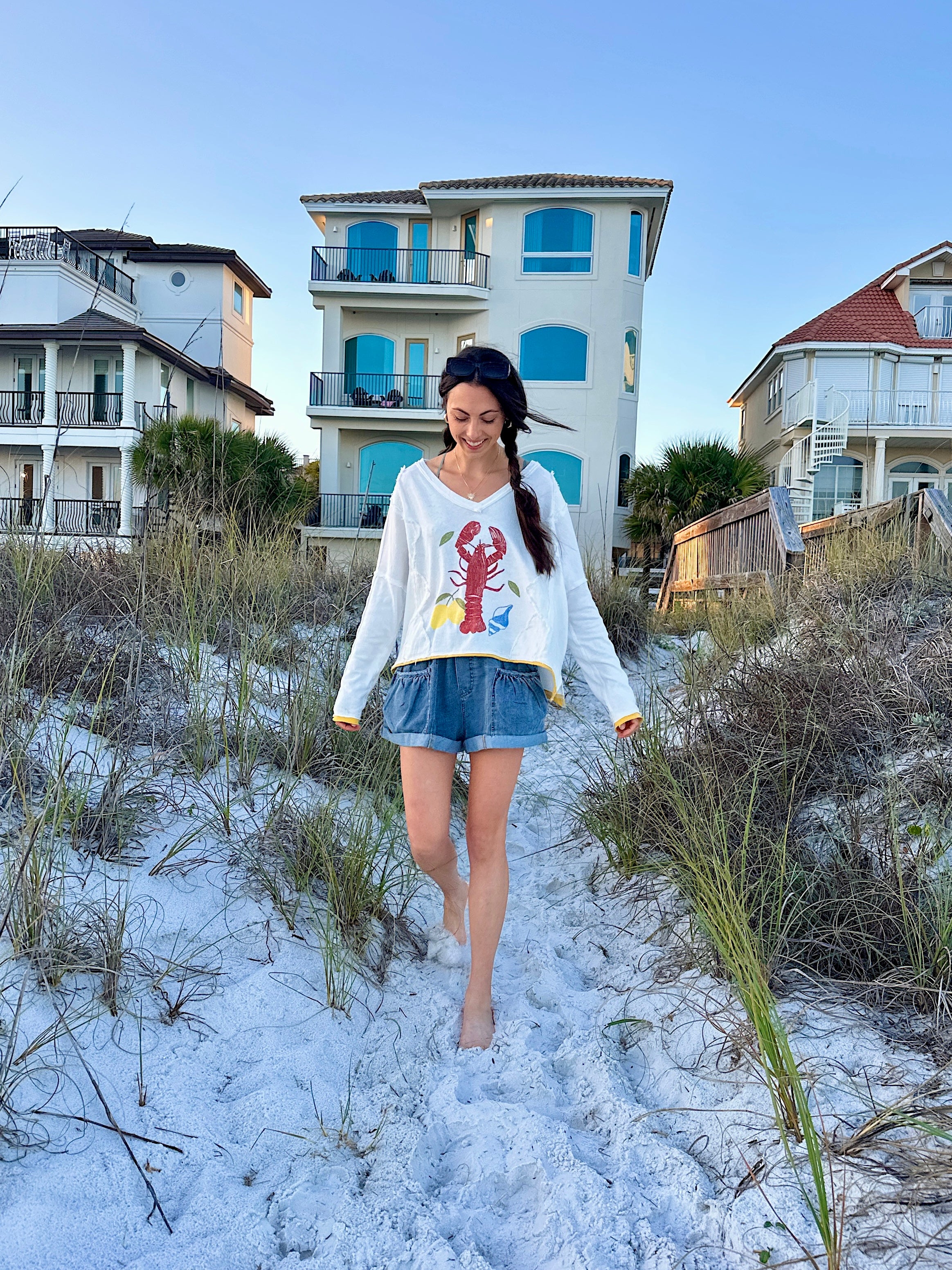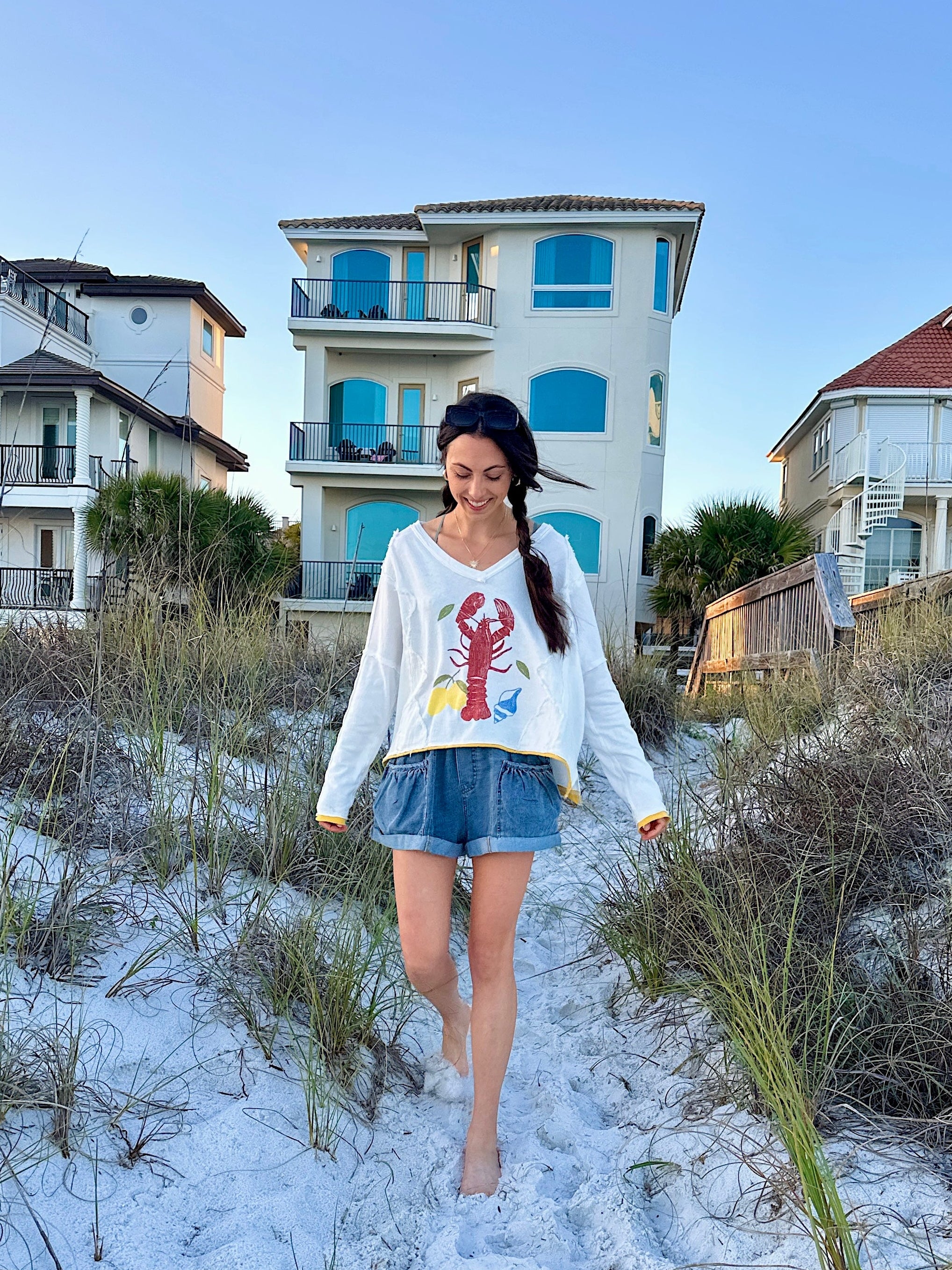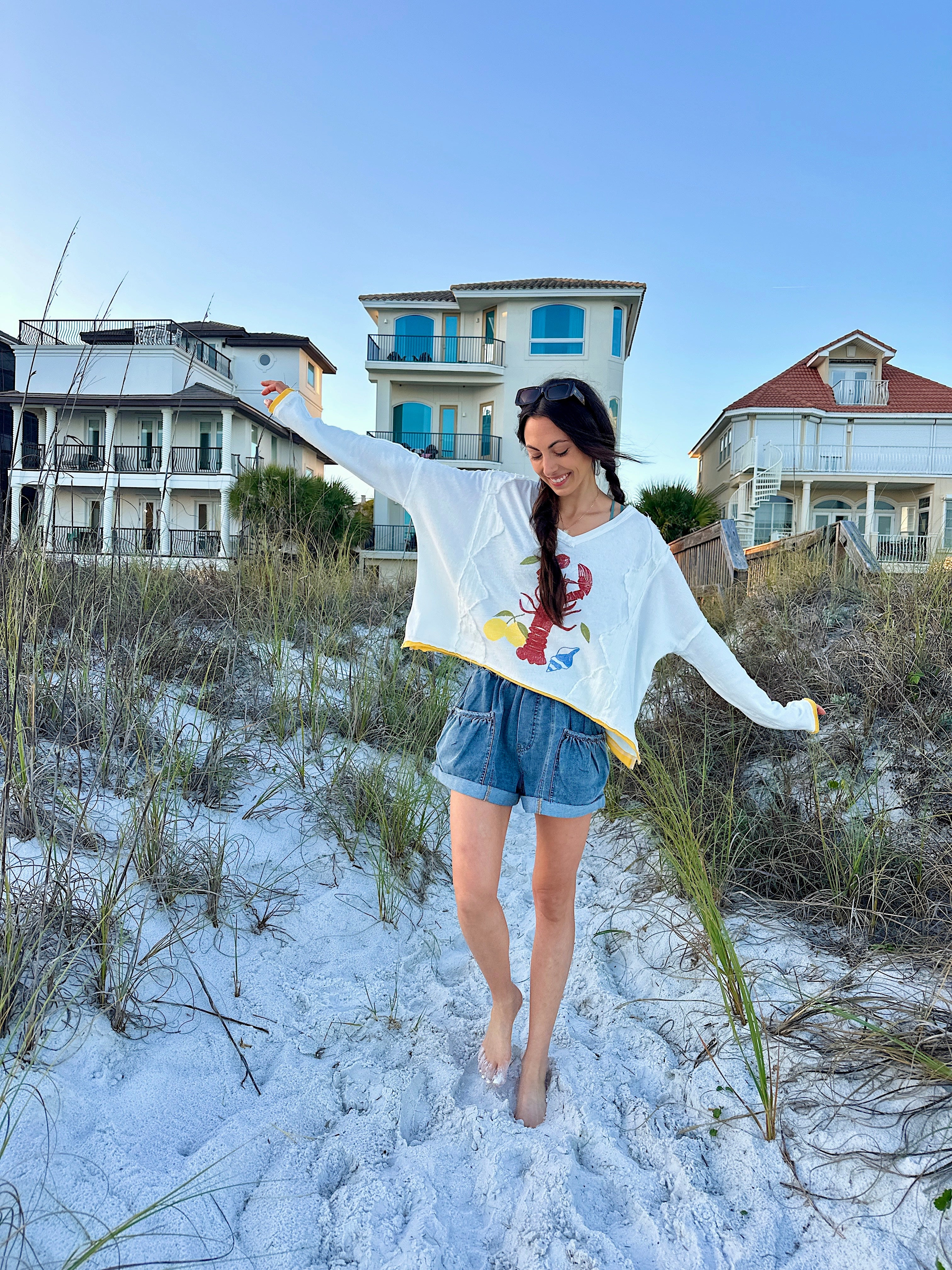 Our latest collection just landed—packed with sunkissed colors, bold prints, and coastal-cool styles made for your next sunny plan. Think: lobster graphics, lemon tones, easy dresses + sandals for days ☀️🦞