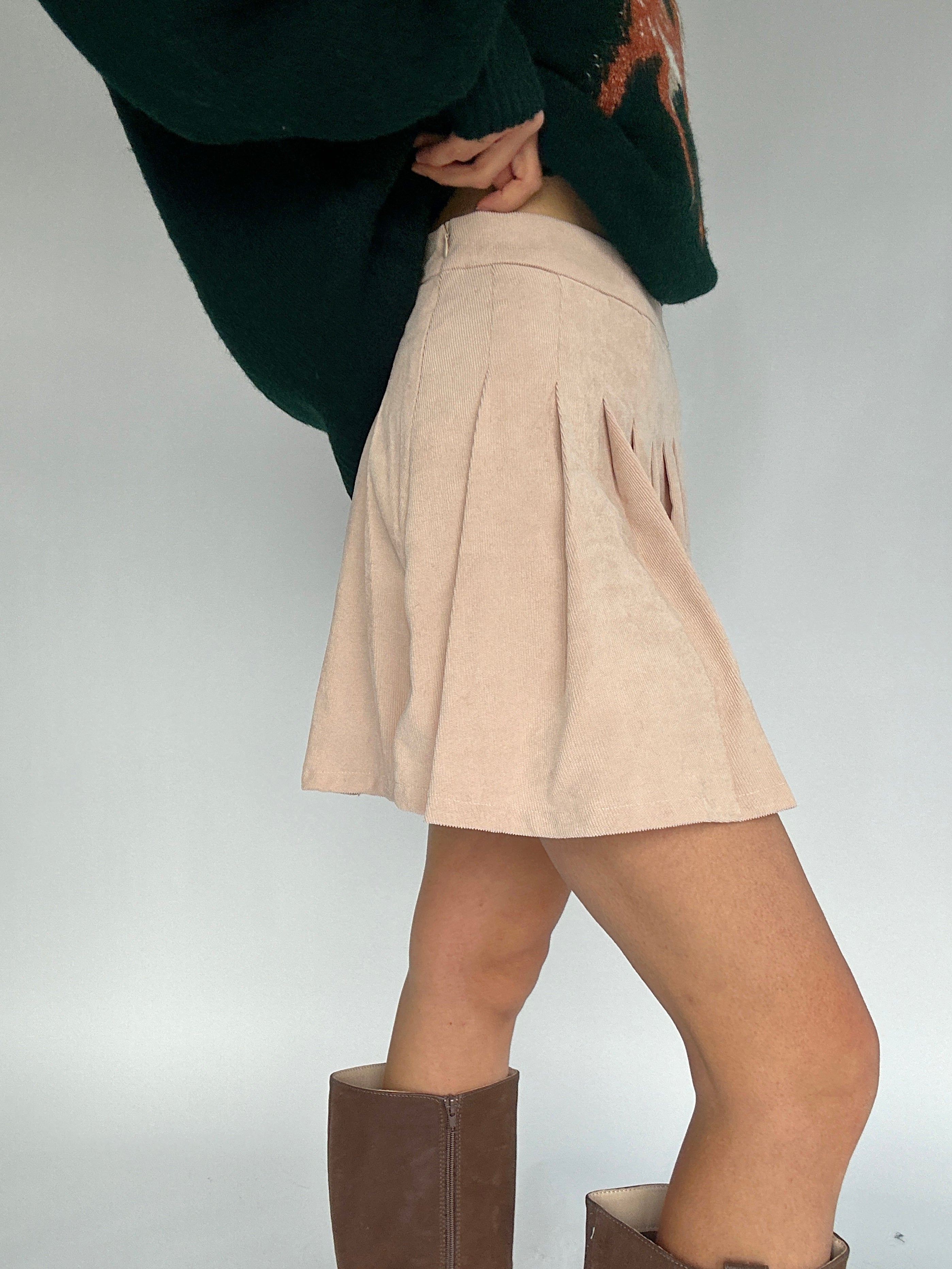 Luca Pleated Corduroy Skort - Cream