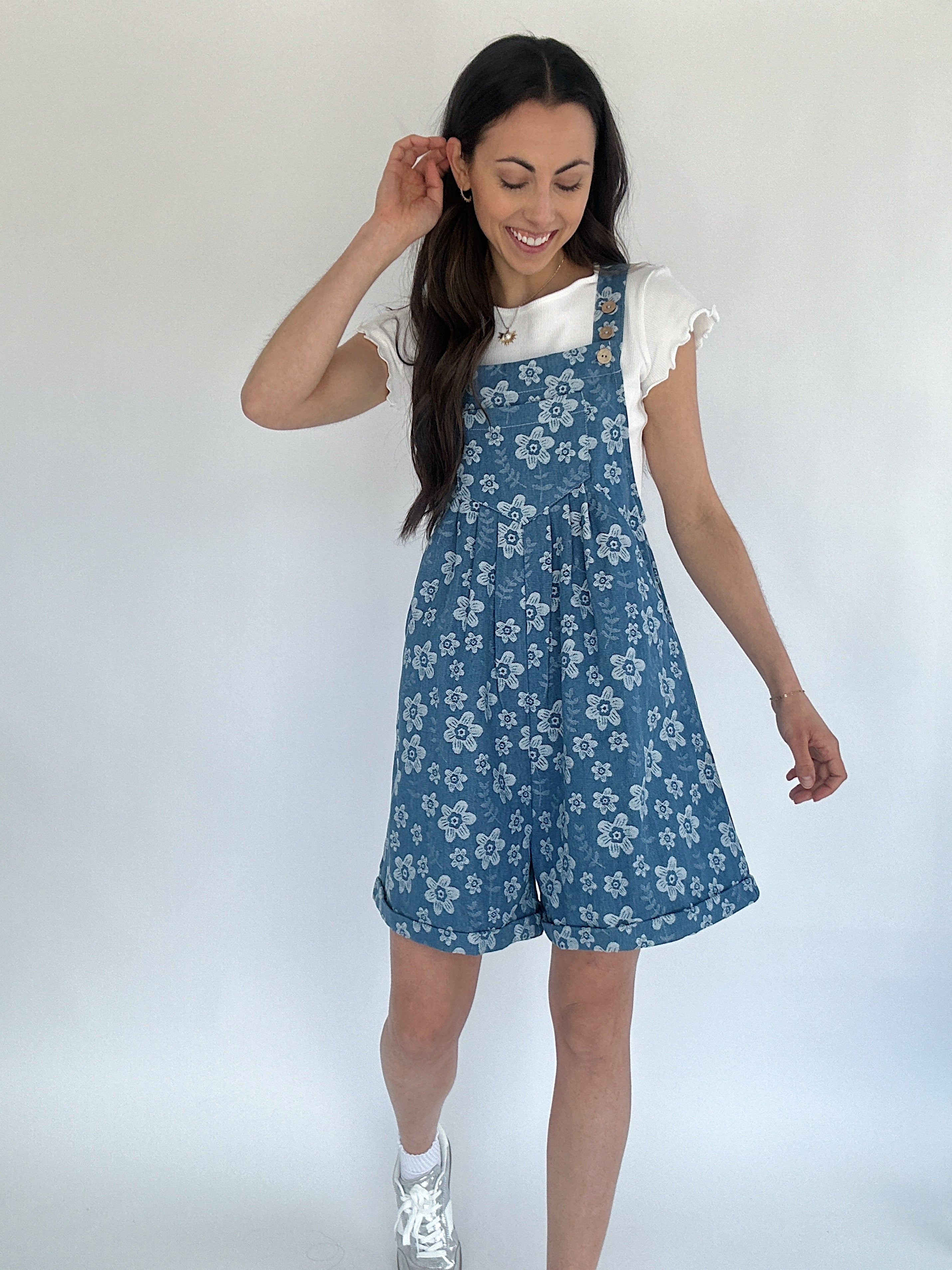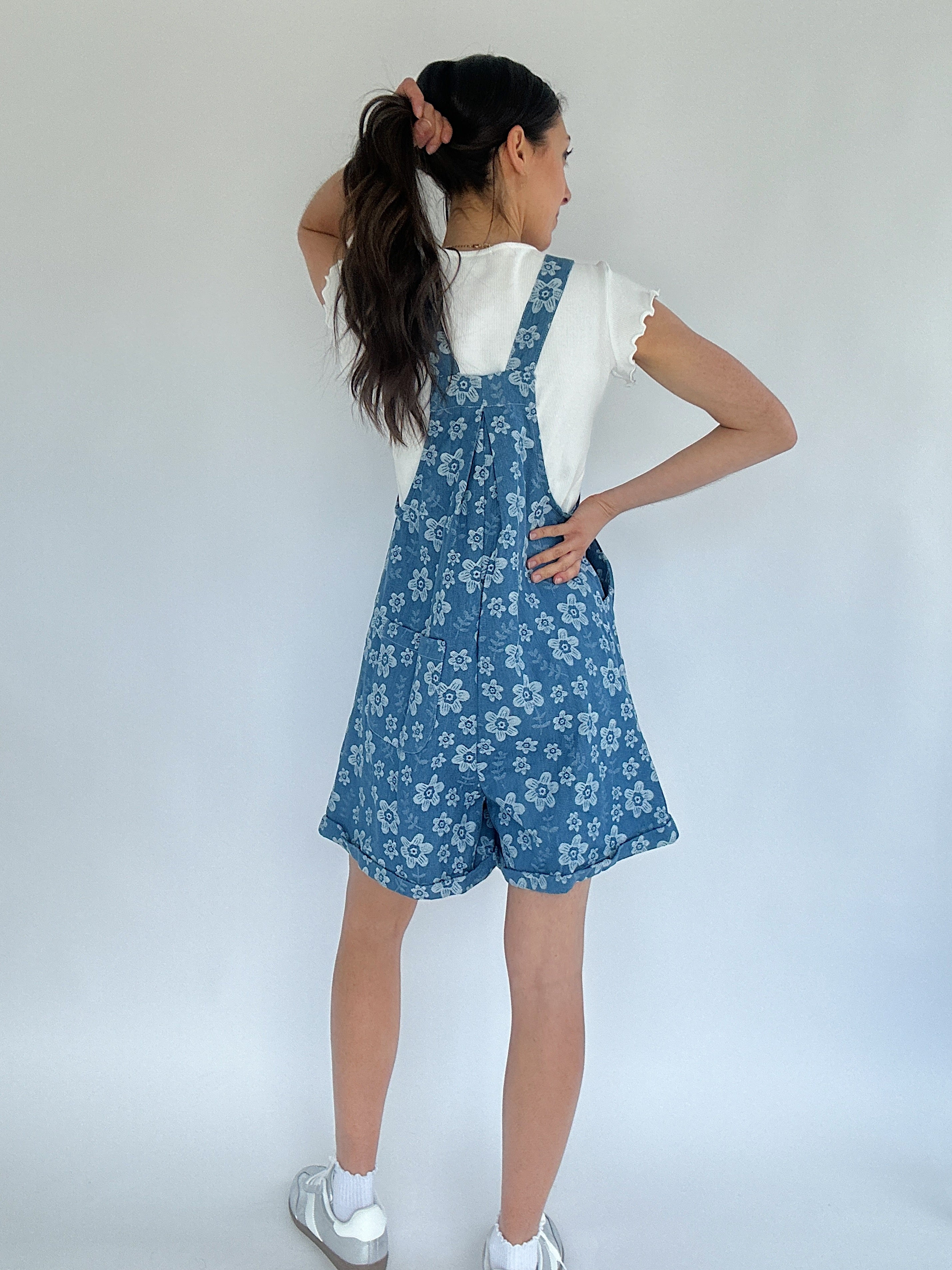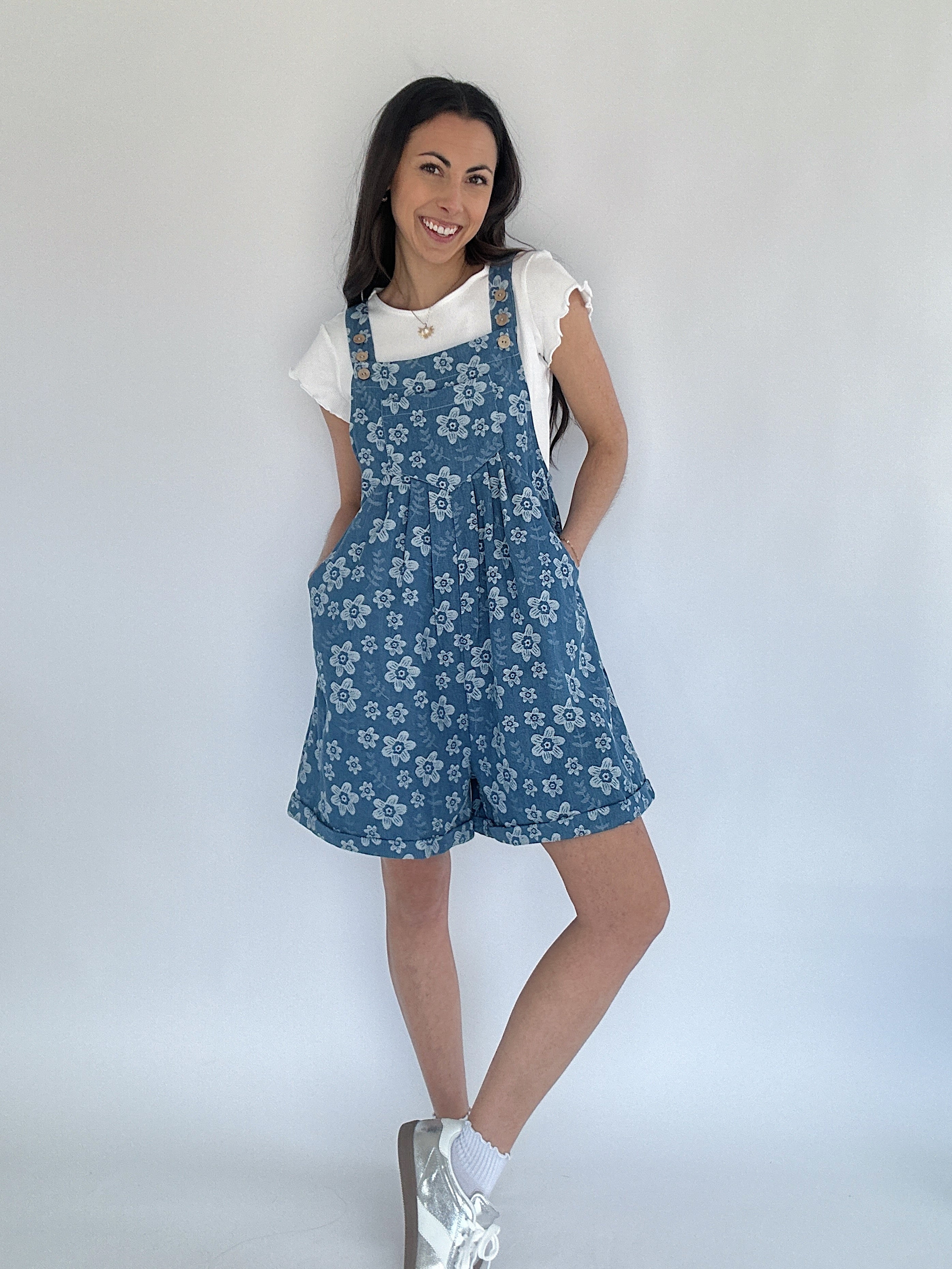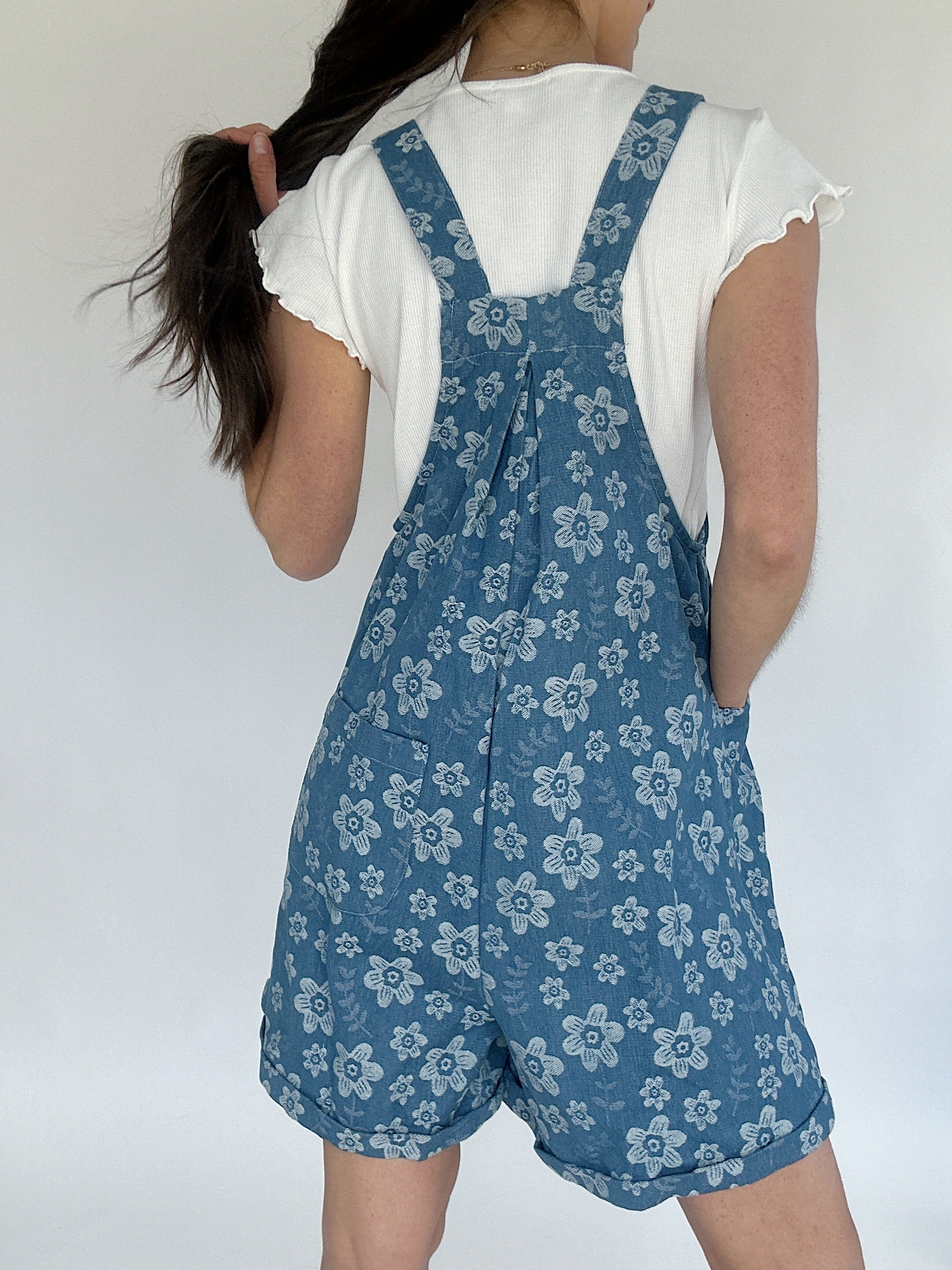 Serene Floral Embroidered Shortalls